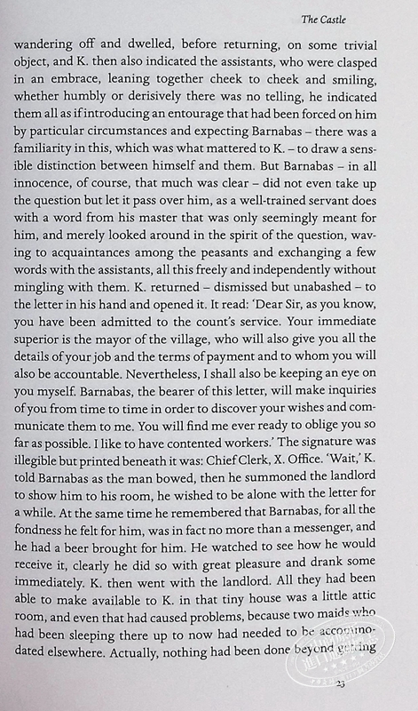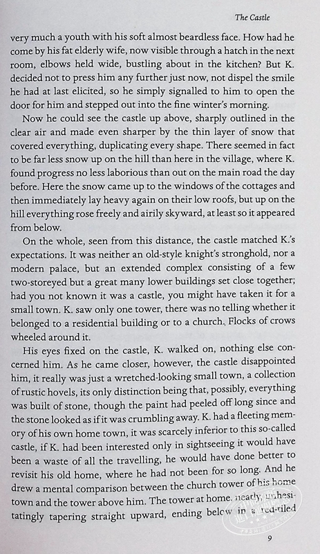 《城堡》讲述了 K. 的故事,K. 是一位不受欢迎的土地测量员,他永远不会被允许进入城堡,也不会被村庄所接受,但也无法回家。 当他遇到确定性与怀疑、希望与恐惧、理性与无意义的二元性时,K.在荒谬、迷宫般的世界中挣扎,他发现自己似乎揭示了关于存在本质的难以解释的真理。 卡夫卡于 1922 年开始创作《城堡》,但从未完成,但这本是他三部伟大小说中的终部,却得出了引人入胜的结论,让人感觉它奇怪地完整了。