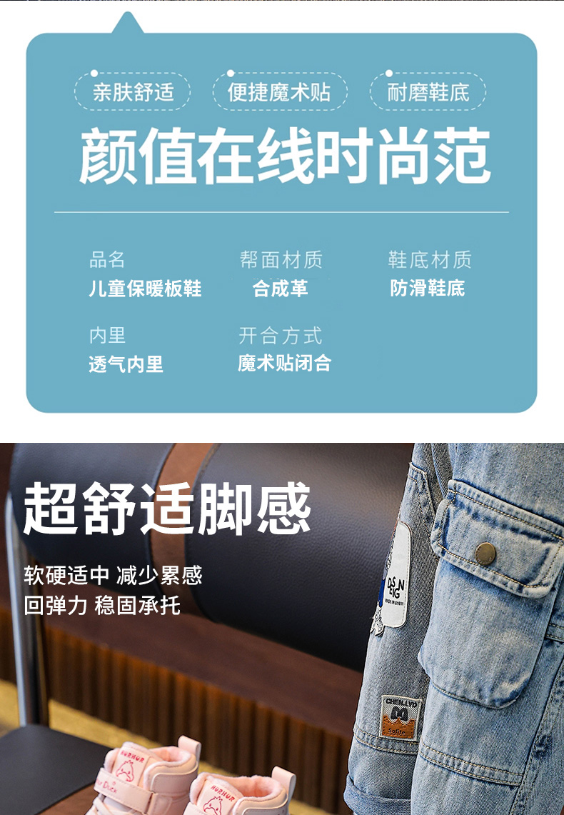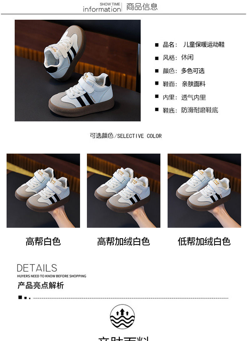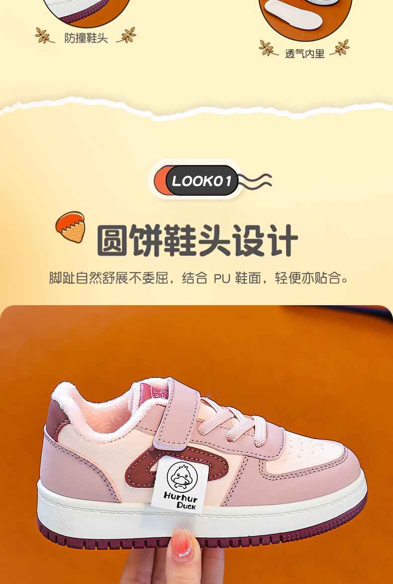 小黄鸭儿童德训鞋冬季加绒棉鞋防滑男女童冬鞋二棉鞋保暖板鞋