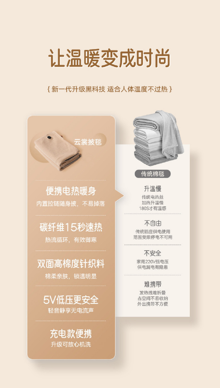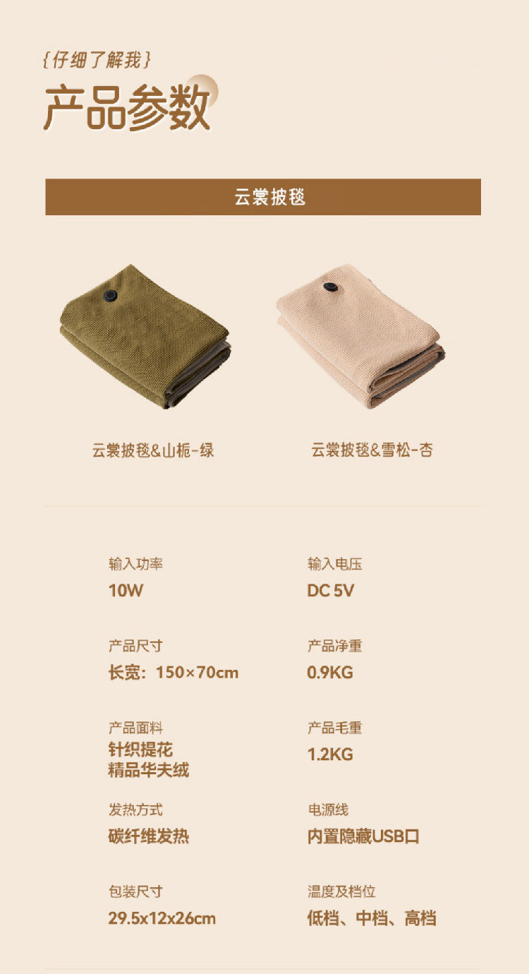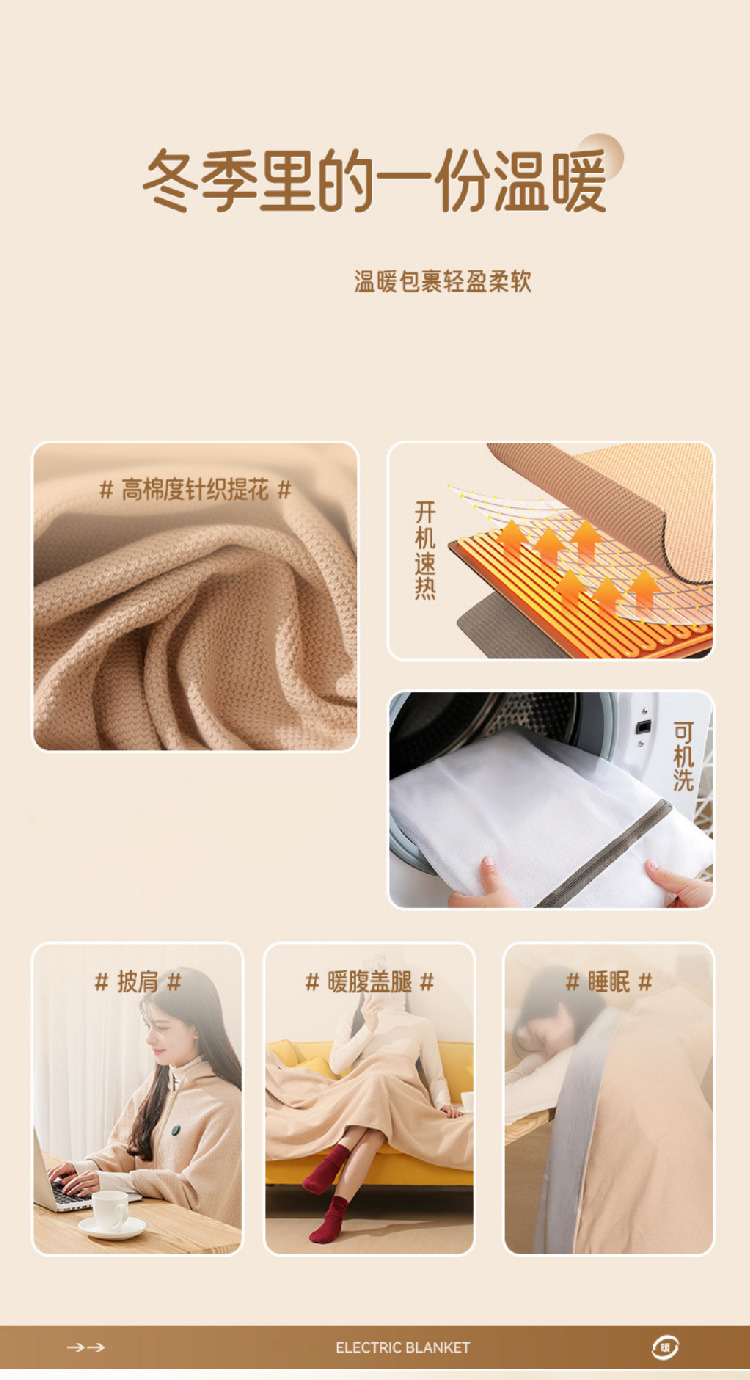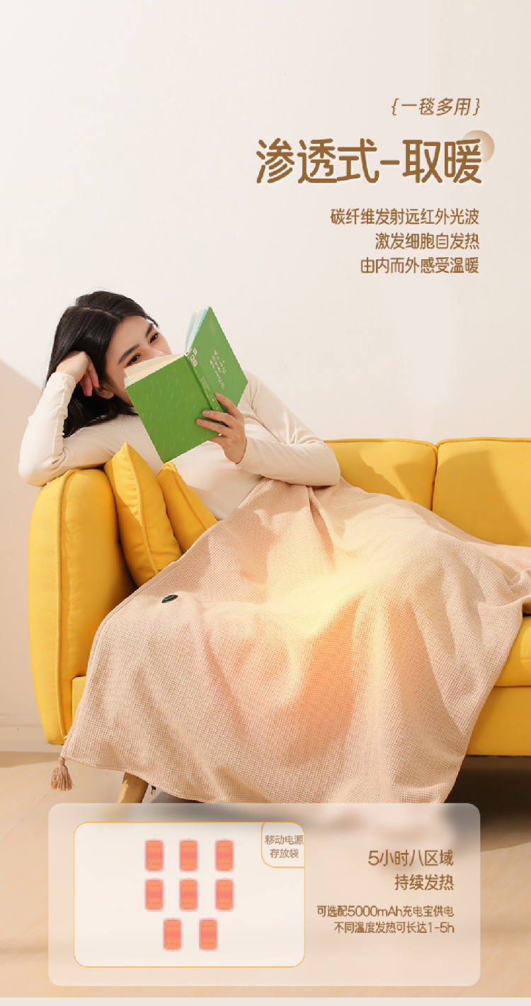 【加热毛毯披肩】2024新款USB车载户外露营办公室加热毛毯可水洗暖身发热盖毯披肩