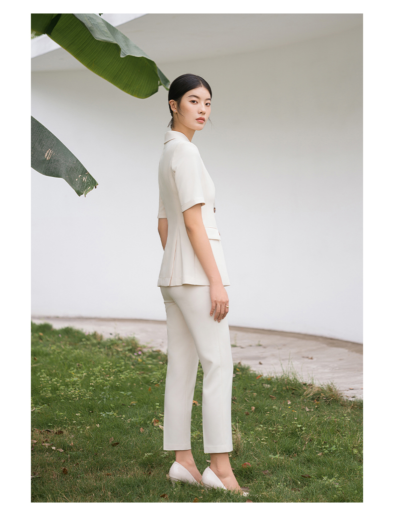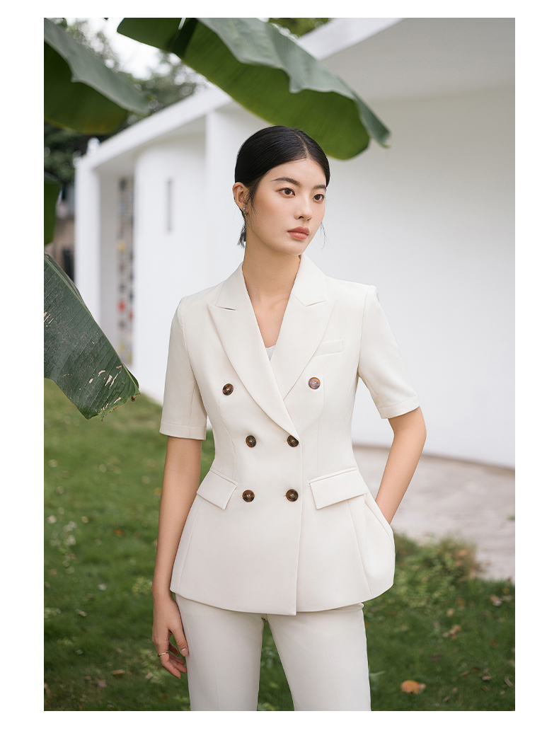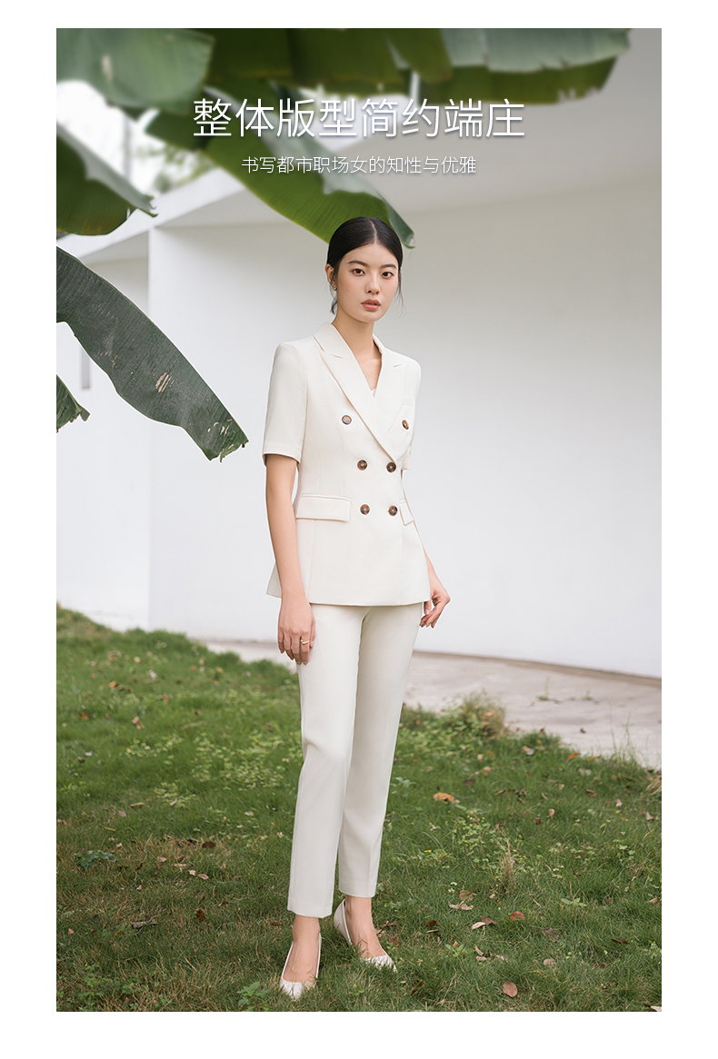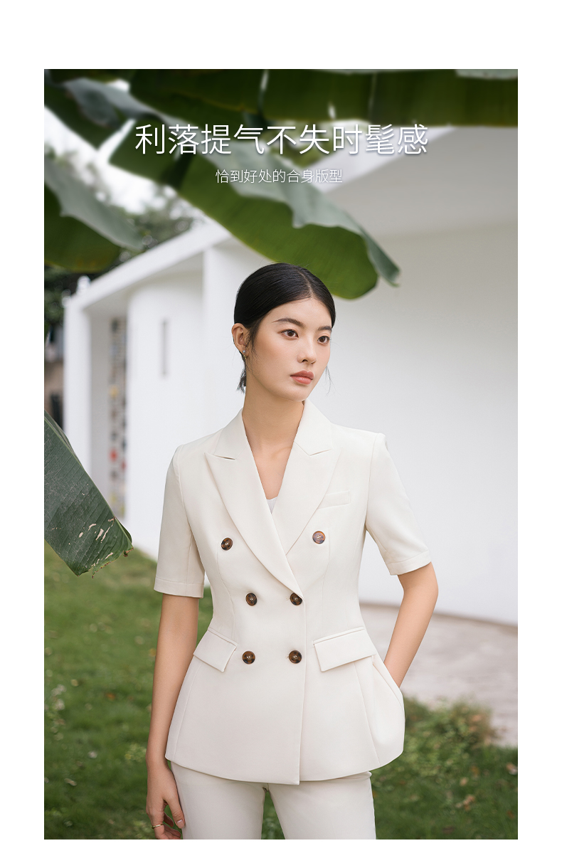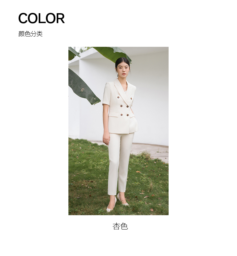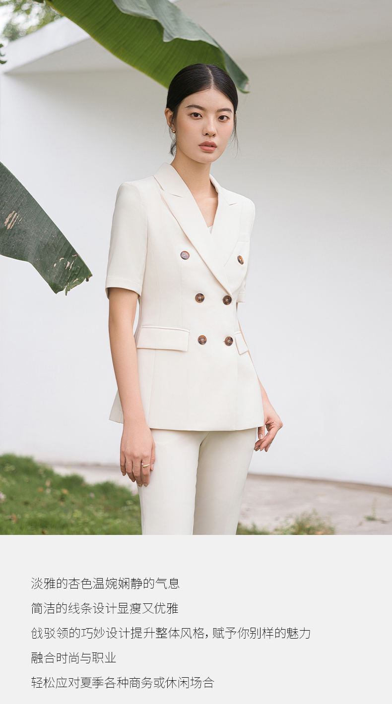 IWY/杏色短袖西服外套女职业西装套装售楼部经理工作服美容院工装C13211+P13211