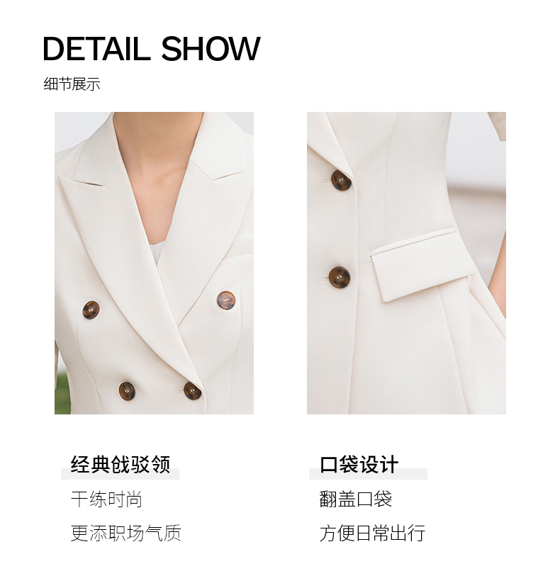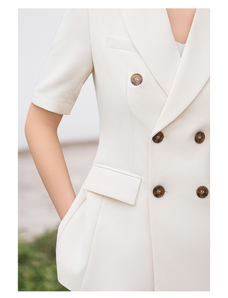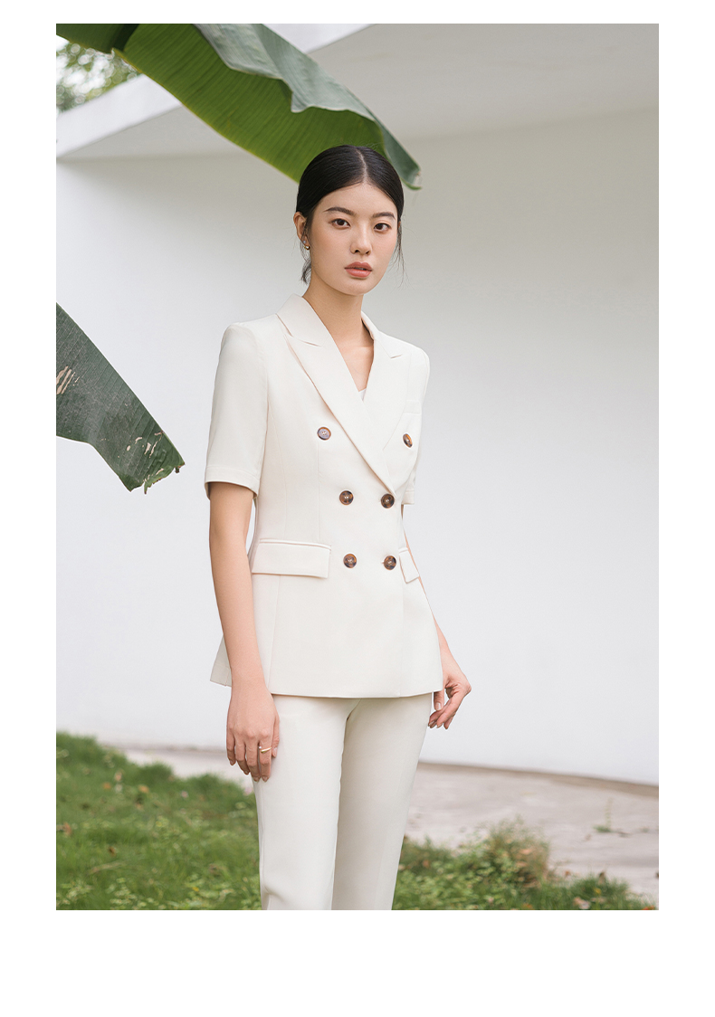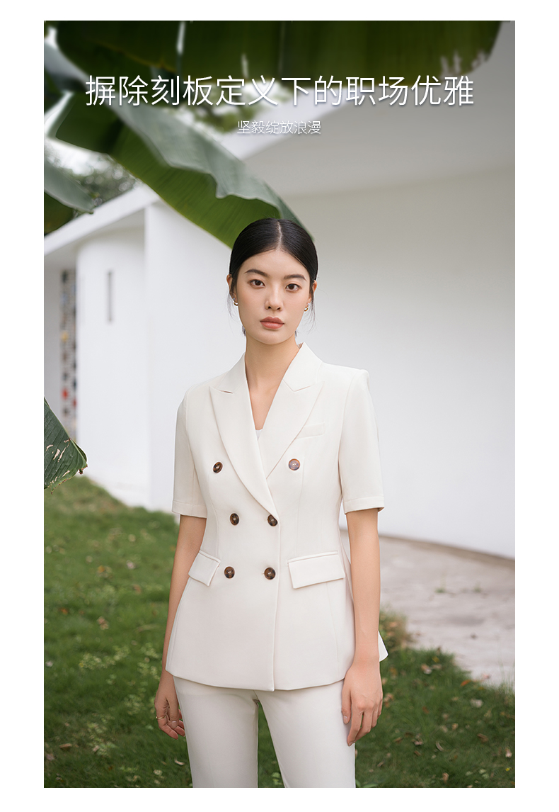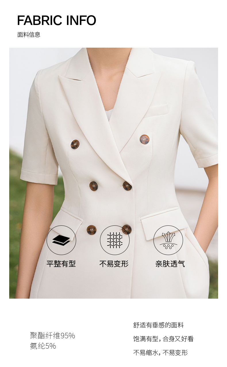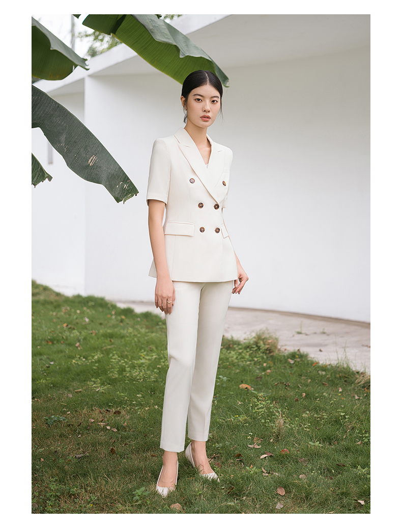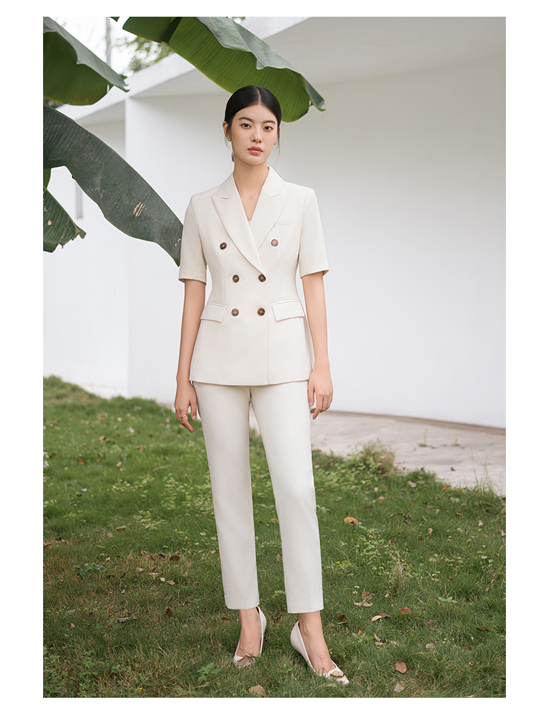 IWY/杏色短袖西服外套女职业西装套装售楼部经理工作服美容院工装C13211+P13211