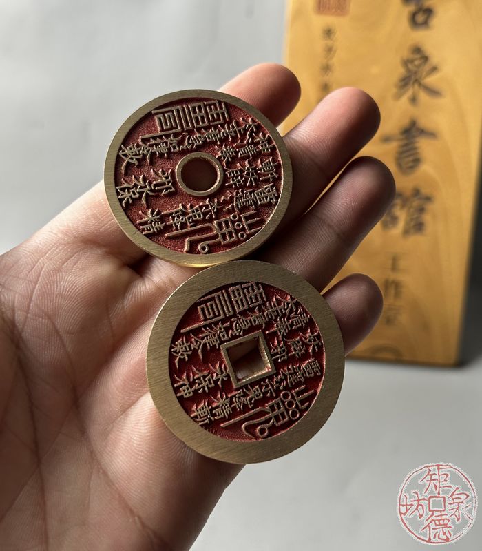 为了尽量还原古代钱币的文字神韵与时代铸造特征,每一枚都进行手工修刀、打磨。会有打磨痕迹、刻刀痕迹,铸造气孔或者微小沙眼,这正是手工与机器制作的区别,并非瑕疵。