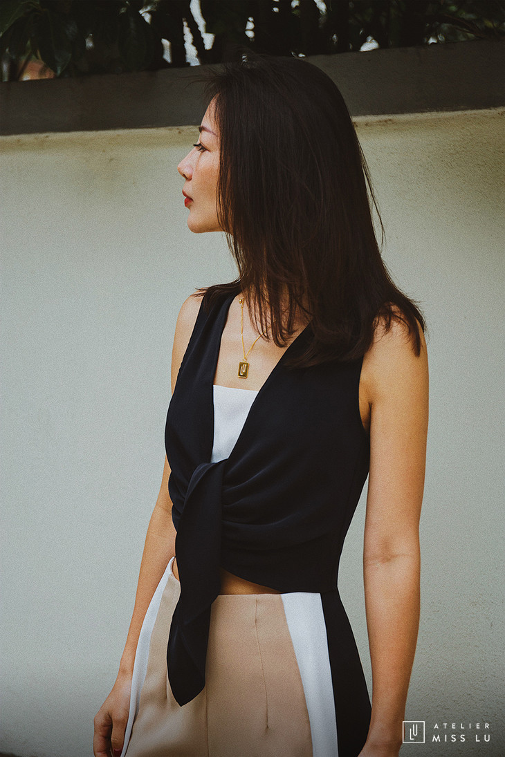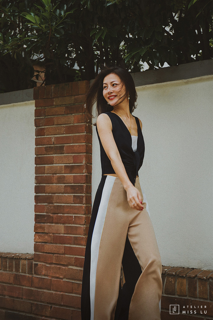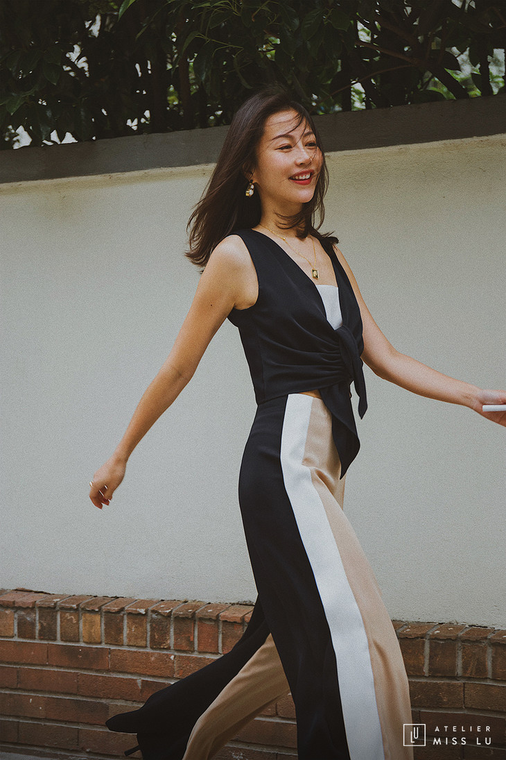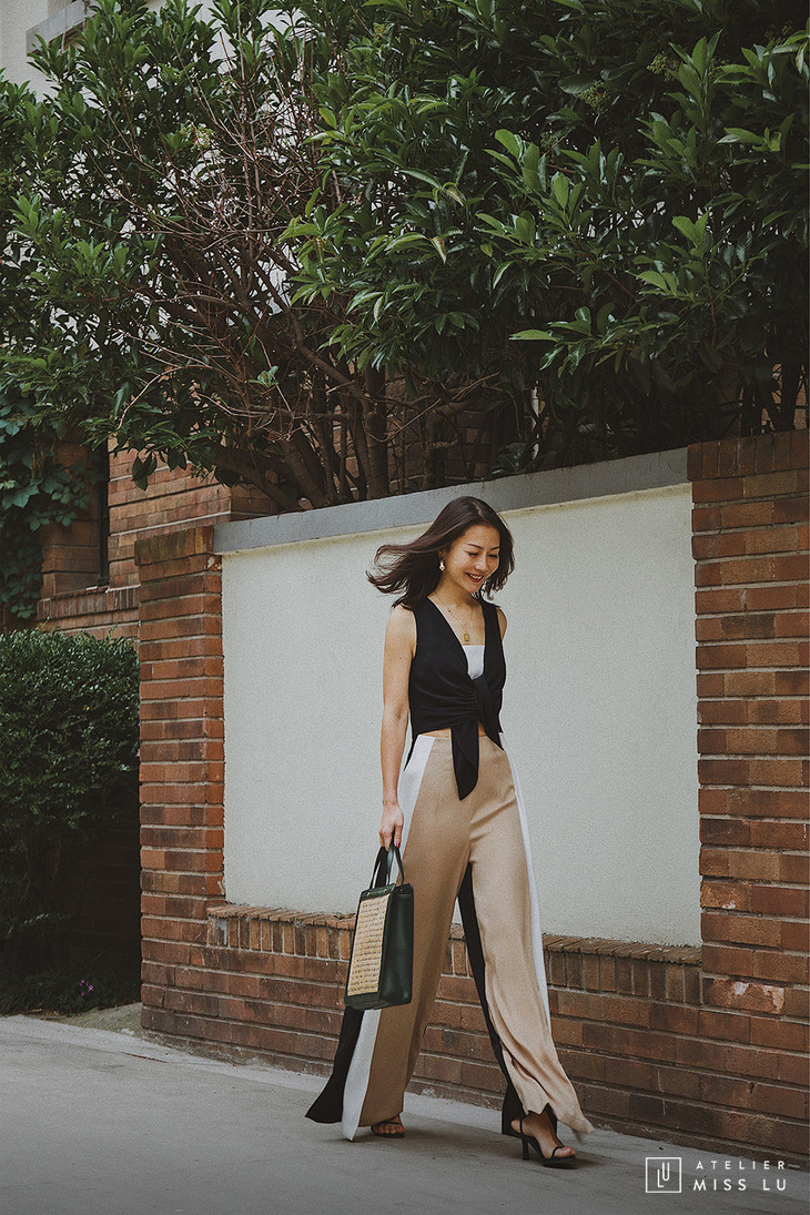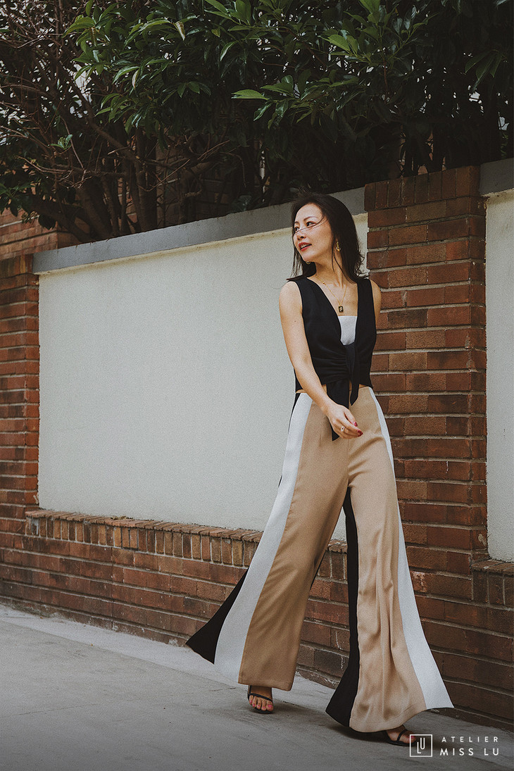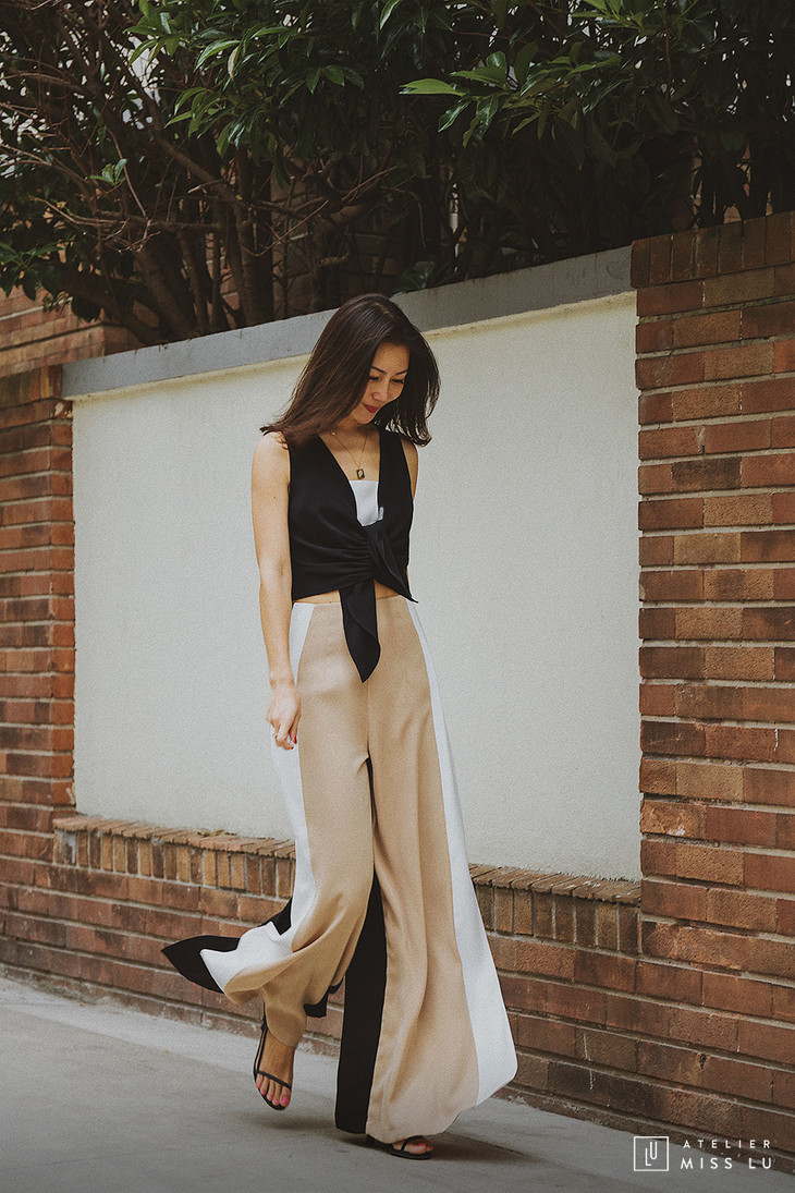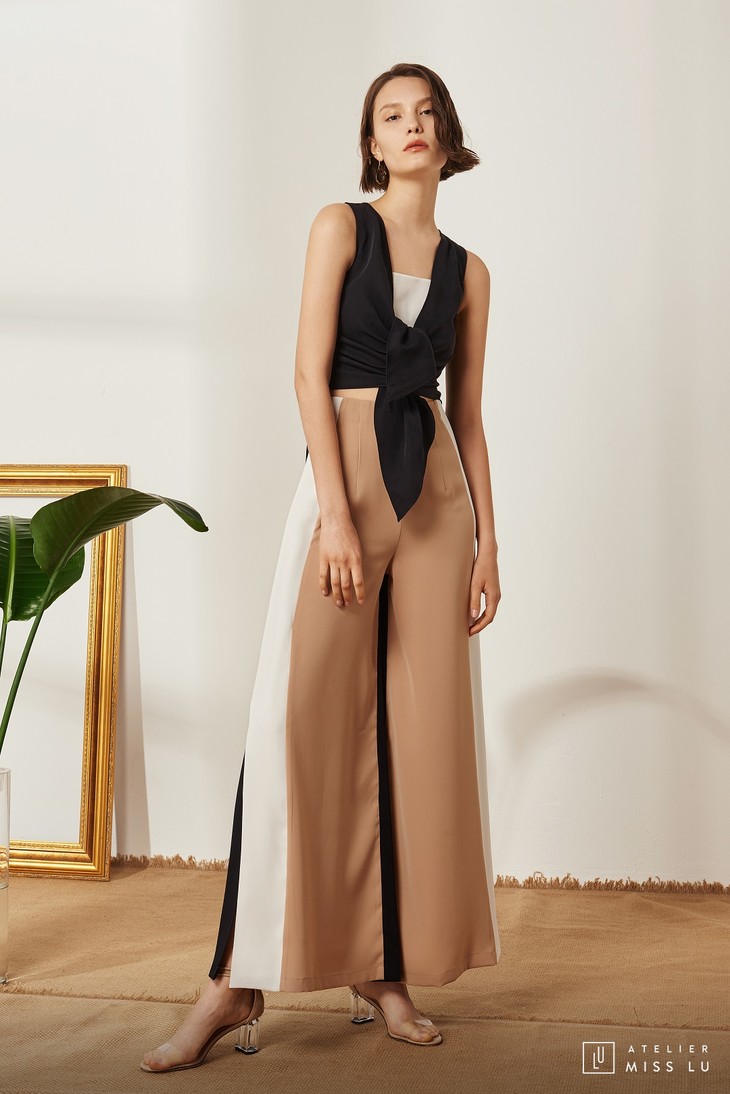AtelierMissLu / Amira-三色拼接开衩阔腿裤