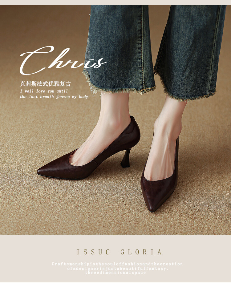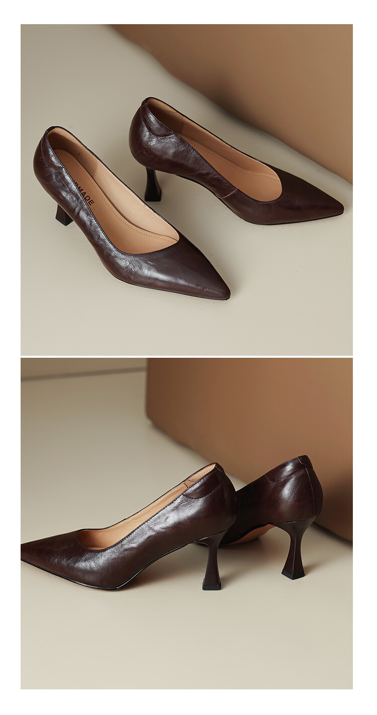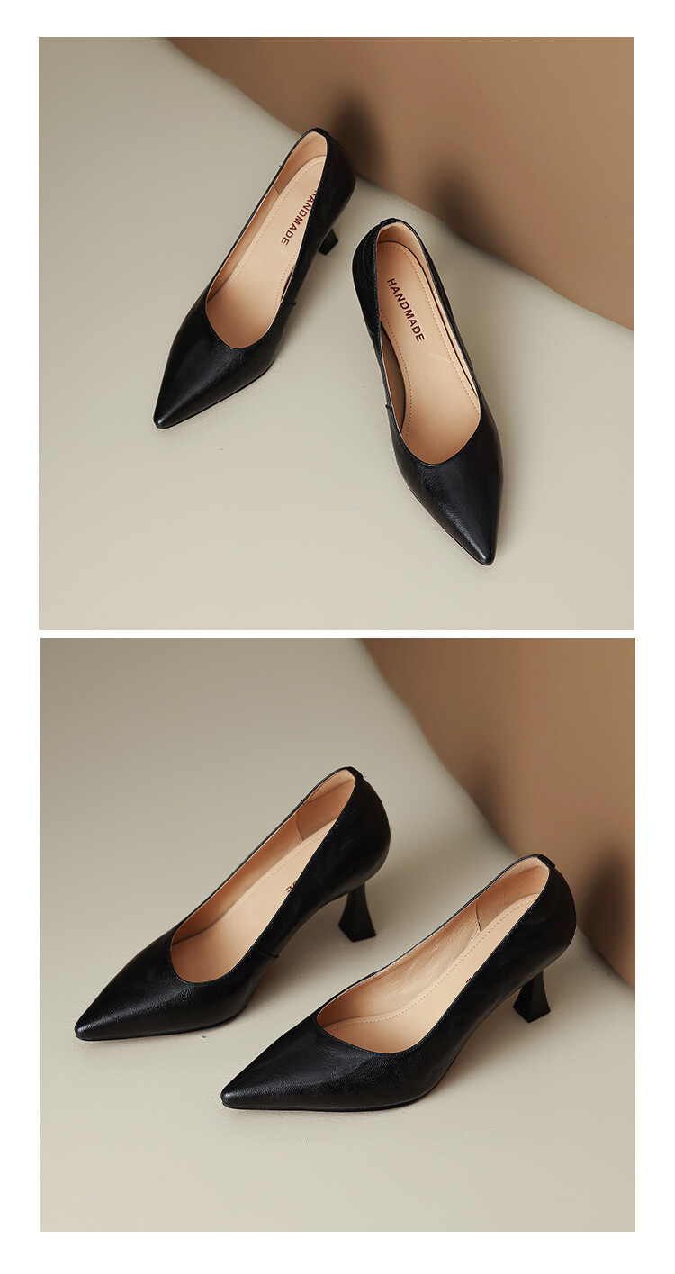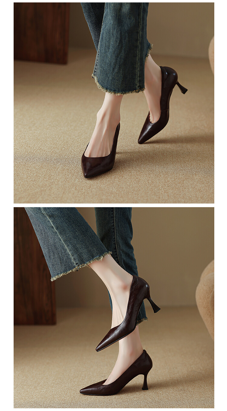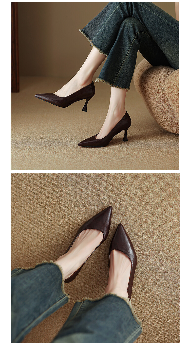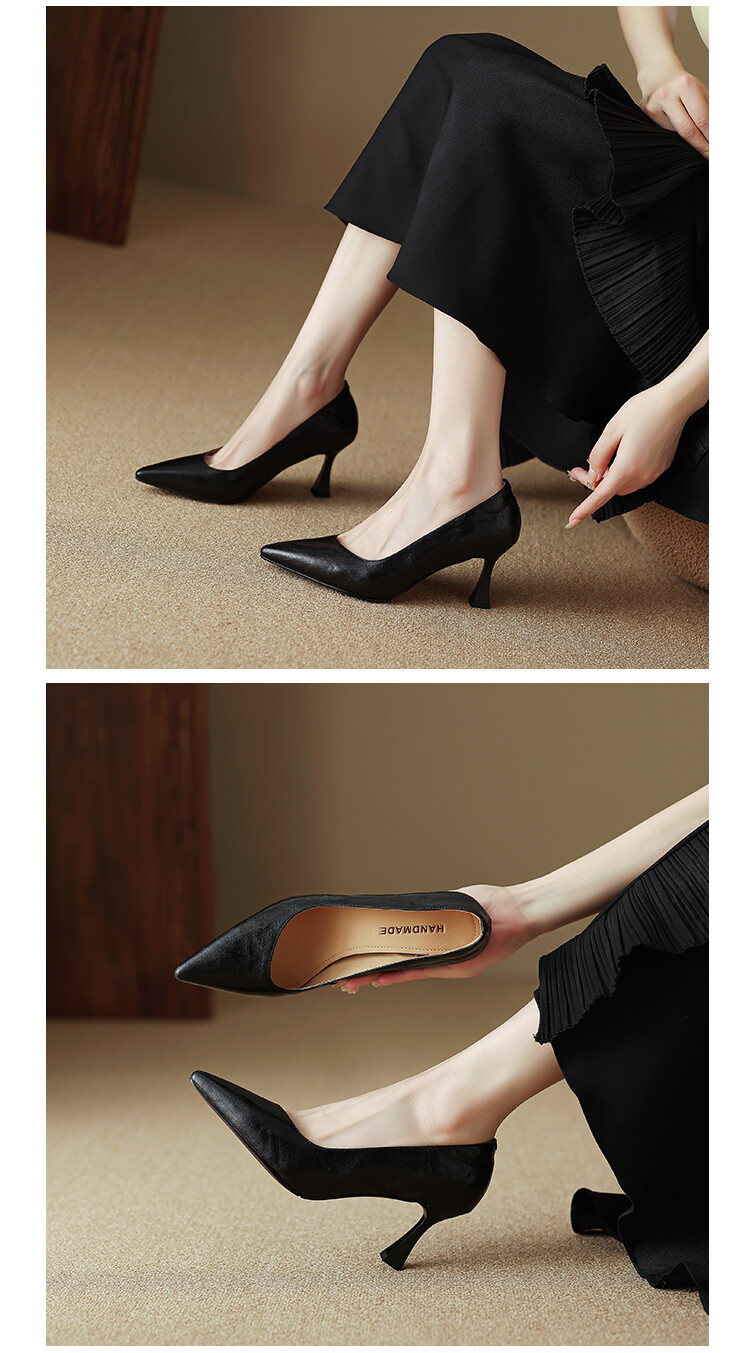 【预售5天】里外全皮细跟尖头浅口羊皮单鞋秋季新款简约复古通勤气质高跟鞋女XH&F7521