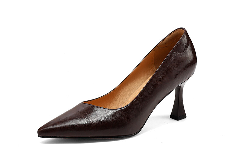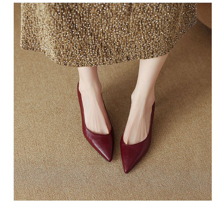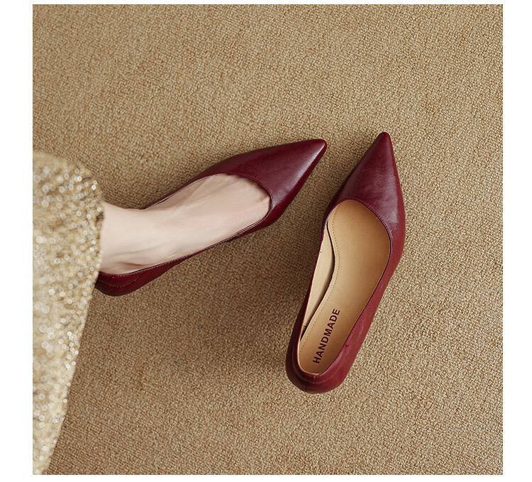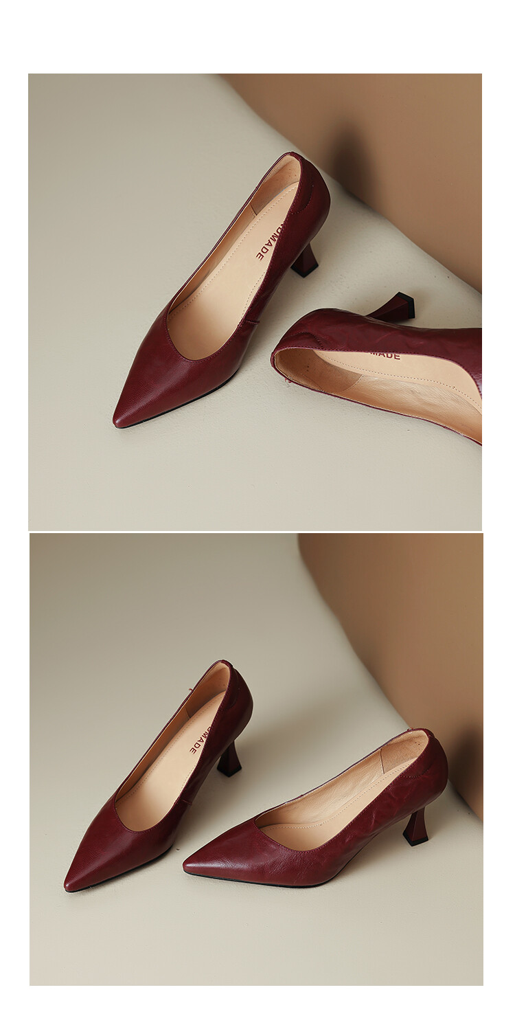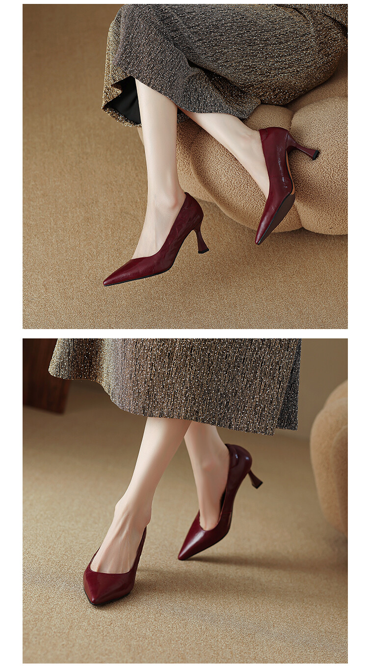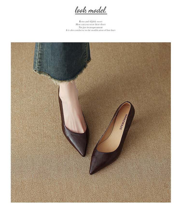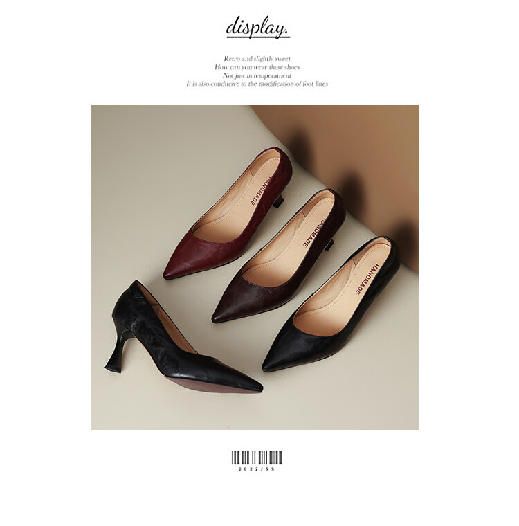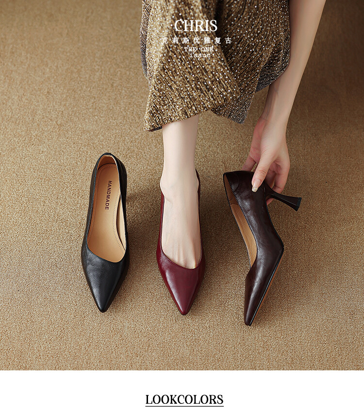 【预售5天】里外全皮细跟尖头浅口羊皮单鞋秋季新款简约复古通勤气质高跟鞋女XH&F7521