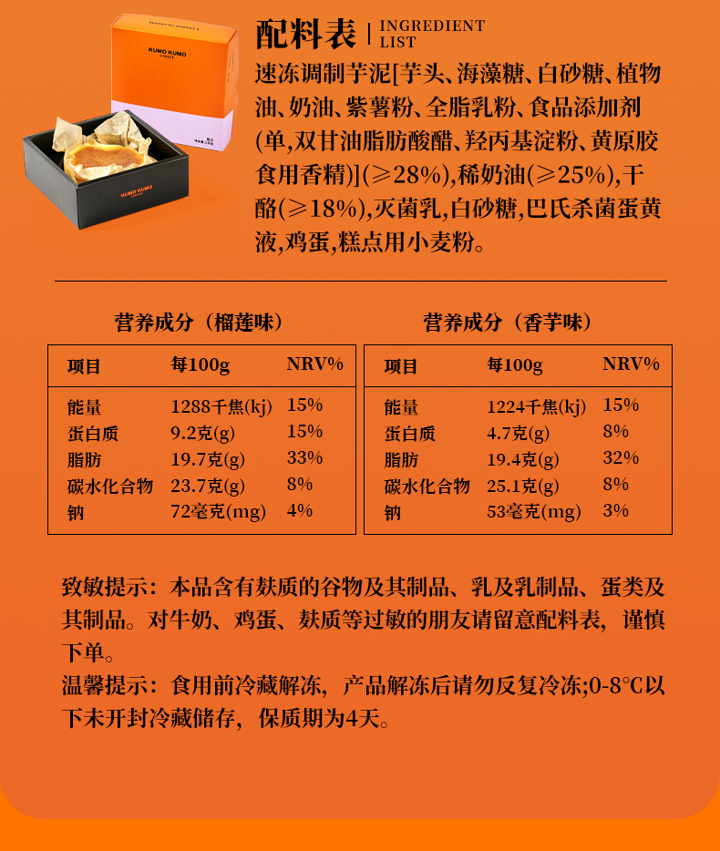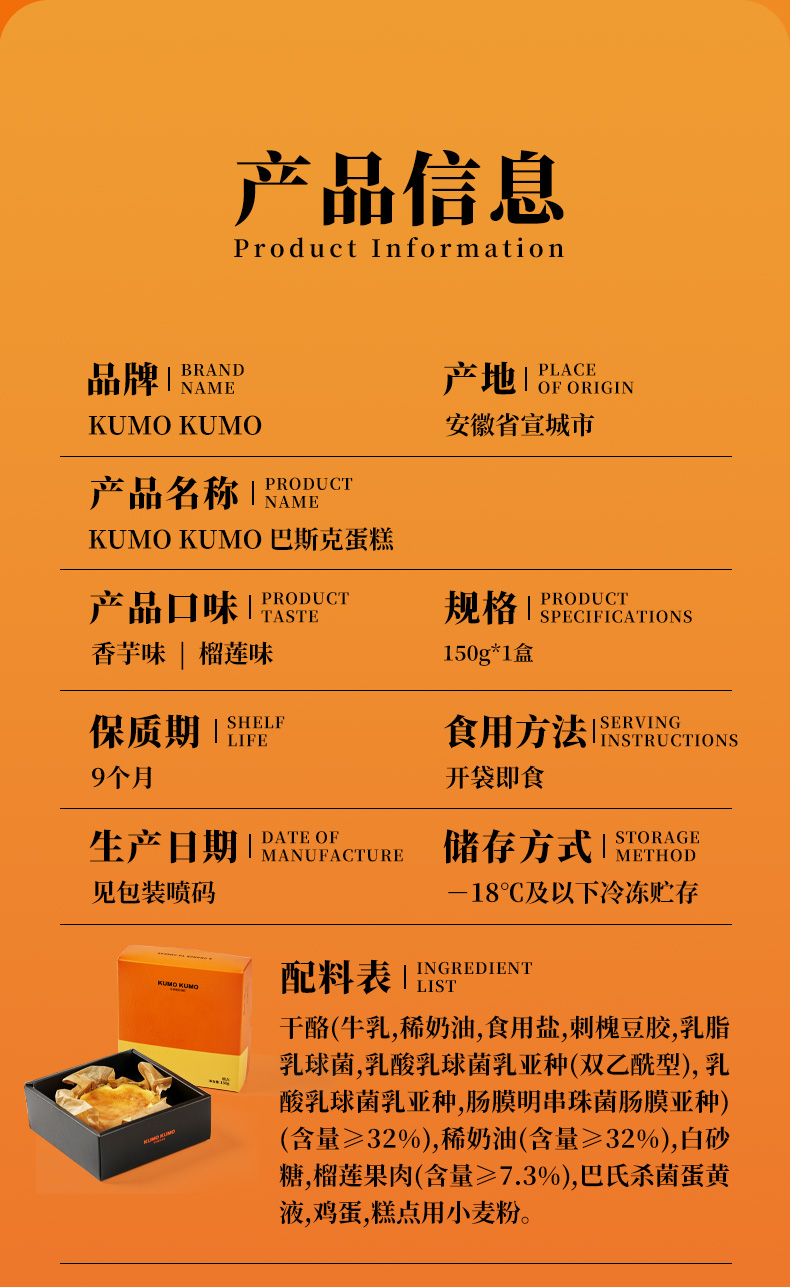 KUMO KUMO 巴斯克蛋糕 香芋/榴莲 150g