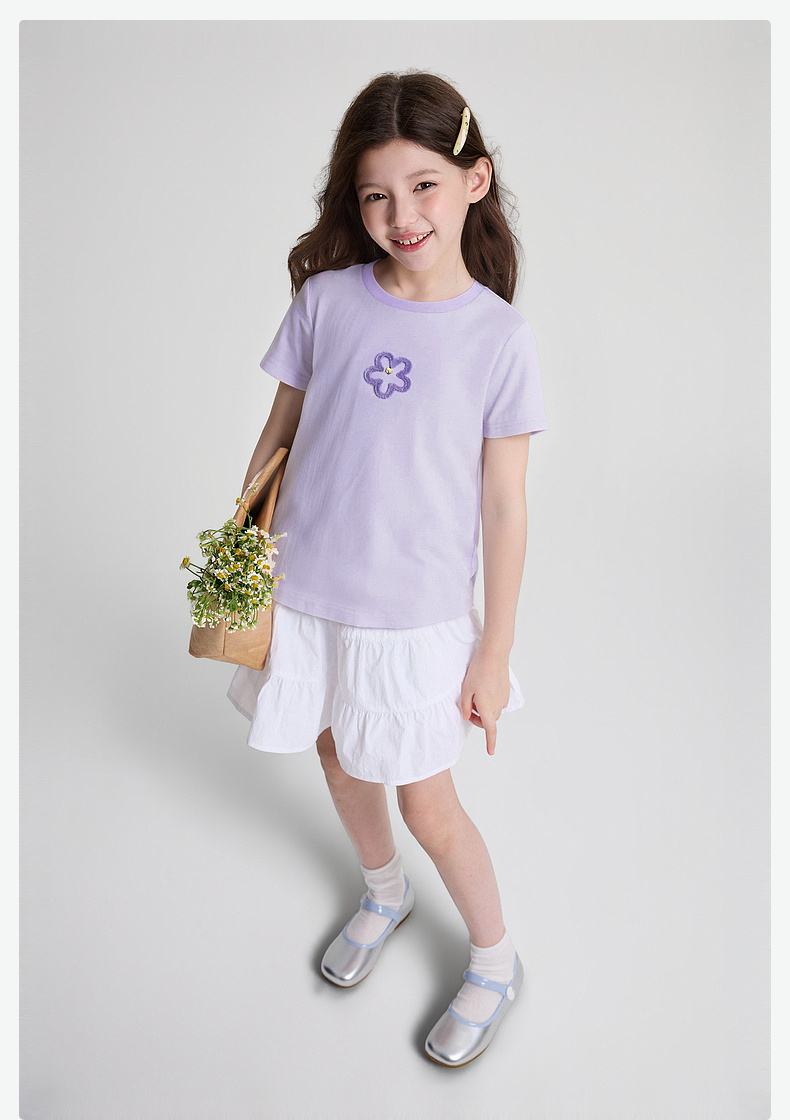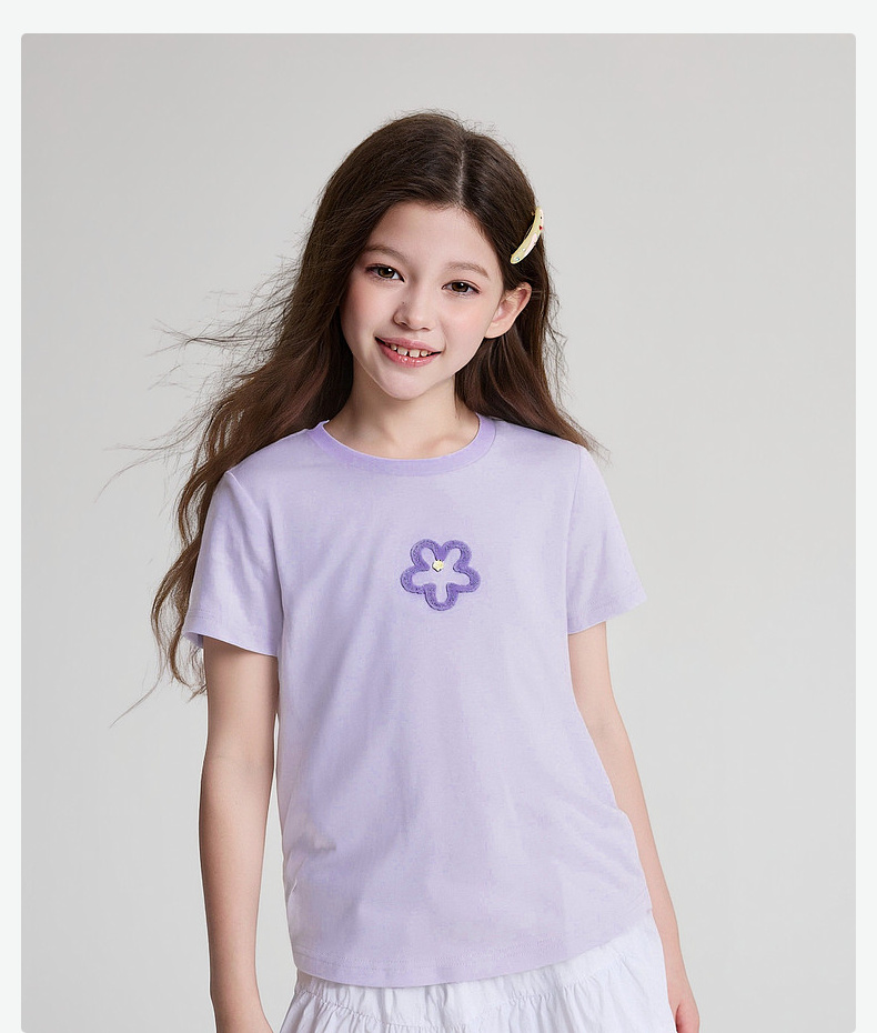 笛莎/Deesha 2026年夏季新款女童中大童纯色圆领T恤