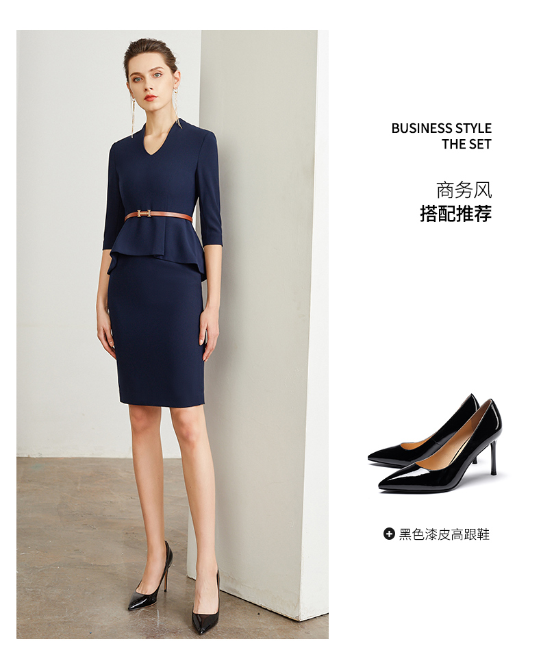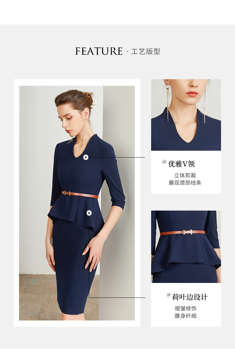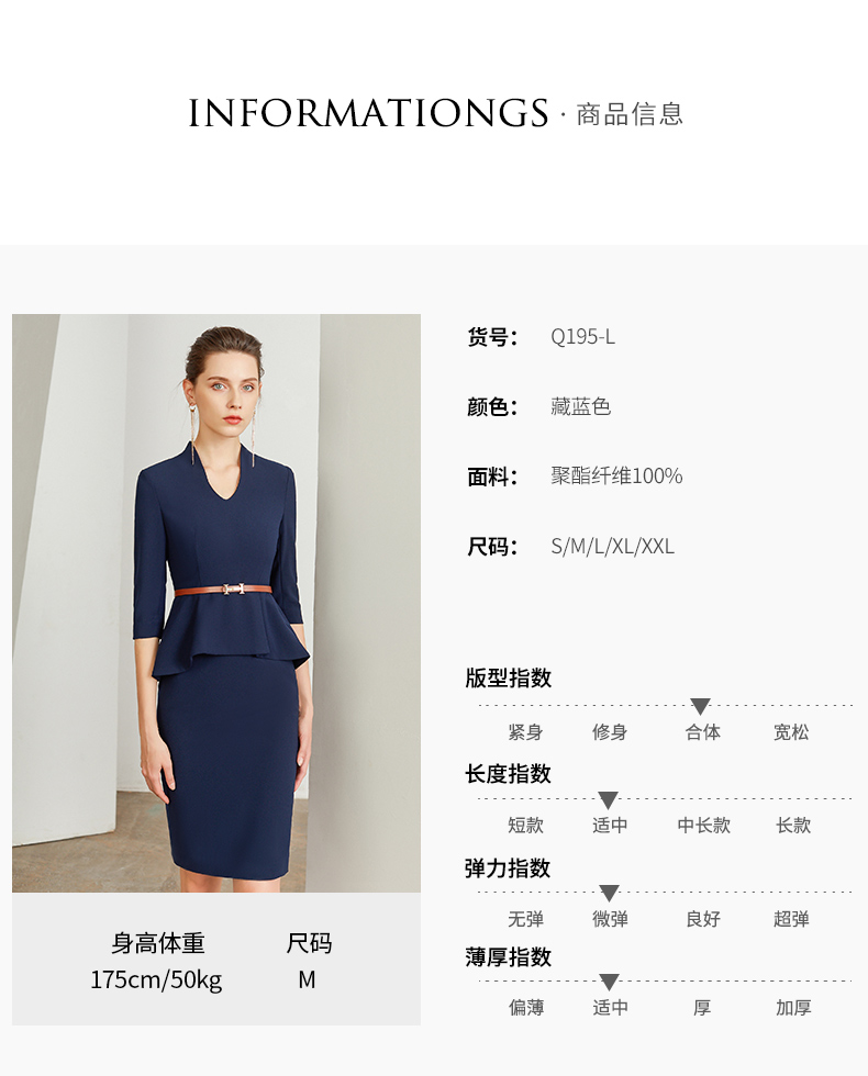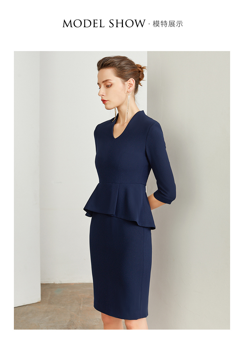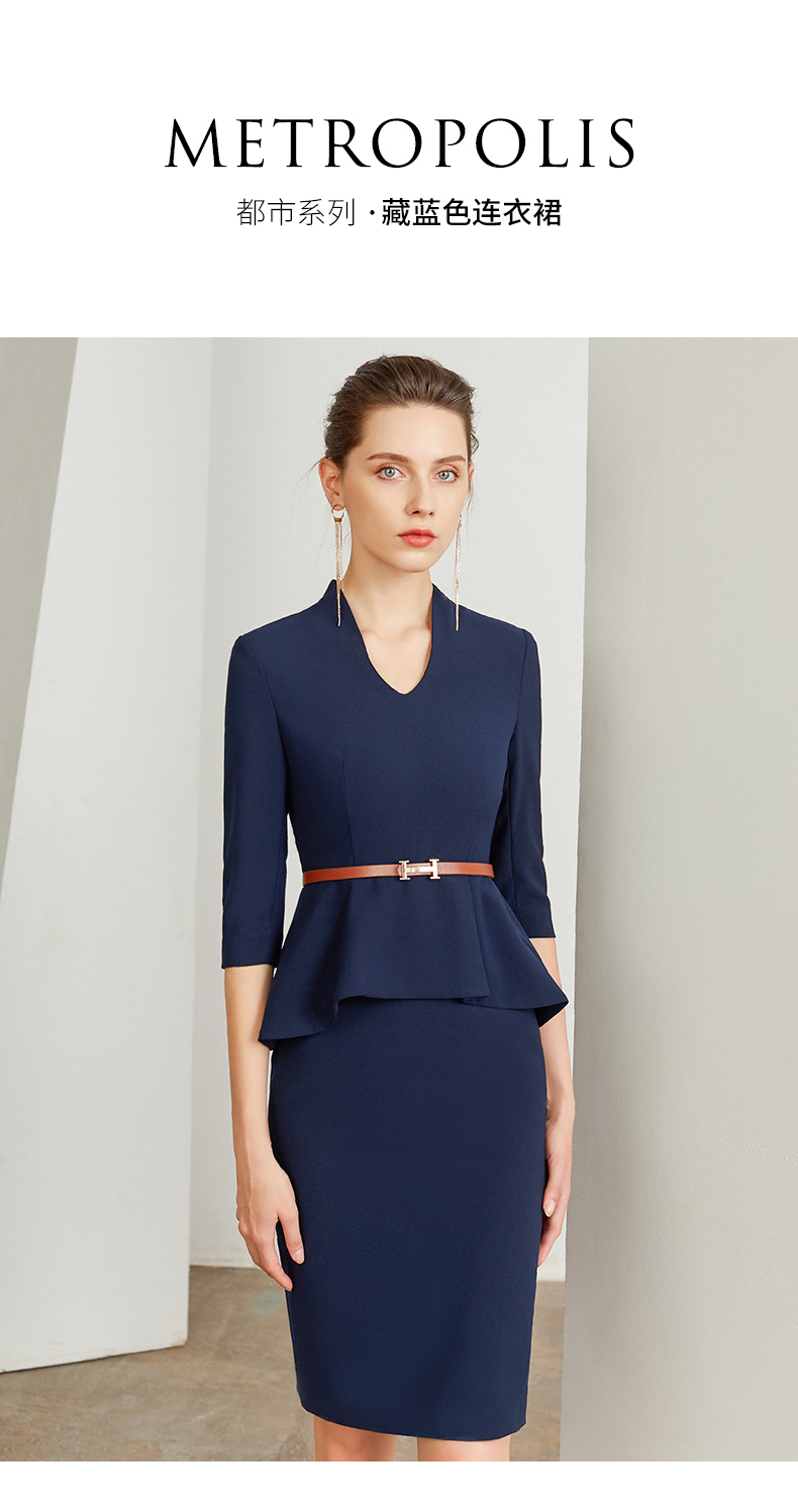 IWY/藏青色商务职业装连衣裙女修身包臀百搭干练时尚气质名媛工作服装Q195+D0053