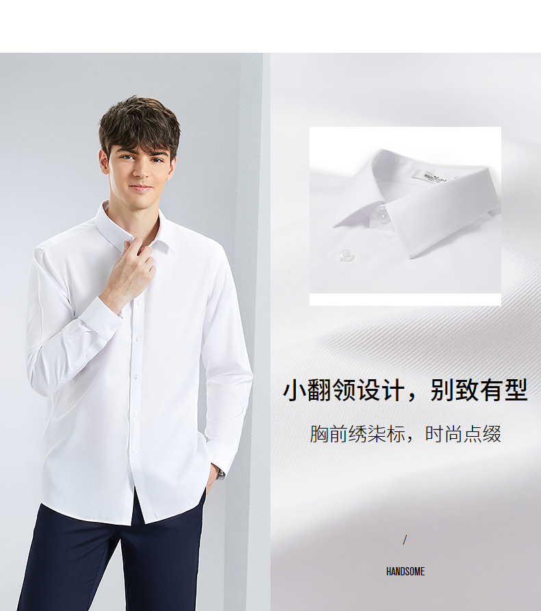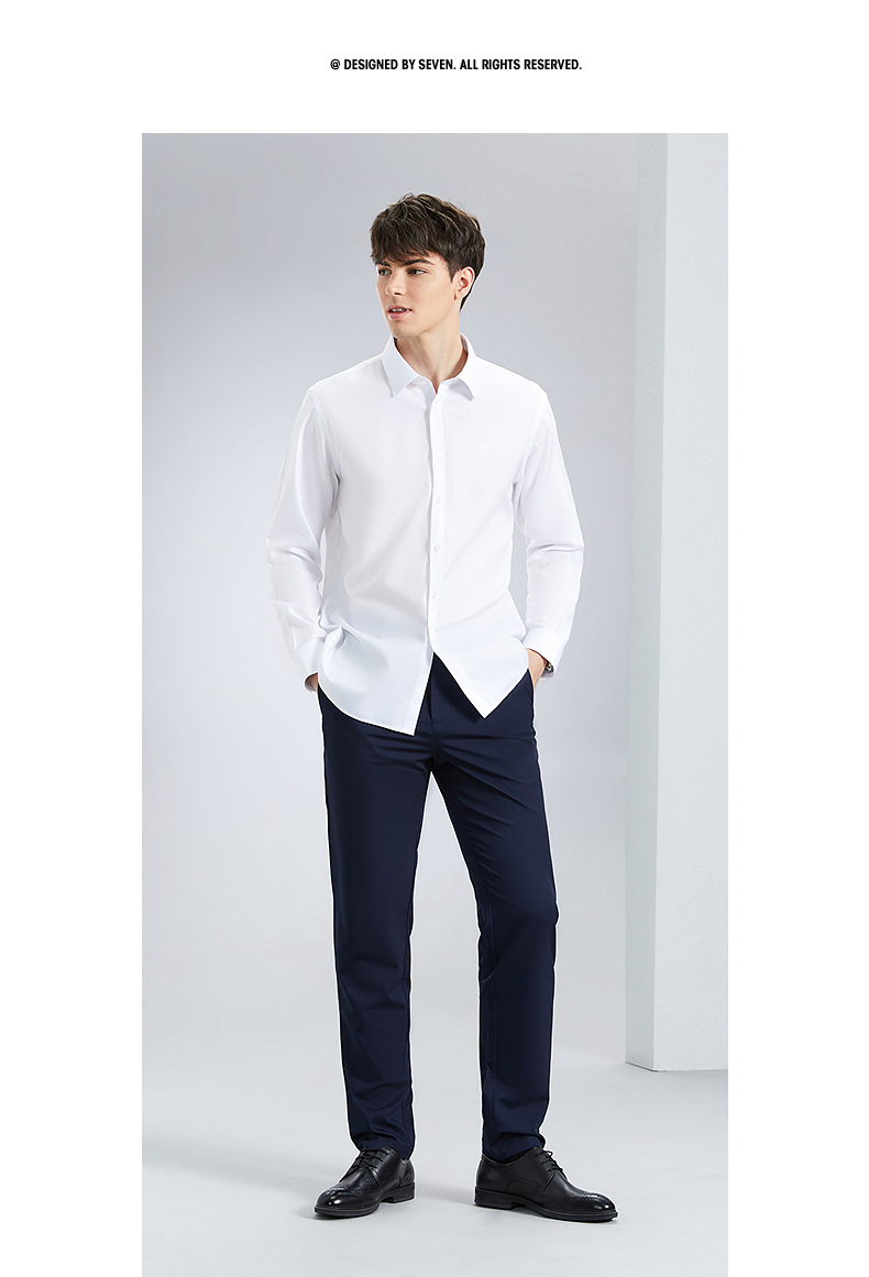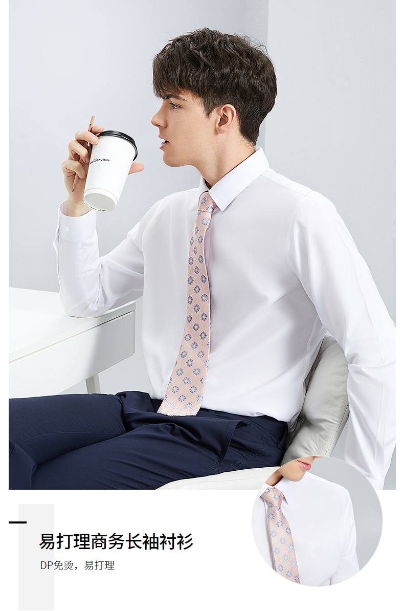 【DP免烫】柒牌男士纯棉长袖衬衫春季新款商务正装易打理翻领衬衣 126A70820