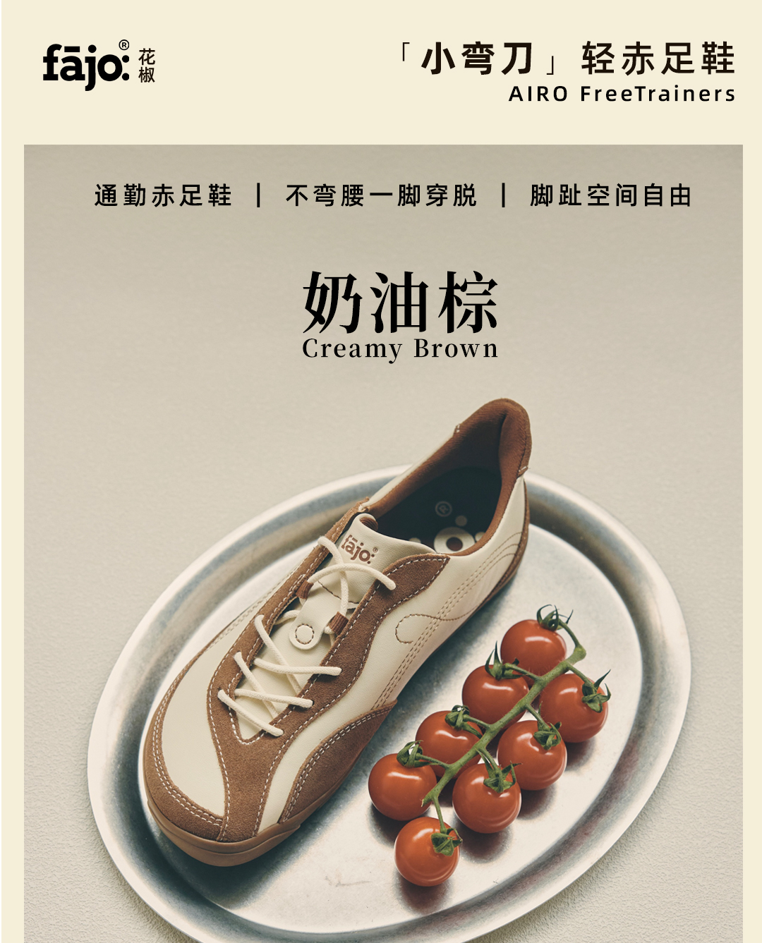 【新品】fajo花椒星球「小弯刀」奶油棕 薄底休闲鞋 轻赤足鞋系列 男女同款
