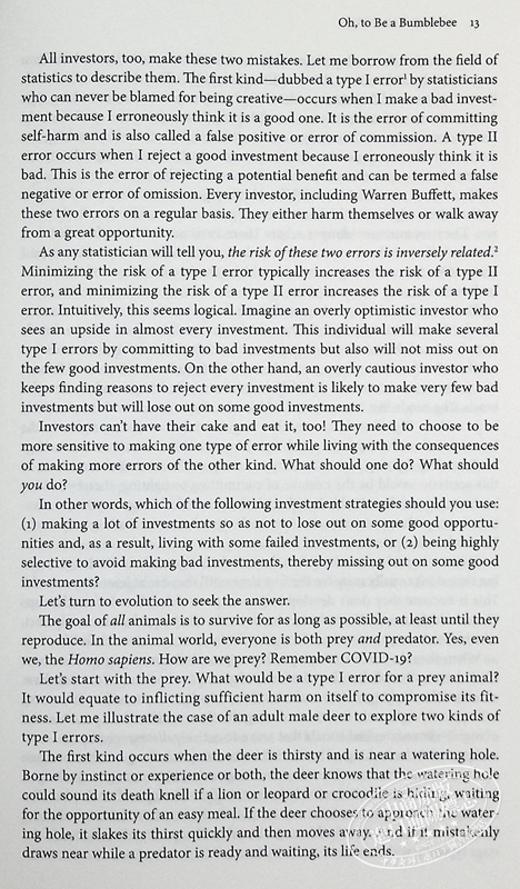 普拉克-普拉萨德提供了一种基于意外来源的耐心长期投资哲学:进化生物学。他从达尔文的核心概念中吸取了关键的教训,将自然界的生动例子与令人信服的好的和坏的投资决定的故事混合在一起--包括他自己。大黄蜂的生存策略如何帮助我们接受我们可能错过特斯拉的事实?培育驯服狐狸的实验对成功企业的特征有什么启示?为什么一只小青蛙模仿一个大对手的呱呱叫声可以揭示出企业不诚实的迹象?
