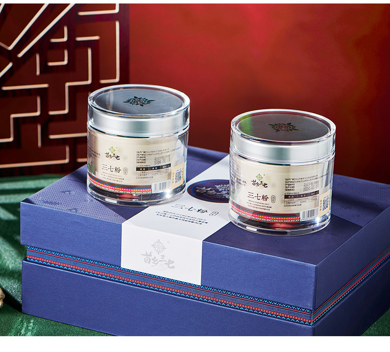【滋补礼盒】苗乡三七有机安全认证高端云南文山田七头生熟三七粉120g礼盒