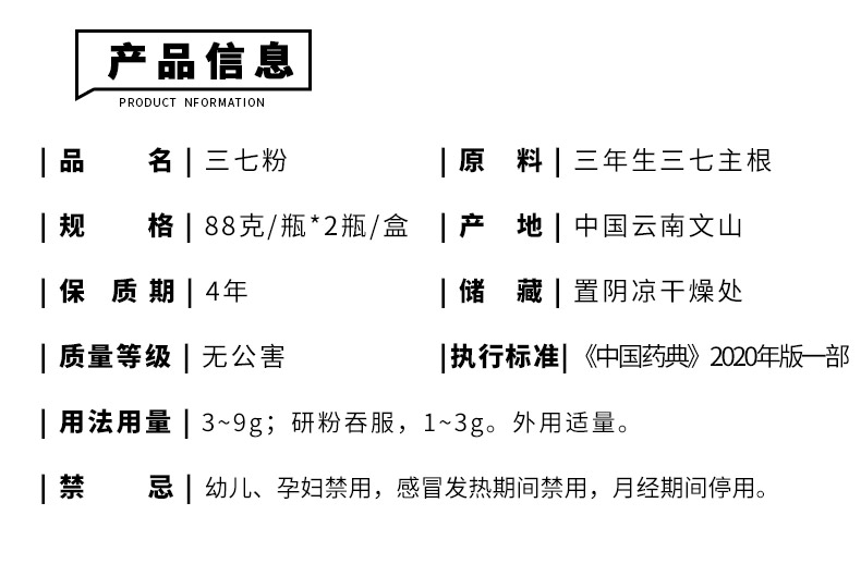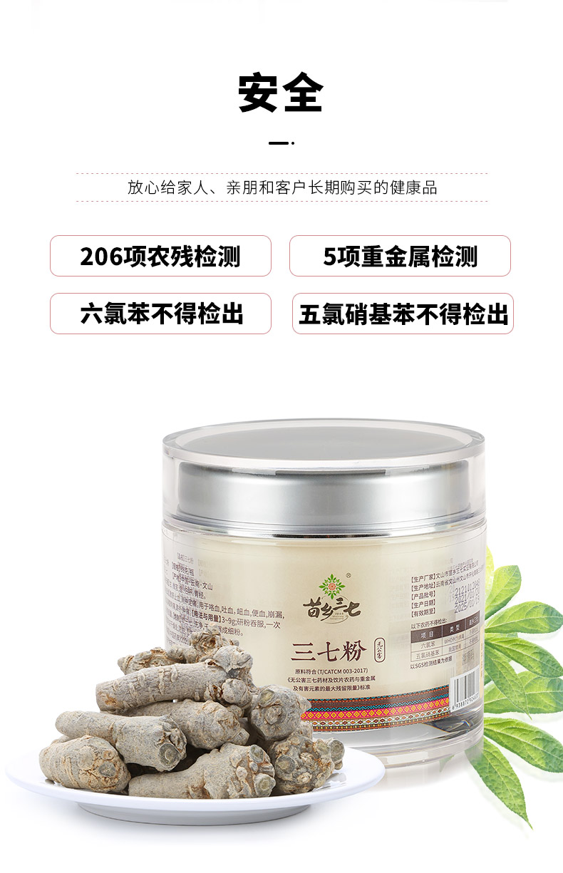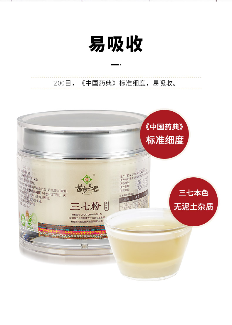 苗乡无公害三七粉88g云南文山正品三七头超细极细粉田七