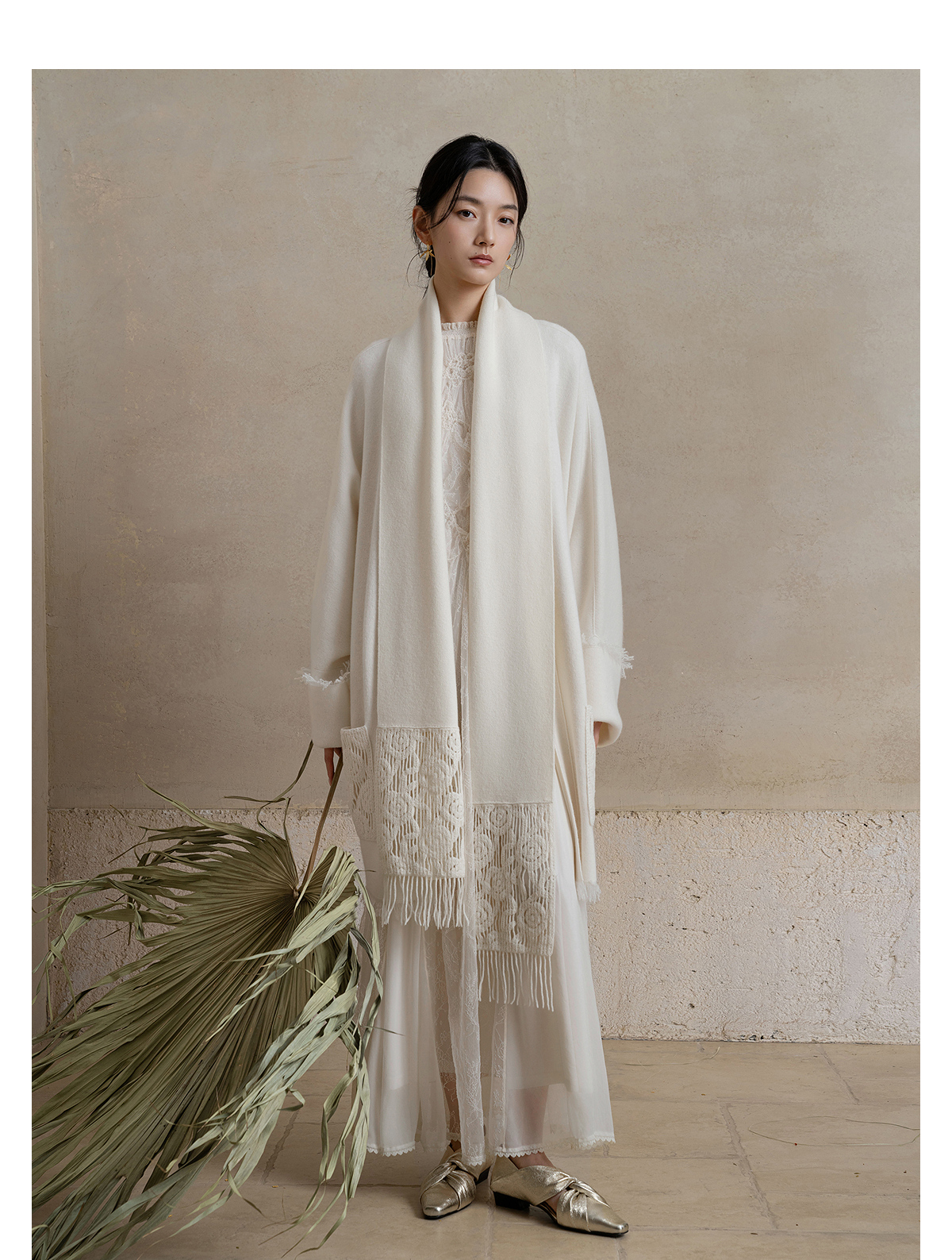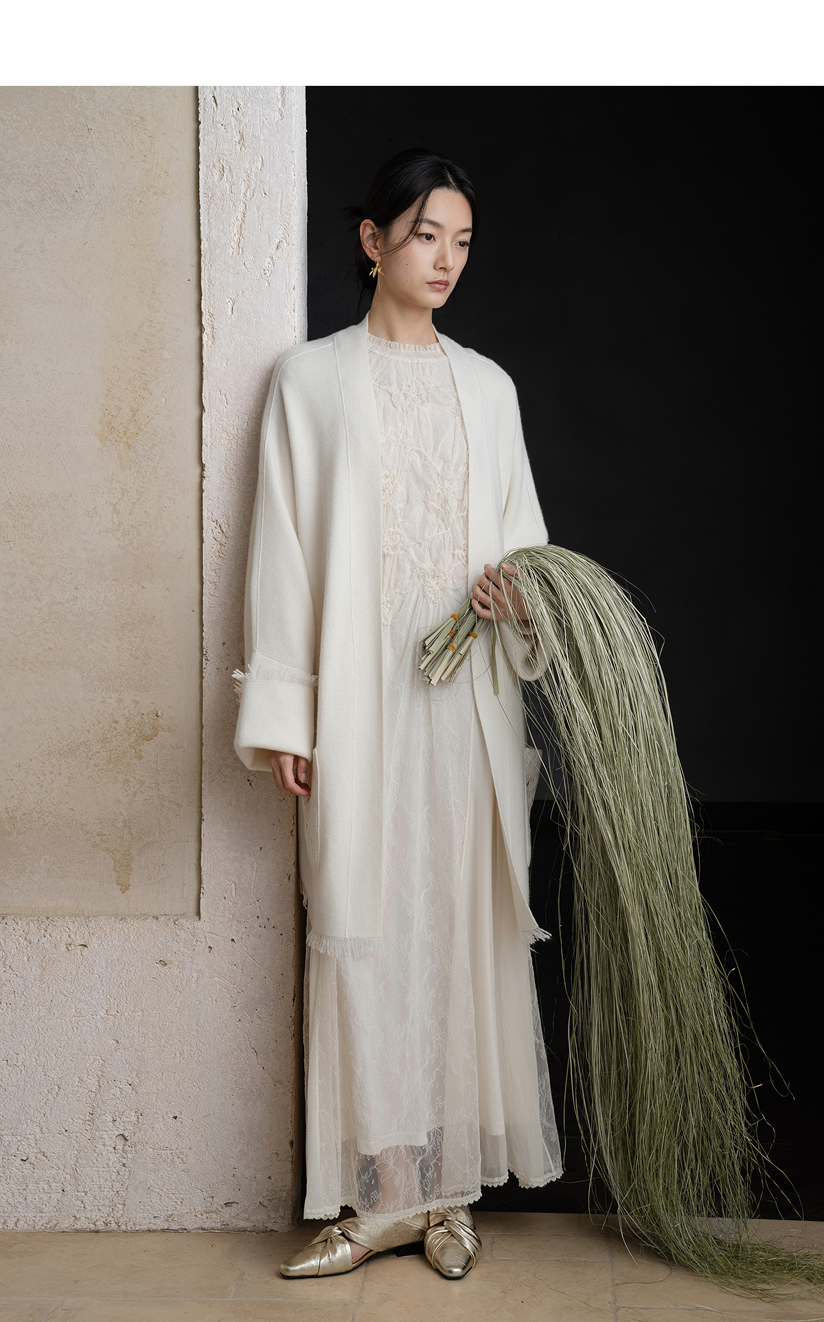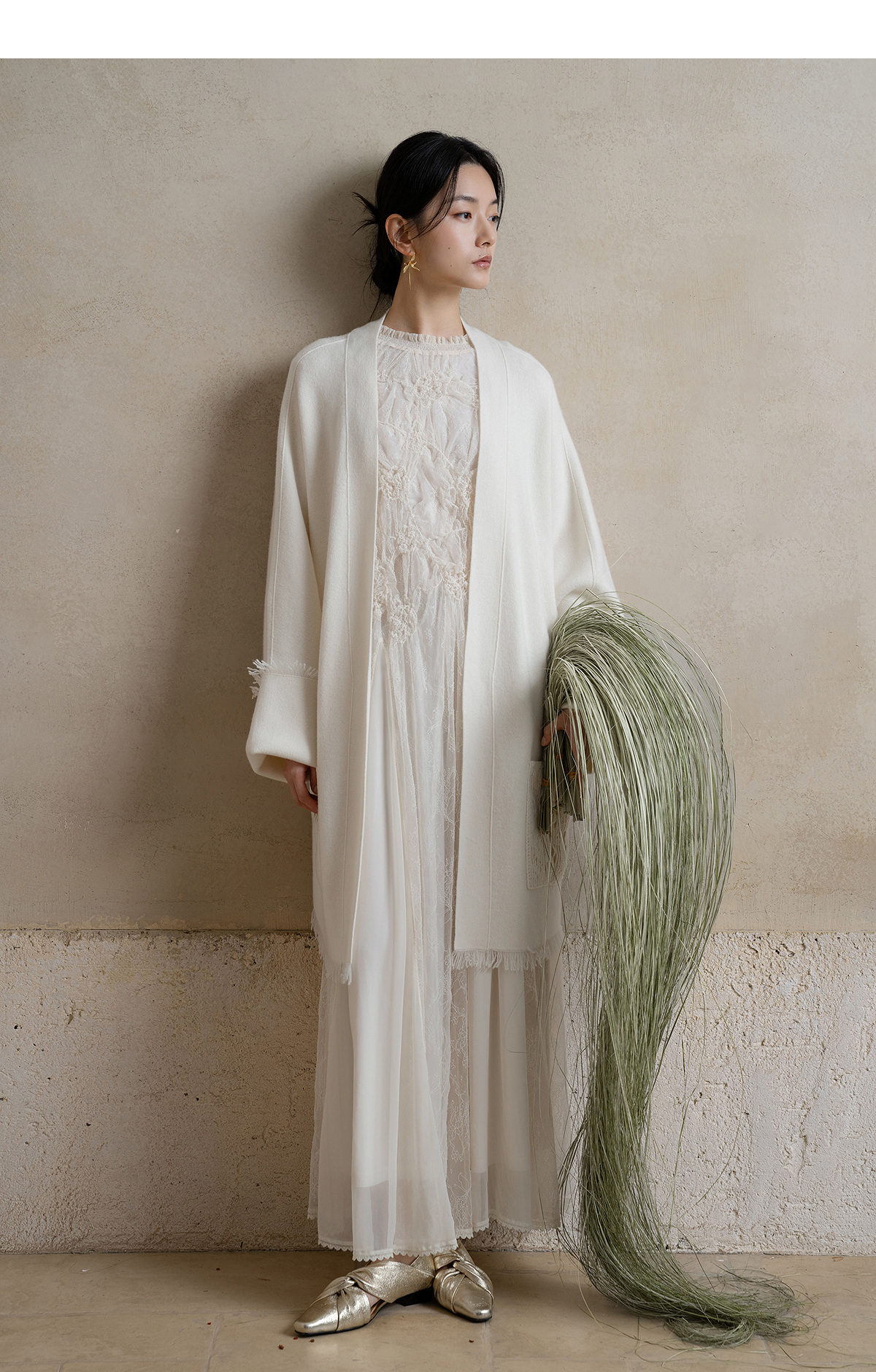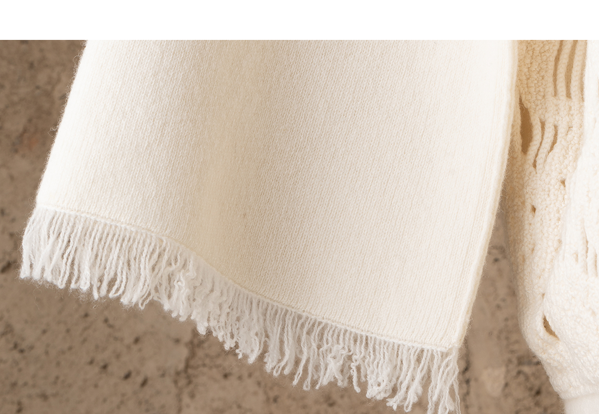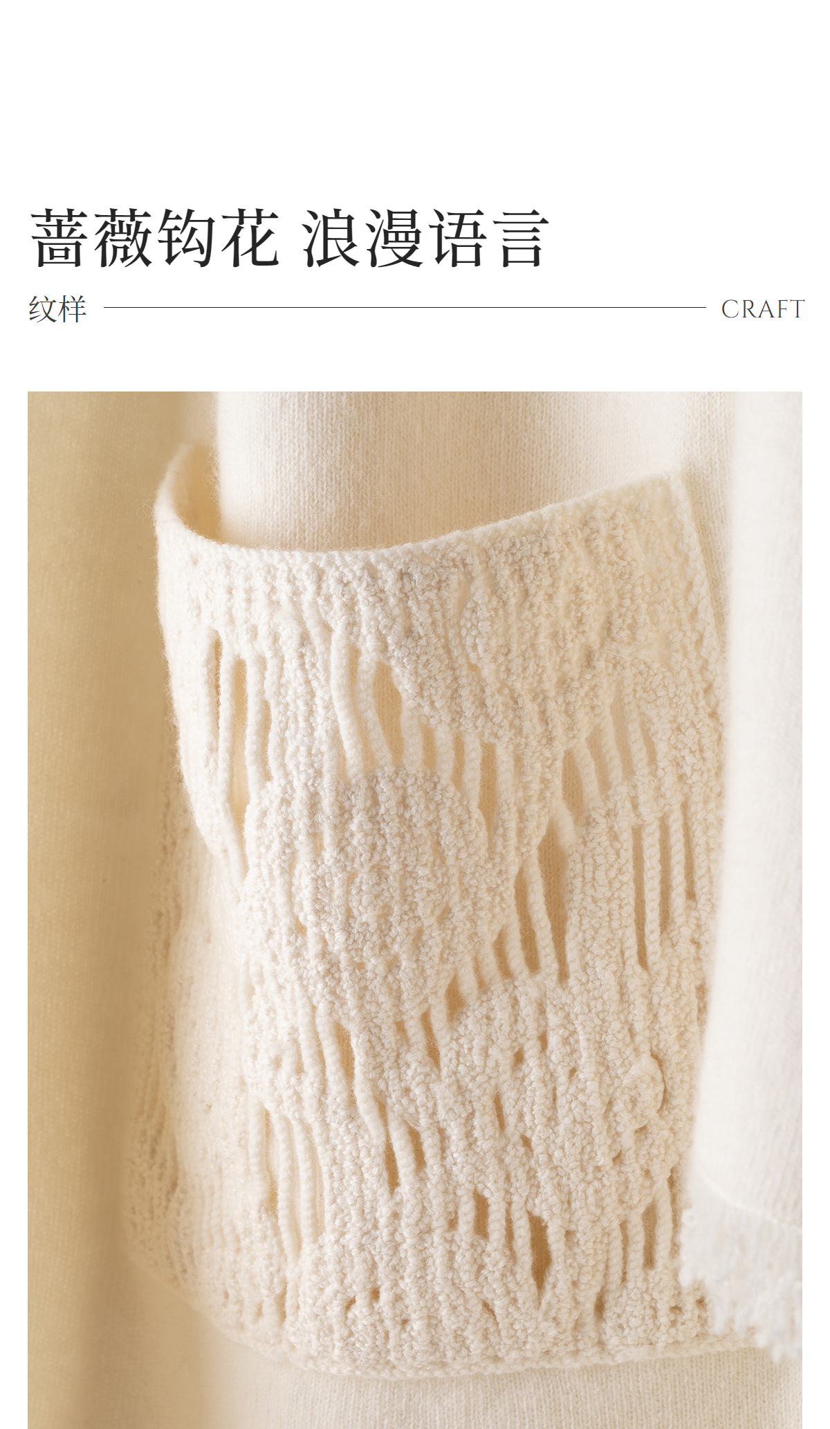 【林栖设计小店】(现货)绵羊毛毛织外套镂空仿手钩花流苏2025秋冬新款长袖毛衣女1954007