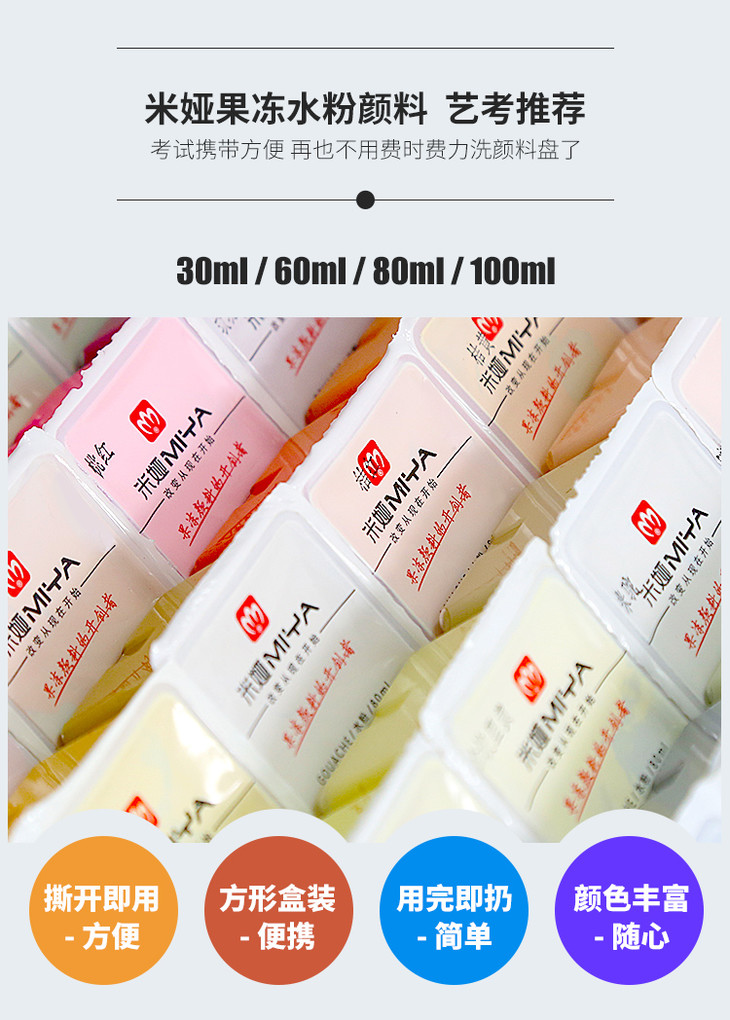米娅miya 高级灰嵌入果冻水粉颜料 国美灰色水粉画 30ml*4 80ml