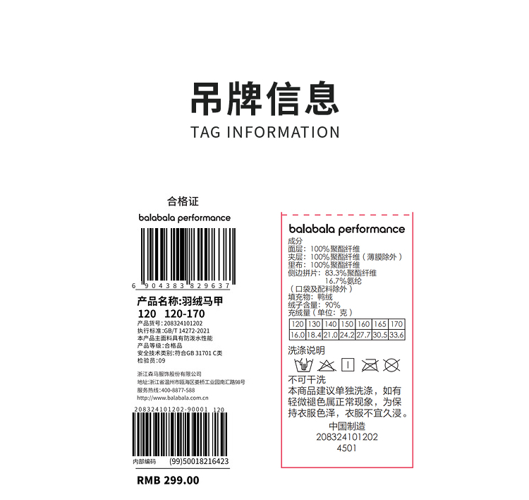 【bp】巴拉巴拉功能运动秋冬轻量保暖儿童羽绒服鸭绒马甲背心