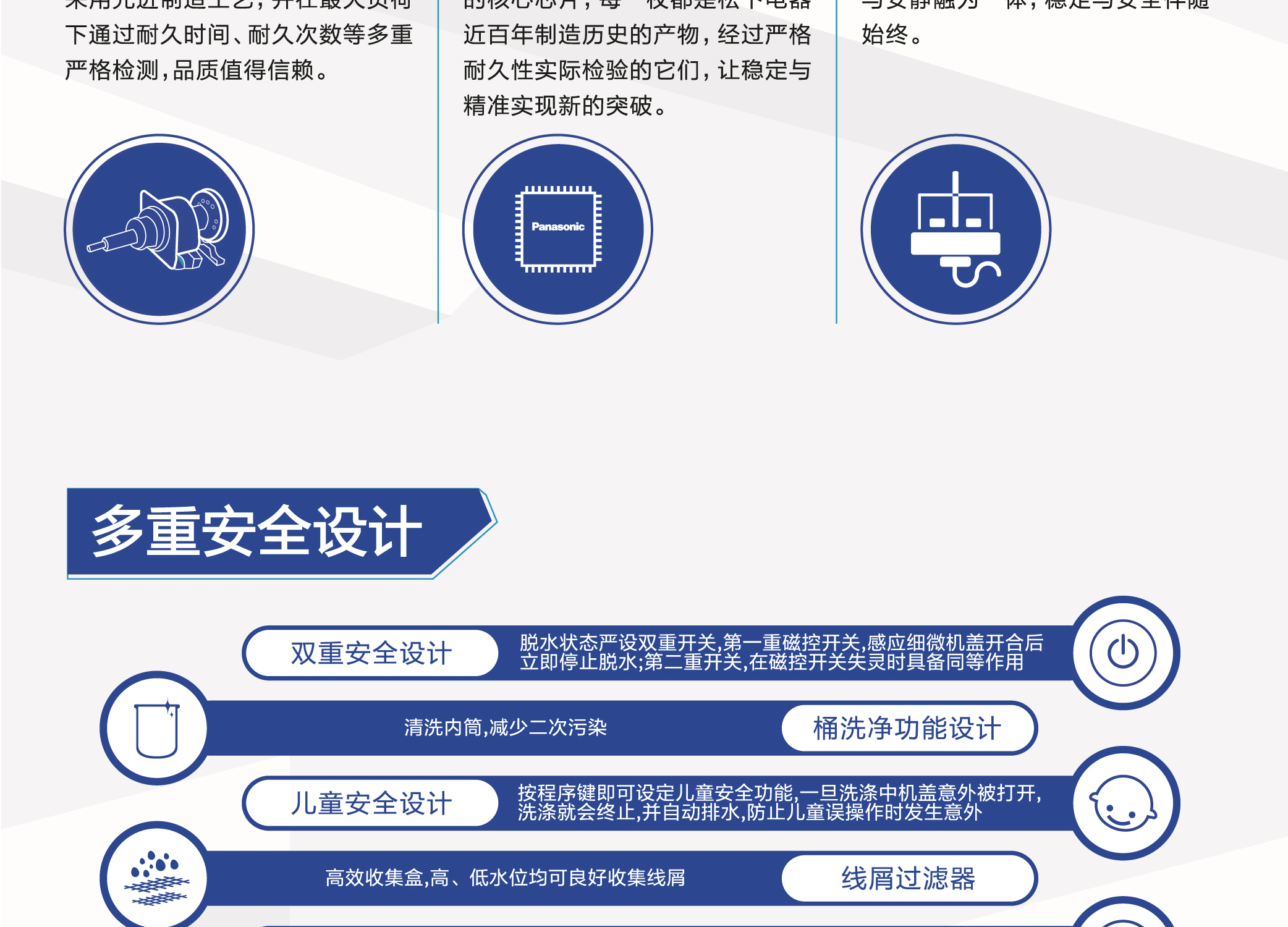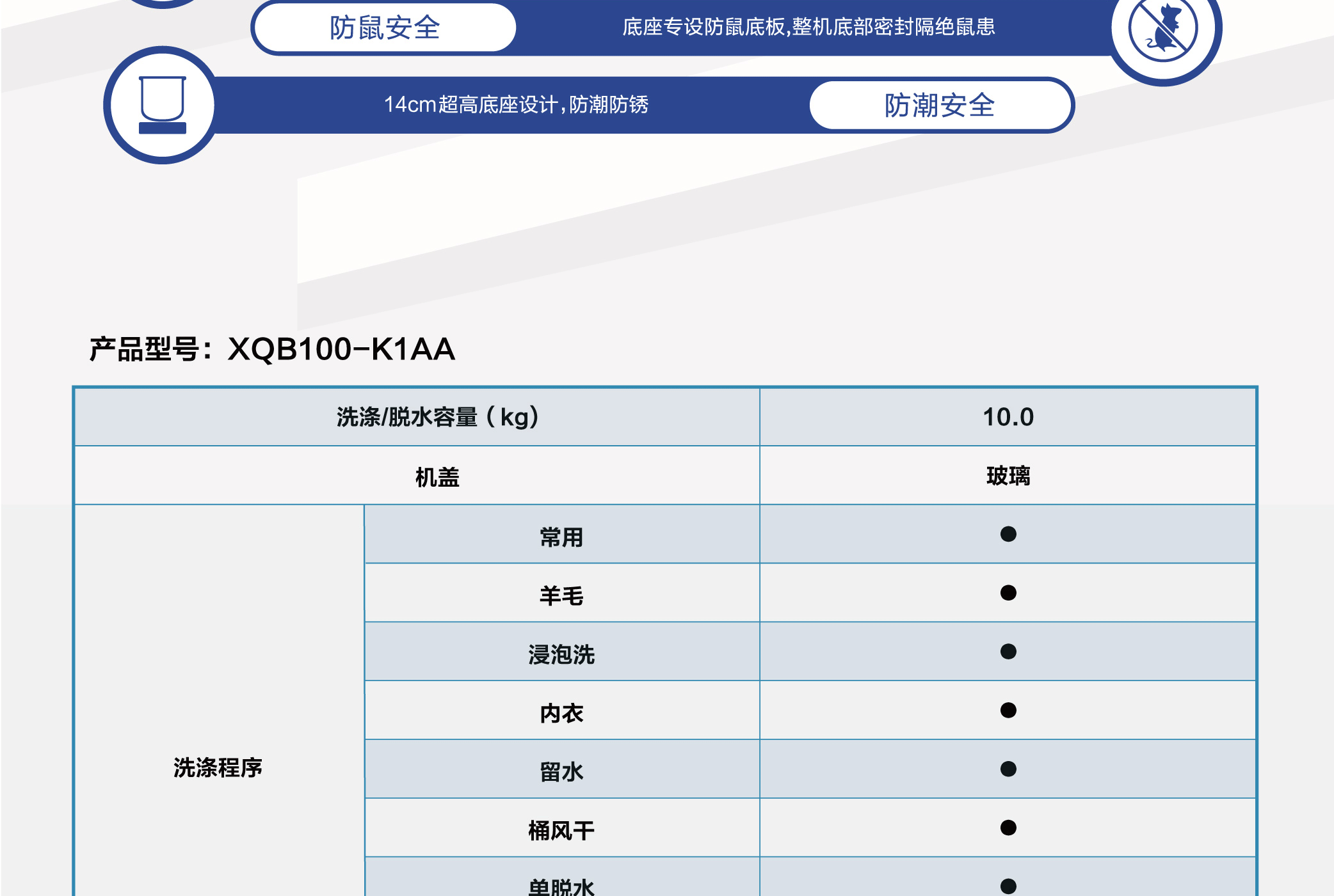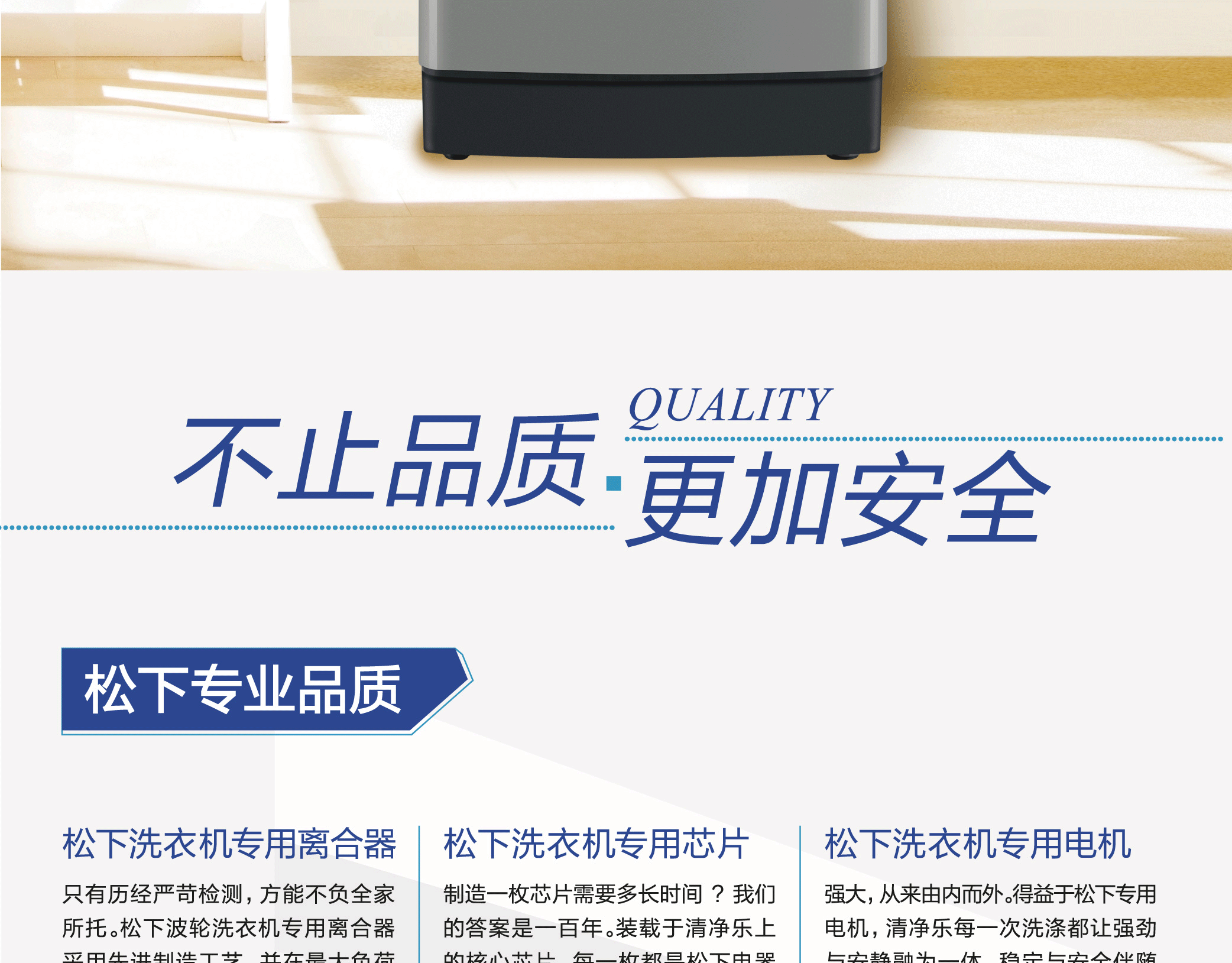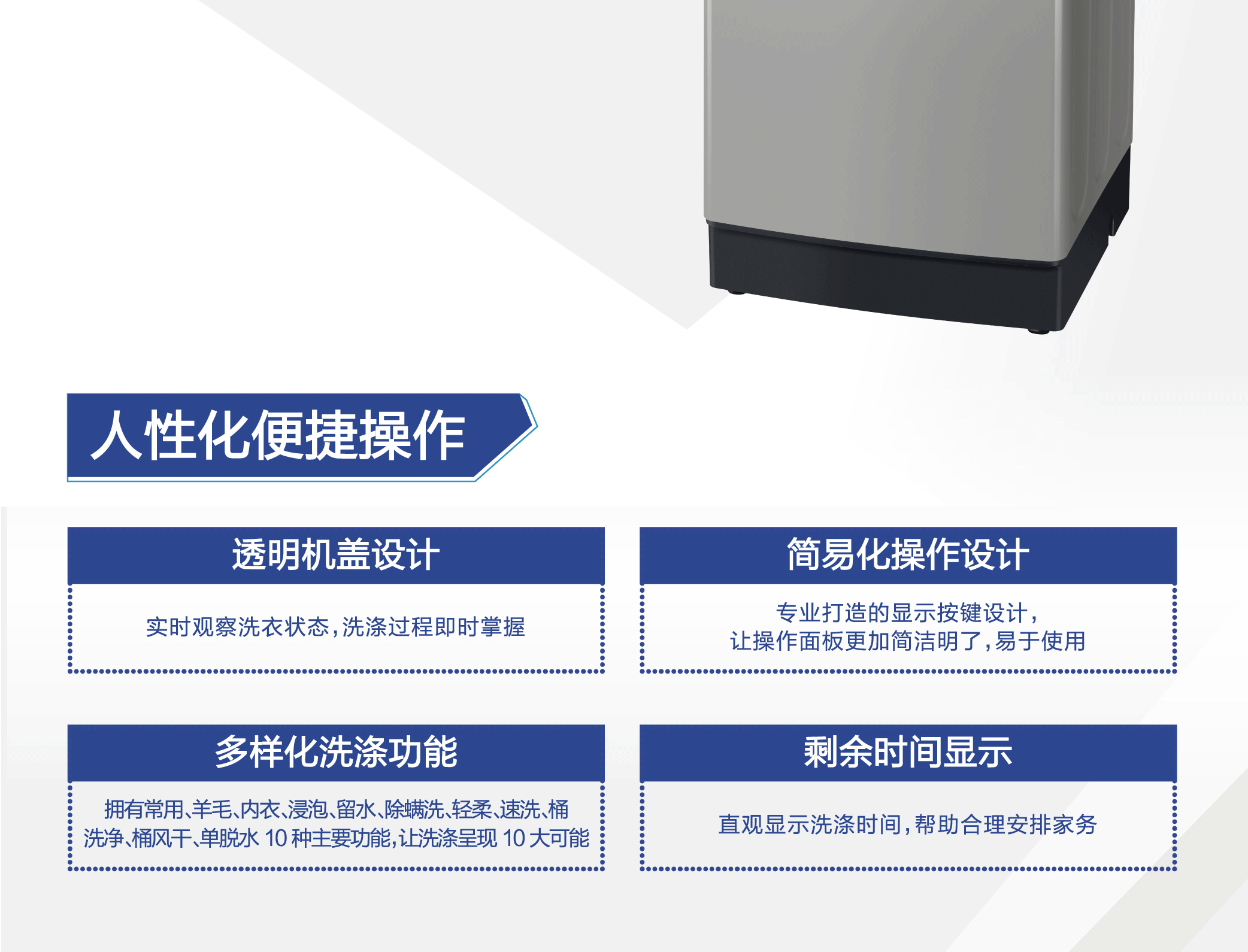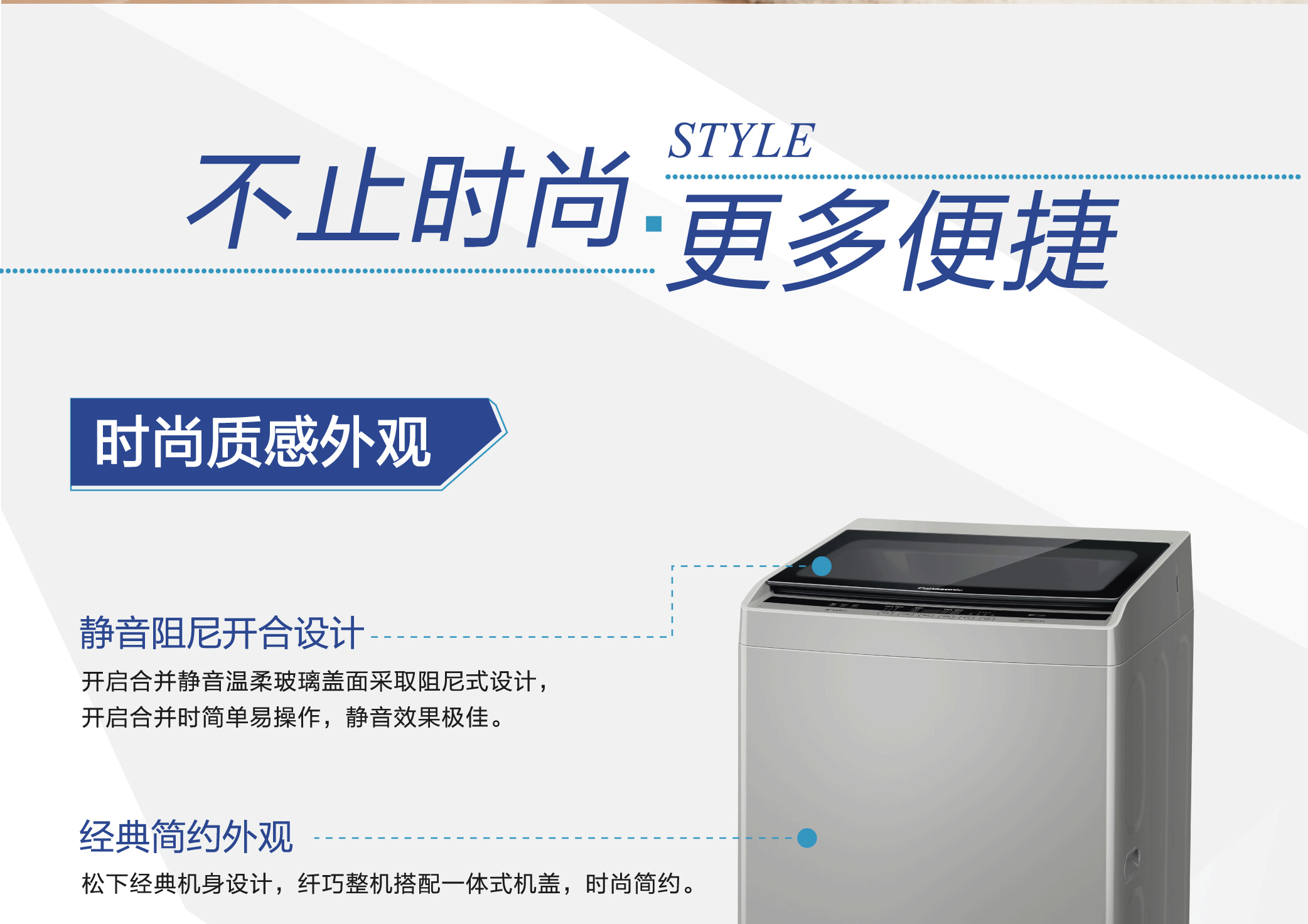 松下 宁净系列 波轮洗衣机 静音阻尼玻璃盖 多样化洗涤功能 剩余时间显示 自动感知水位XQB100-K1AA