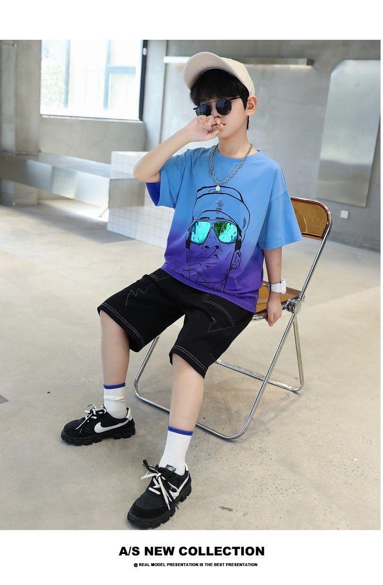男童夏装短袖套装2023新款中大童儿童帅气男孩夏季时髦薄款洋气潮