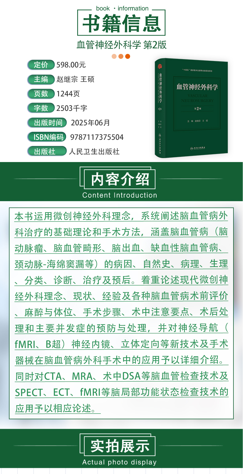 血管神经外科学 第2二版 赵继宗 王硕 本书运用微创神经外科理念 系统阐述脑血管病外科治疗的基础理论和手术方法 人民卫生出版社