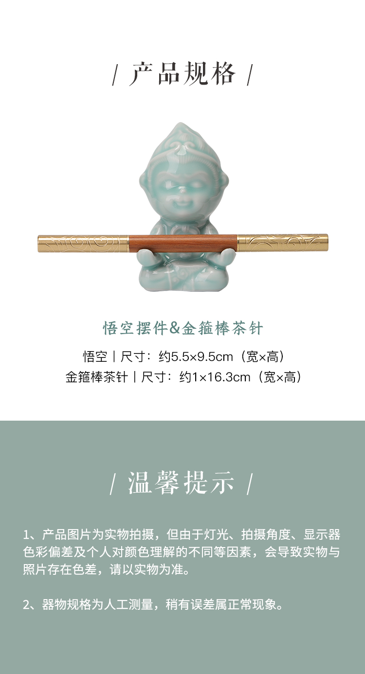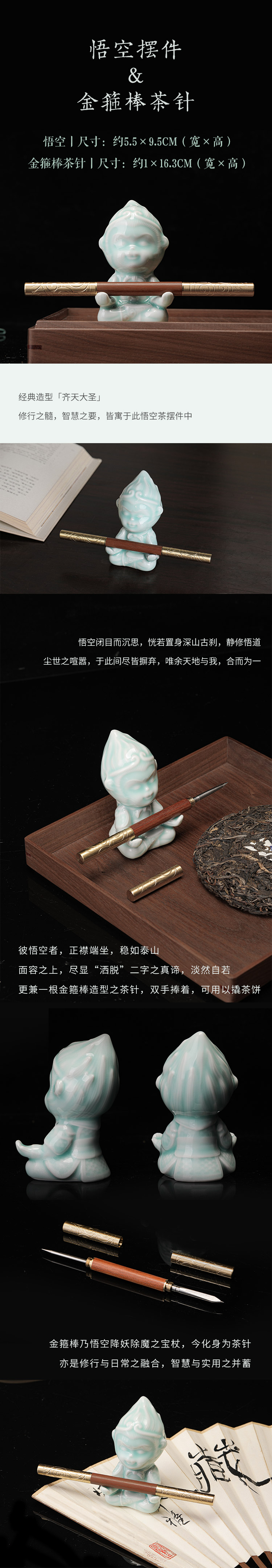 省大师雷慧仙出品龙泉青瓷粉青釉悟空茶宠摆件+金箍棒茶针