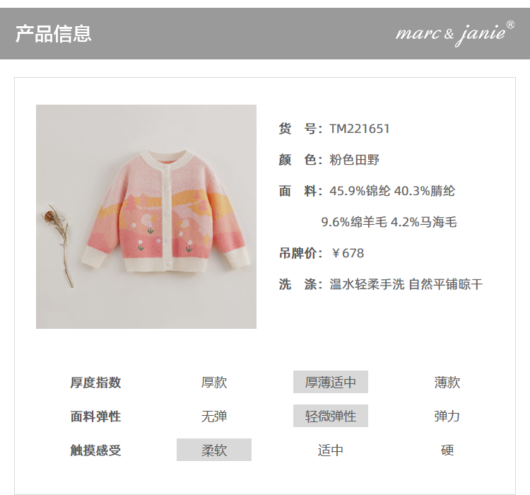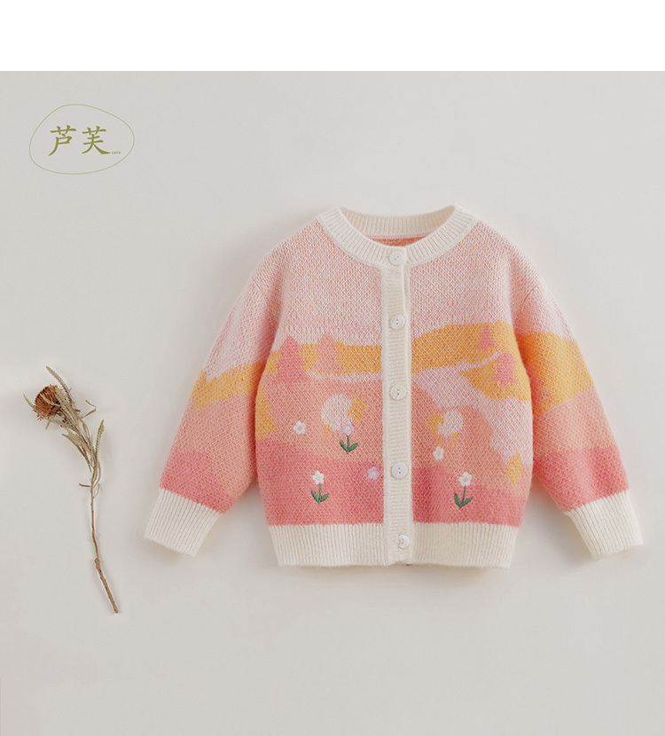 【马克珍妮 芦芙】秋装新款 女童圆领针织开衫儿童毛衣221651