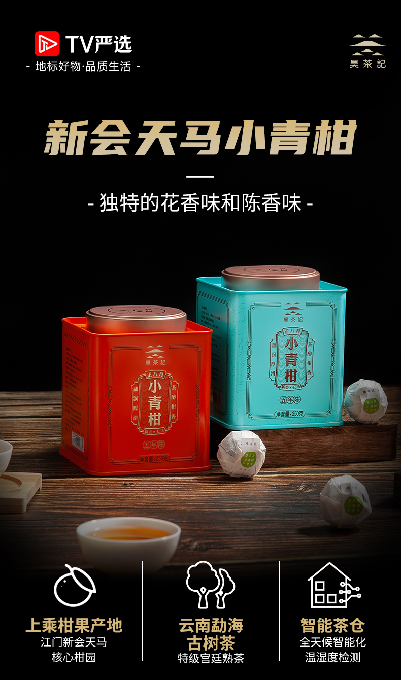 昊茶记 2017年 新会天马小青柑普洱茶 250g*2罐装 特级陈皮普洱熟茶