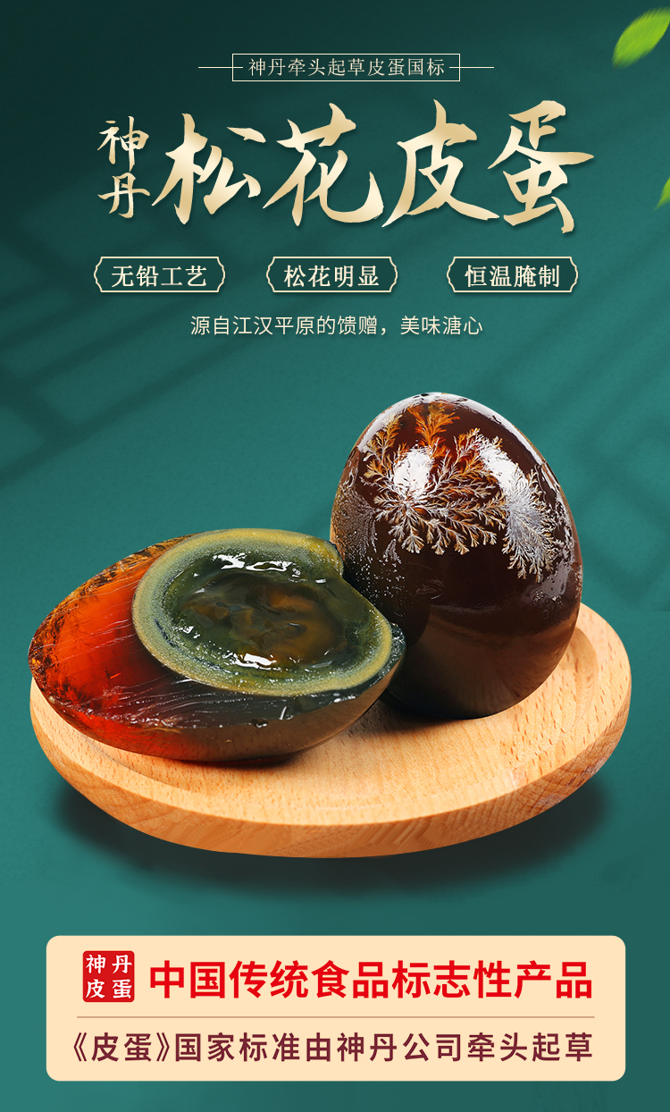 湖北神丹健康食品有限公司,中国实力雄厚的蛋产品加工企业,年生产、销售各类蛋品数亿枚,是中国目前品种全、销售广的禽蛋研发加工基地。神丹公司以“服务农民,健康人民”为宗旨,以推动中国健康食品发展为己任。