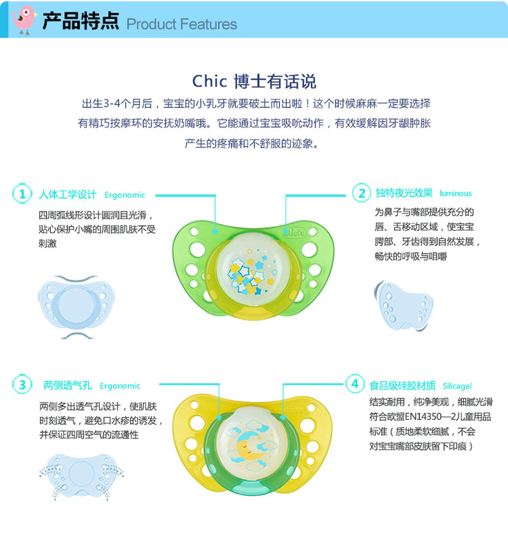 智高透气型硅胶安抚奶嘴12M+(2支装)00075035410000