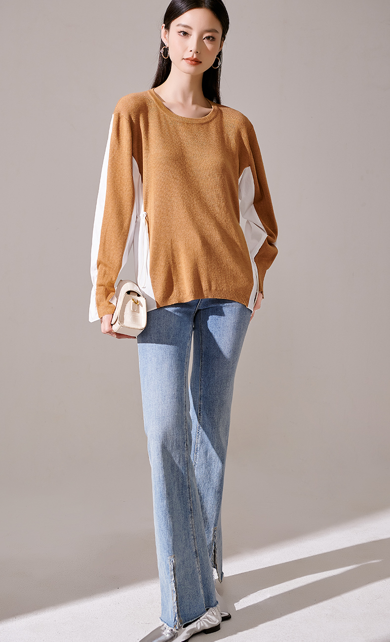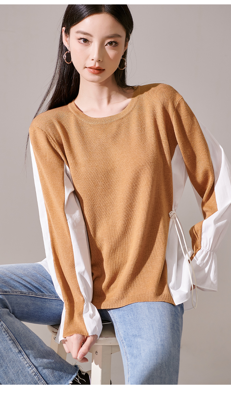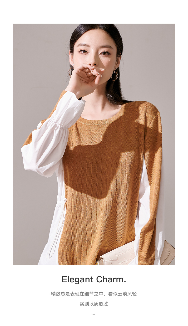芳外新款别致小众休闲毛衣设计感撞色拼接针织衫女8T23CM1244