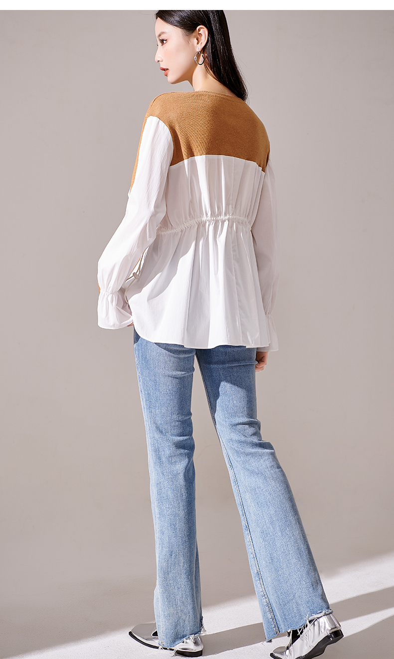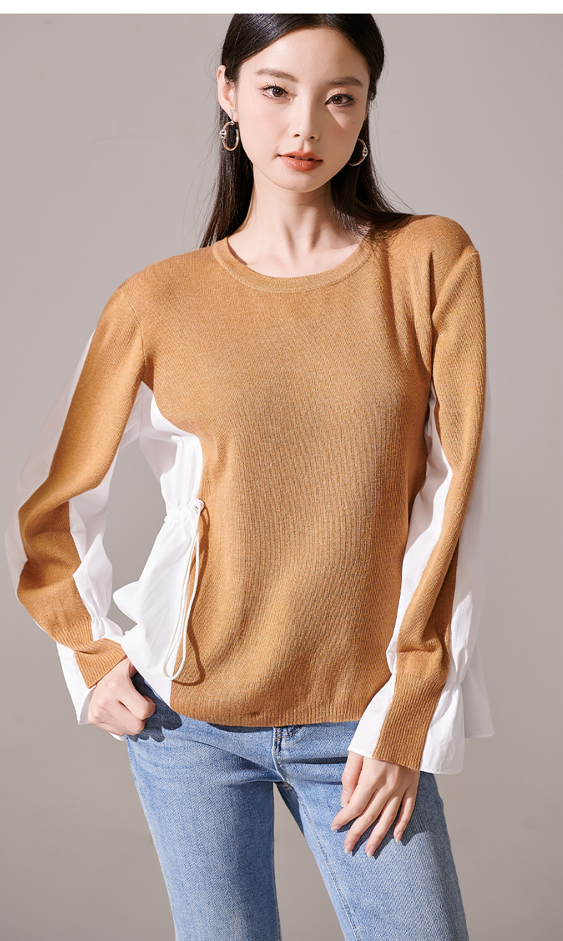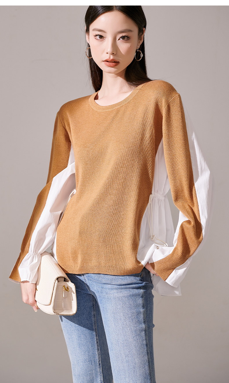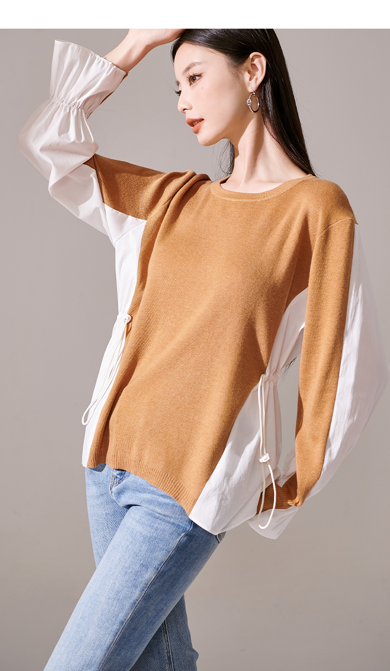 芳外新款别致小众休闲毛衣设计感撞色拼接针织衫女8T23CM1244