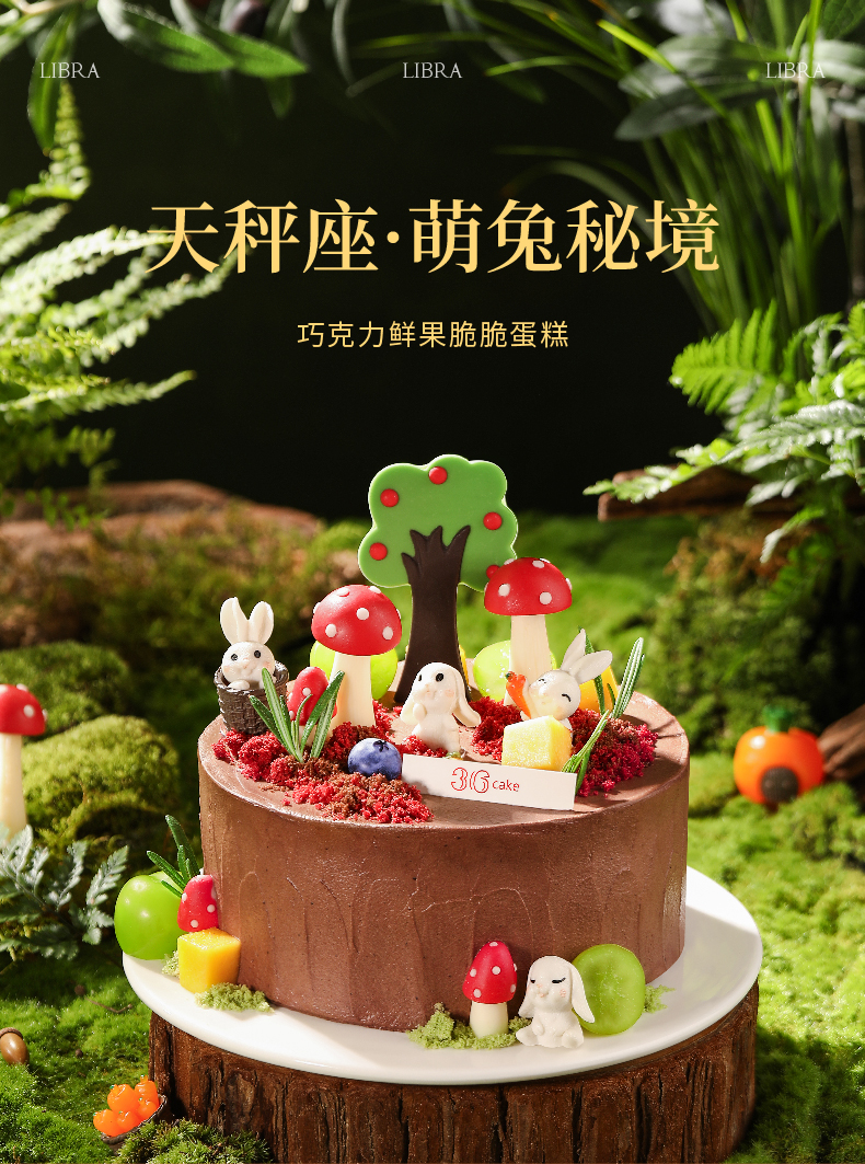 天秤座 ∙ 萌兔秘境 ∙巧克力鲜果脆脆蛋糕,可选1.5/2.5/6磅 | 36 CAKE