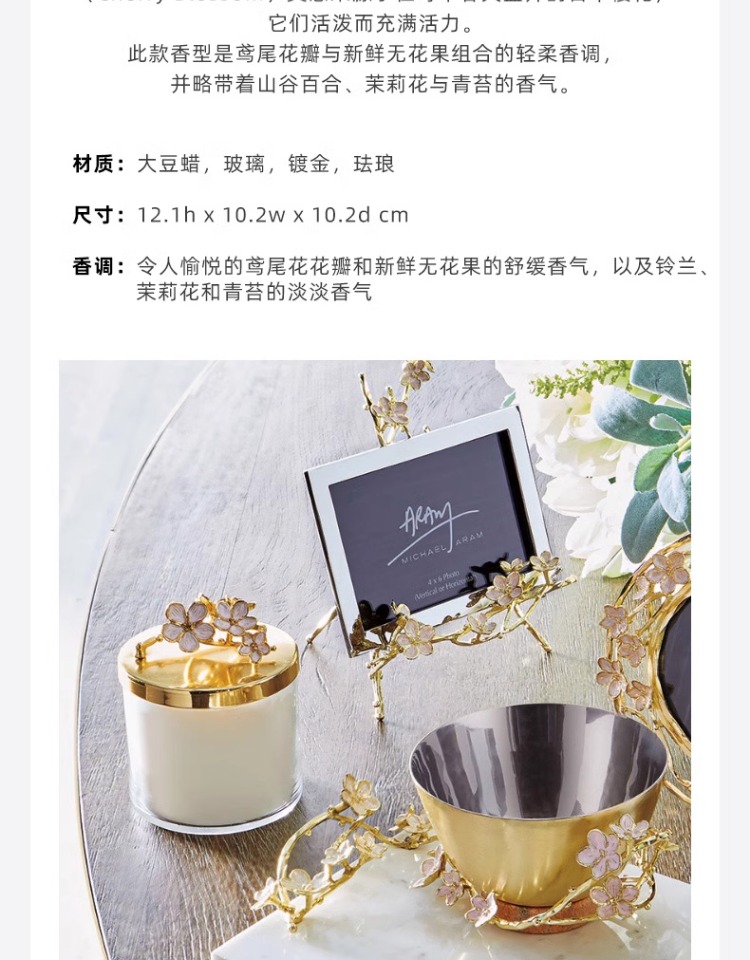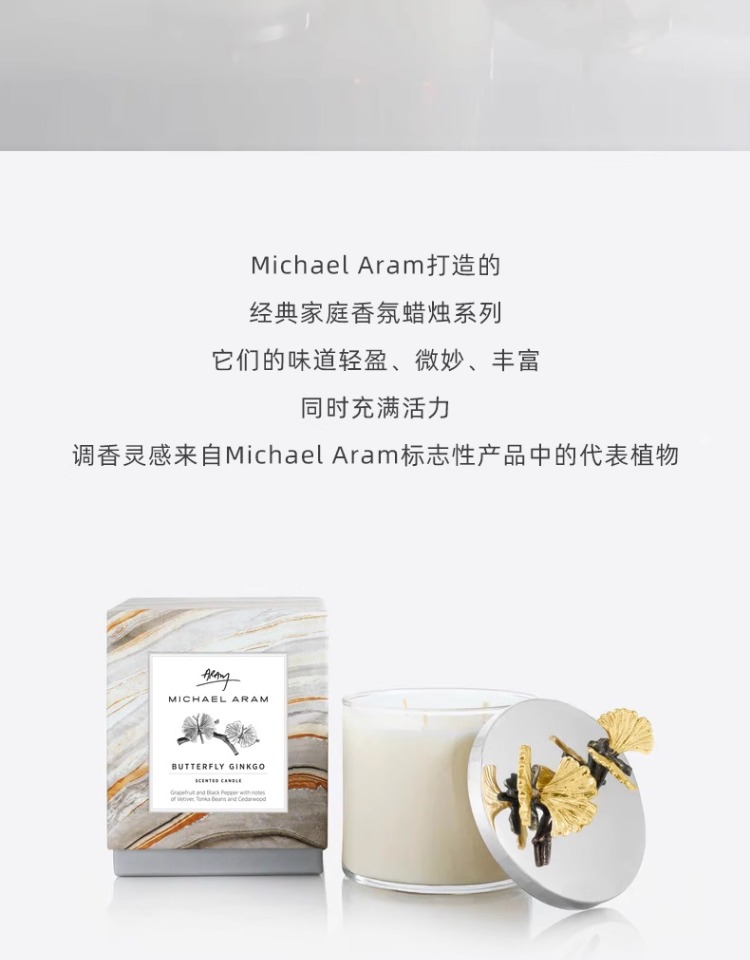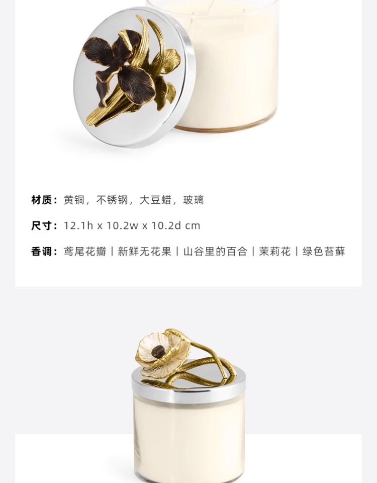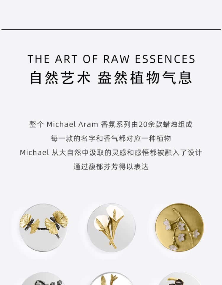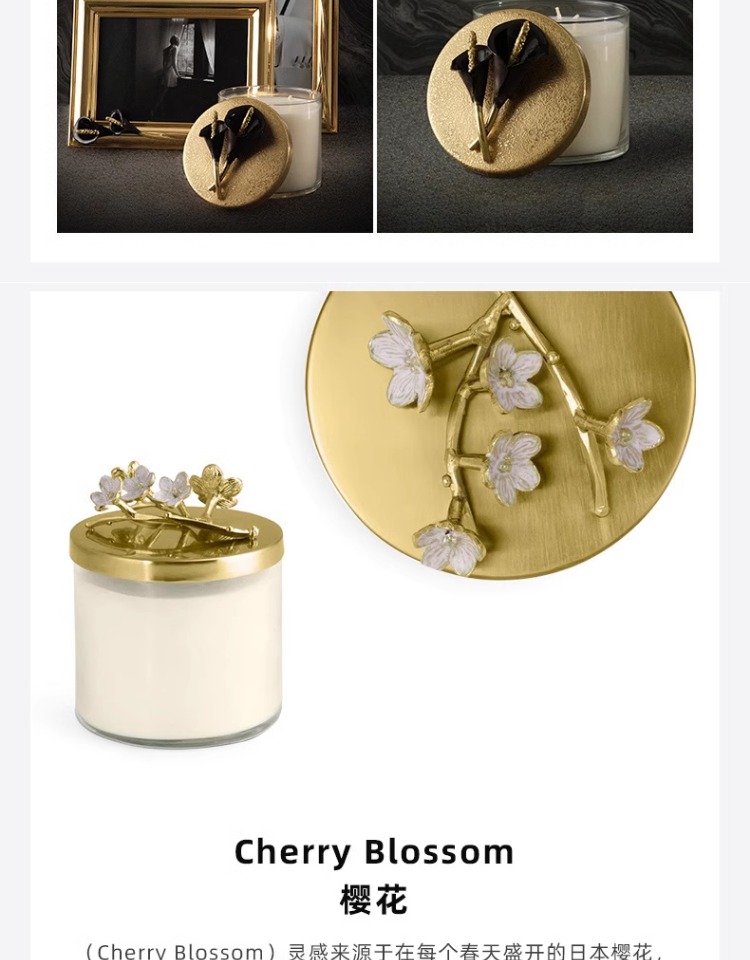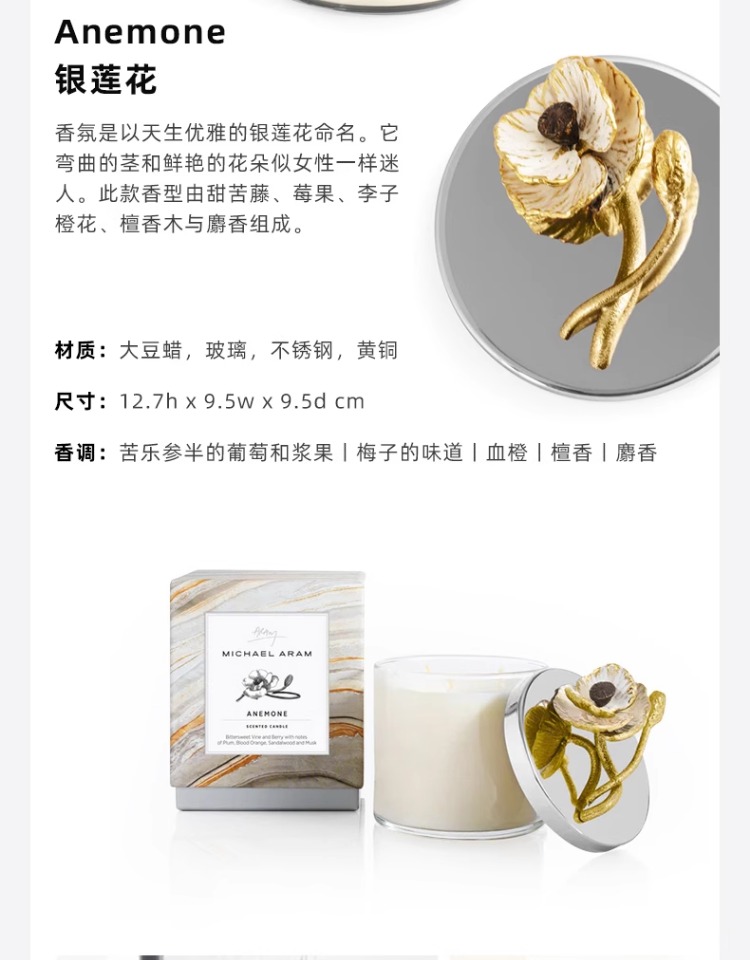 Michael Aram 马蹄莲/银莲花/蝴蝶银杏/向日葵/鸢尾花/樱花蜡烛 手工制作香薰蜡烛灭烛罩灭烛器生日礼物礼盒