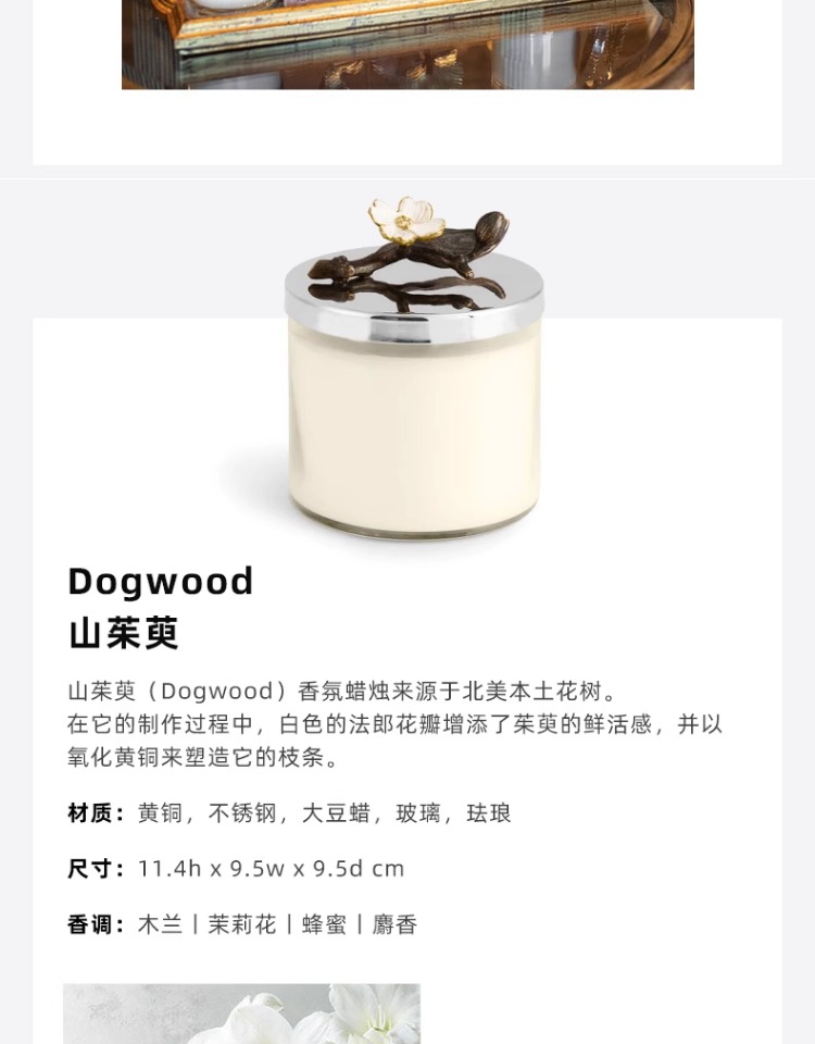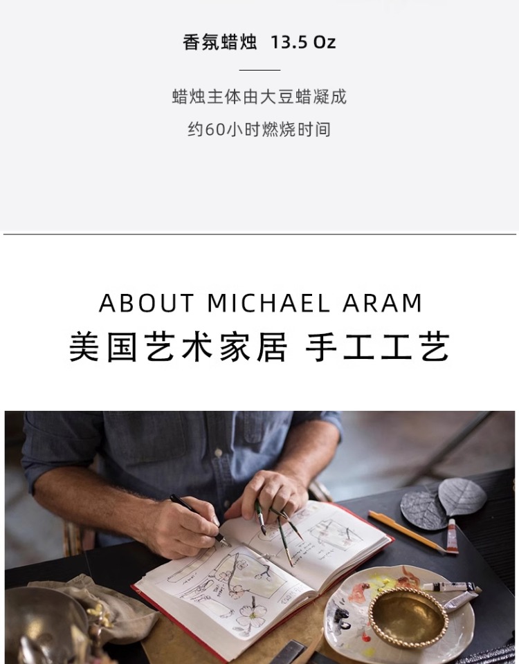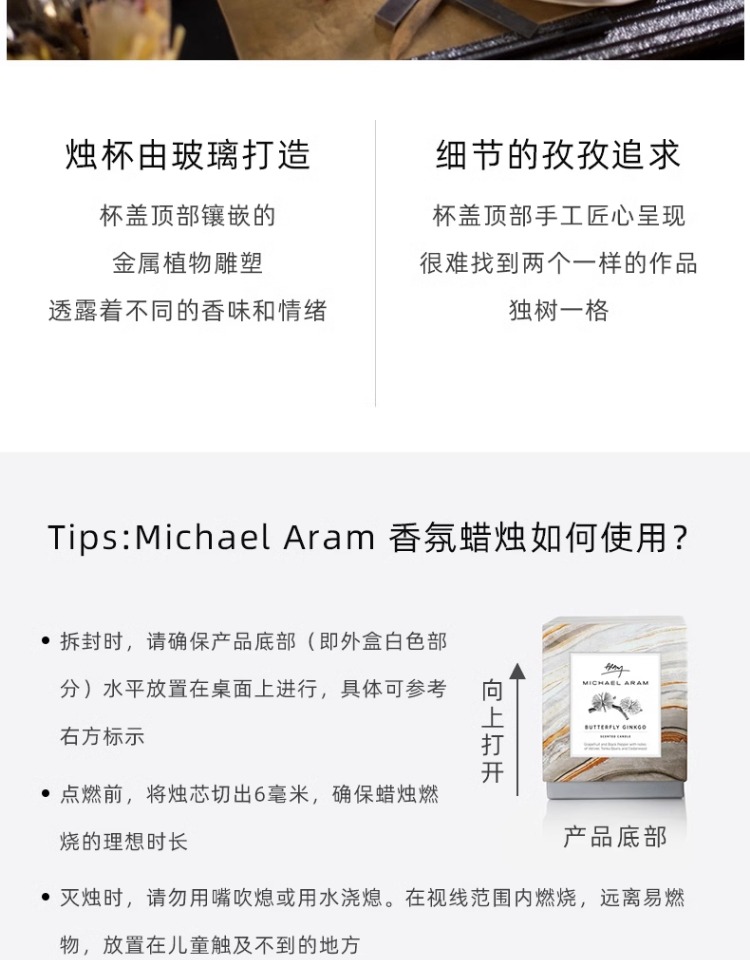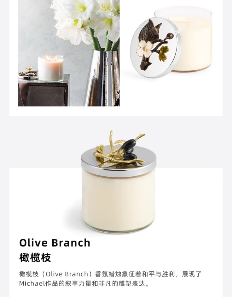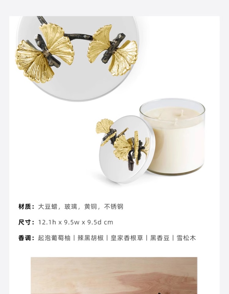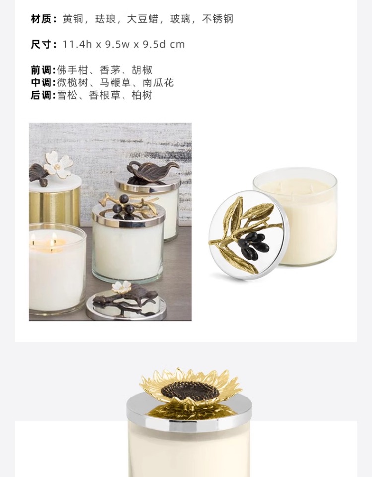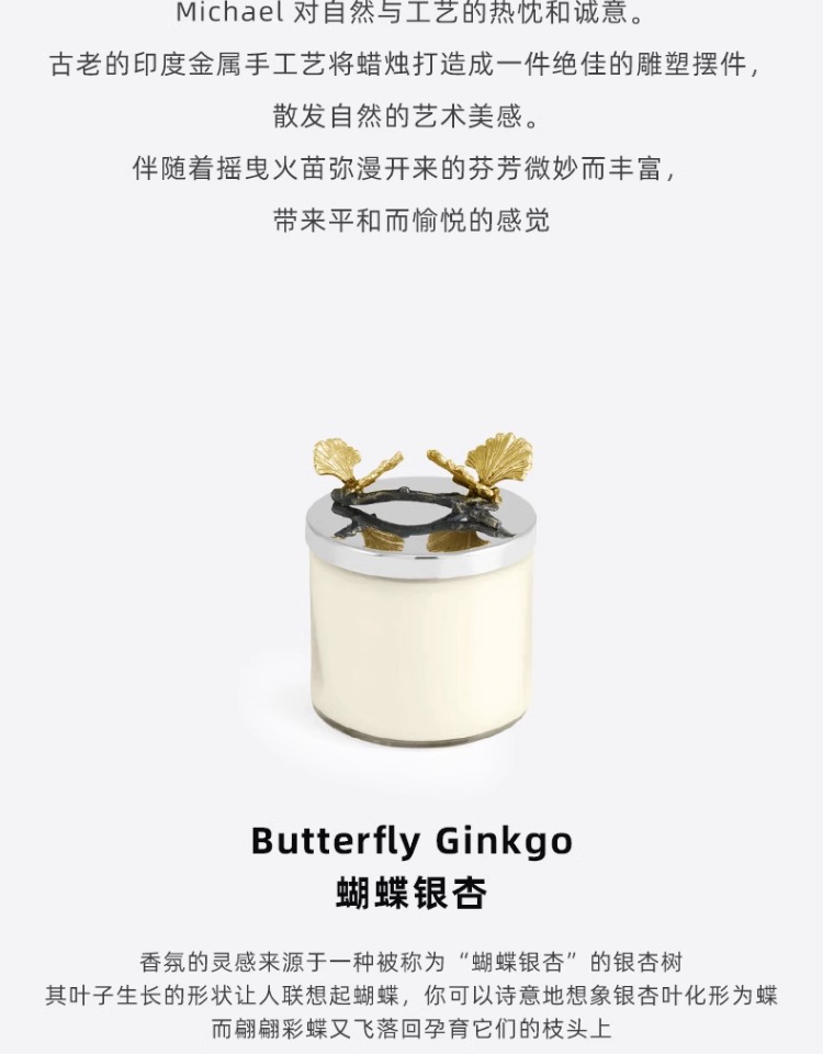 Michael Aram 马蹄莲/银莲花/蝴蝶银杏/向日葵/鸢尾花/樱花蜡烛 手工制作香薰蜡烛灭烛罩灭烛器生日礼物礼盒