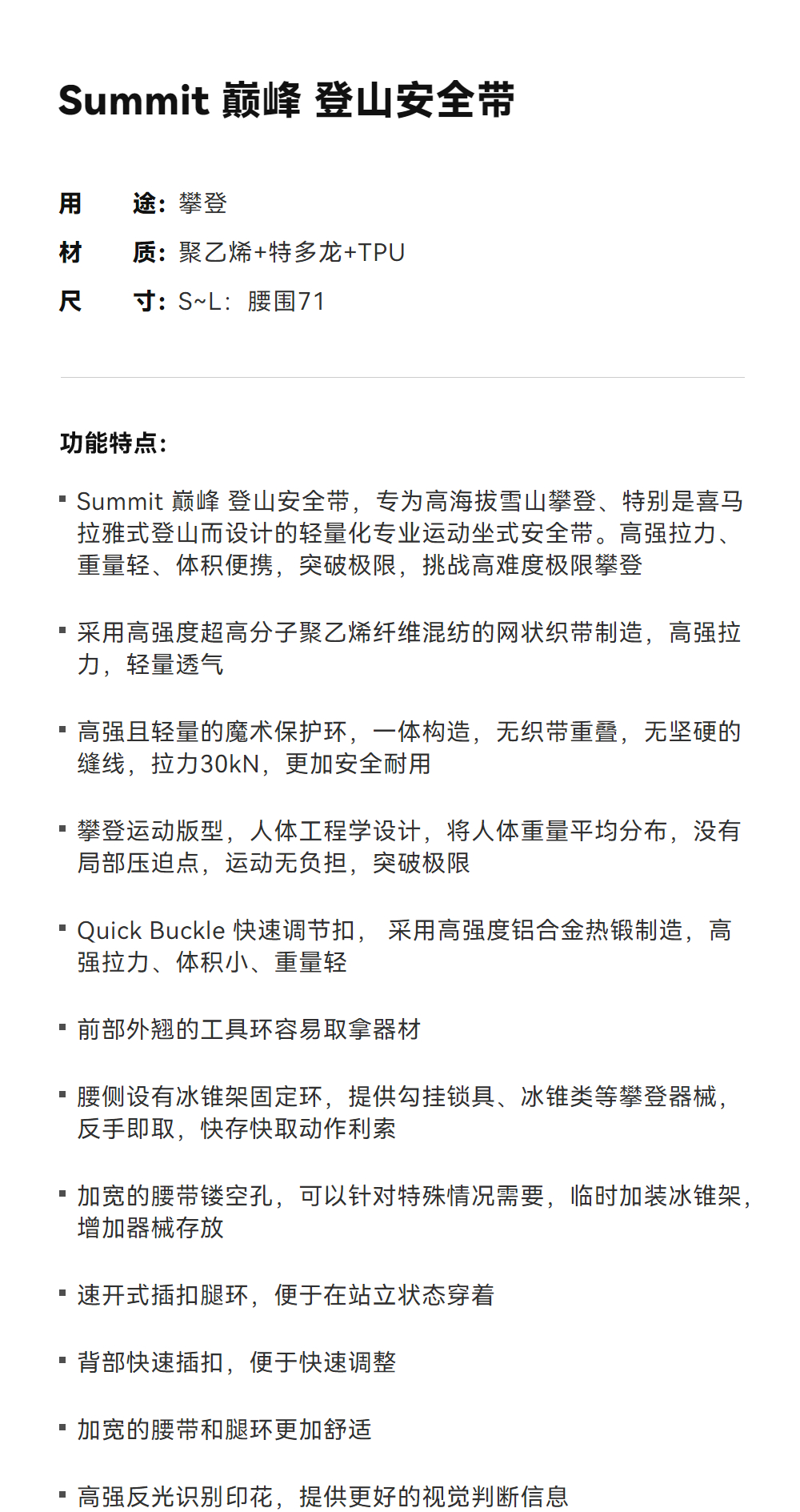 KAILAS凯乐石 户外运动 Summit 巅峰 登山安全带 EH103