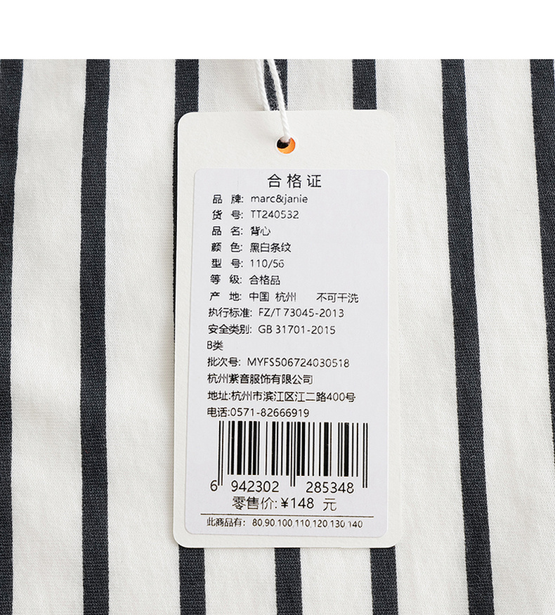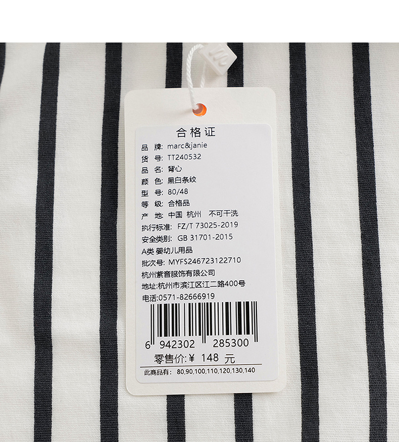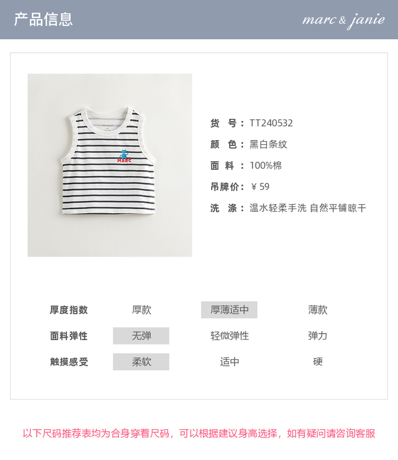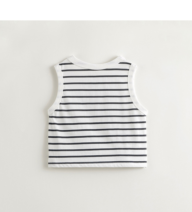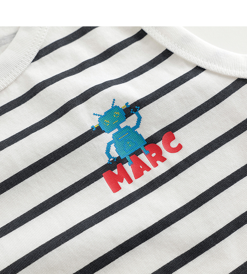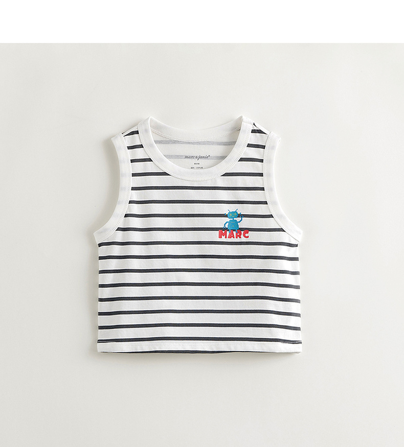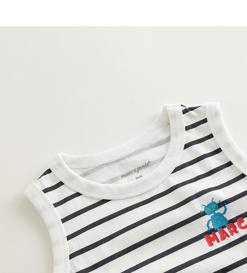 马克珍妮2024年夏装新款男童黑白条纹机器人纯棉短袖背心240532