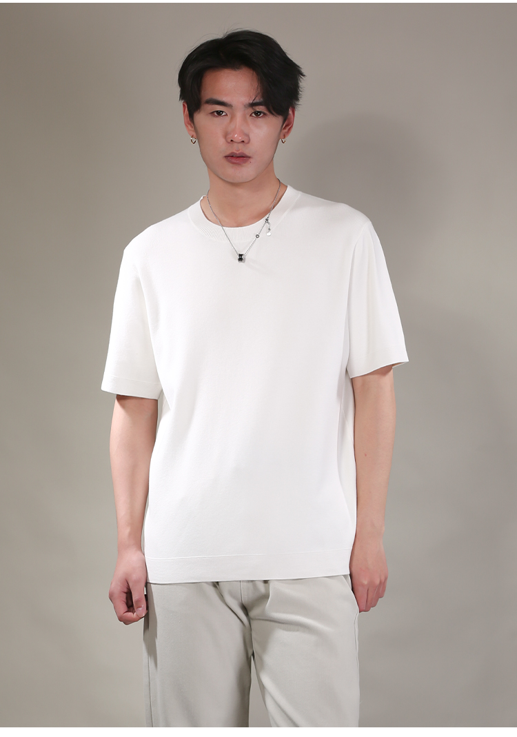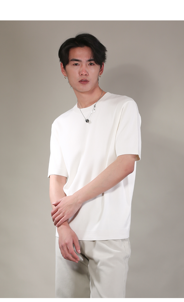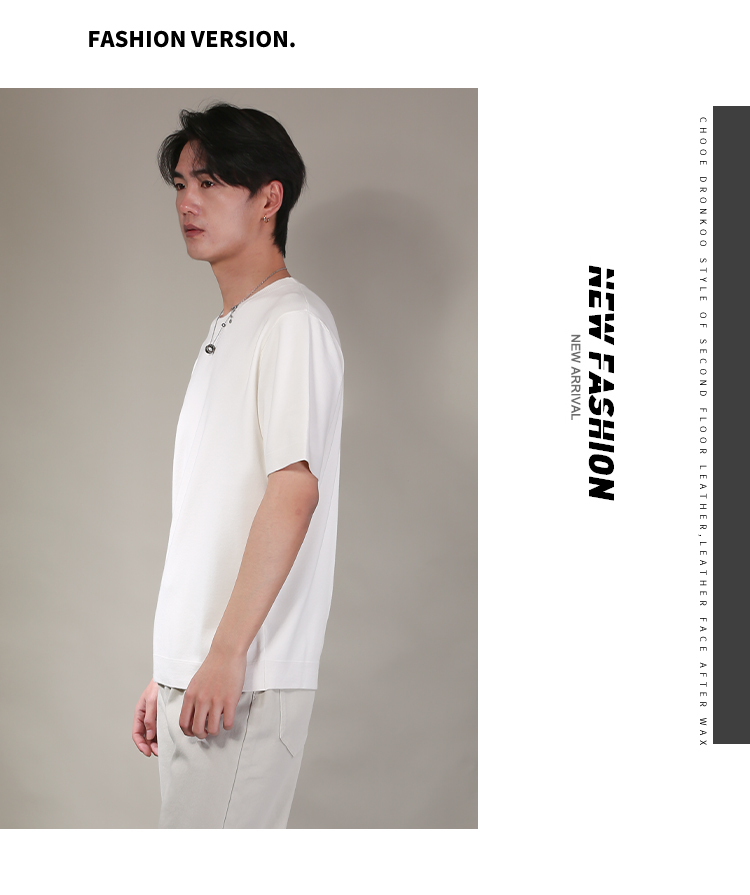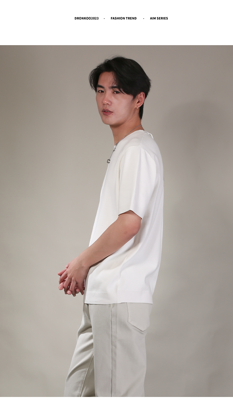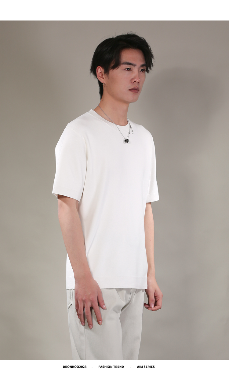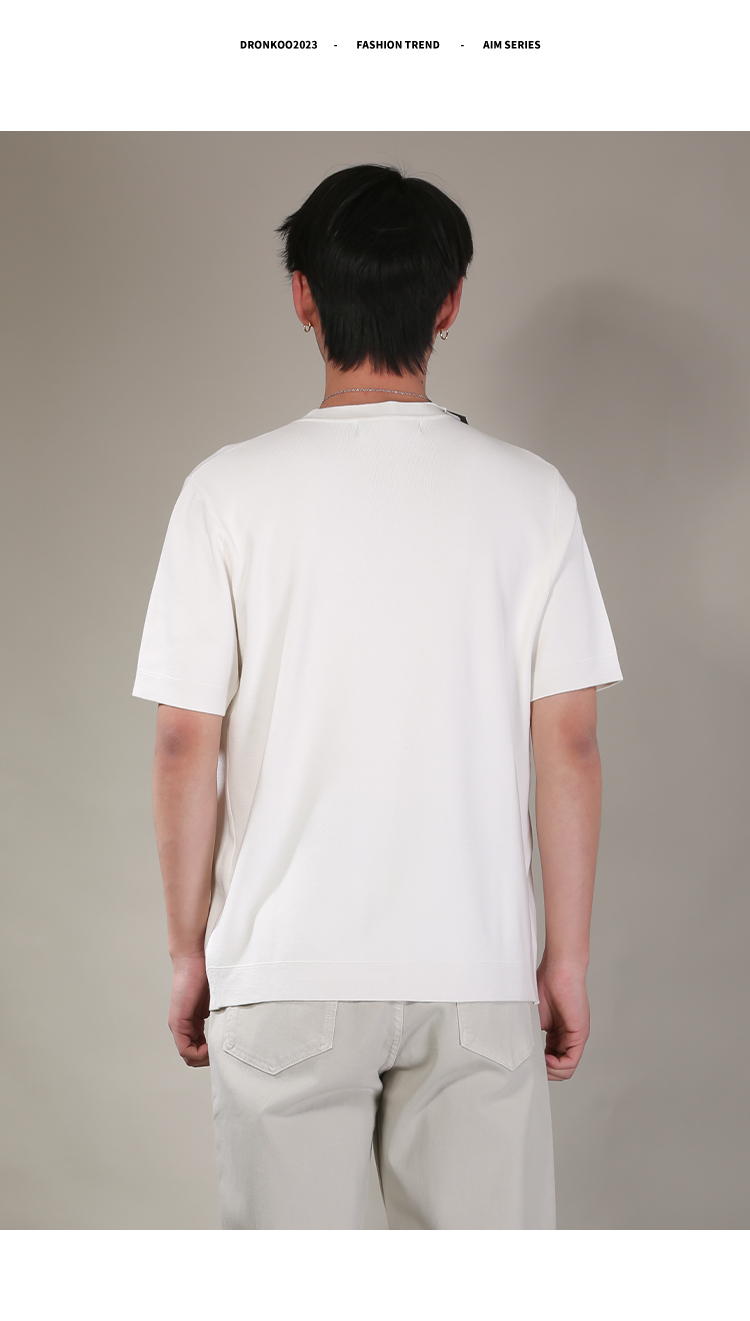 DRONKOO 2026 圆领领口下摆里边撞色净版修身短袖薄毛衣
