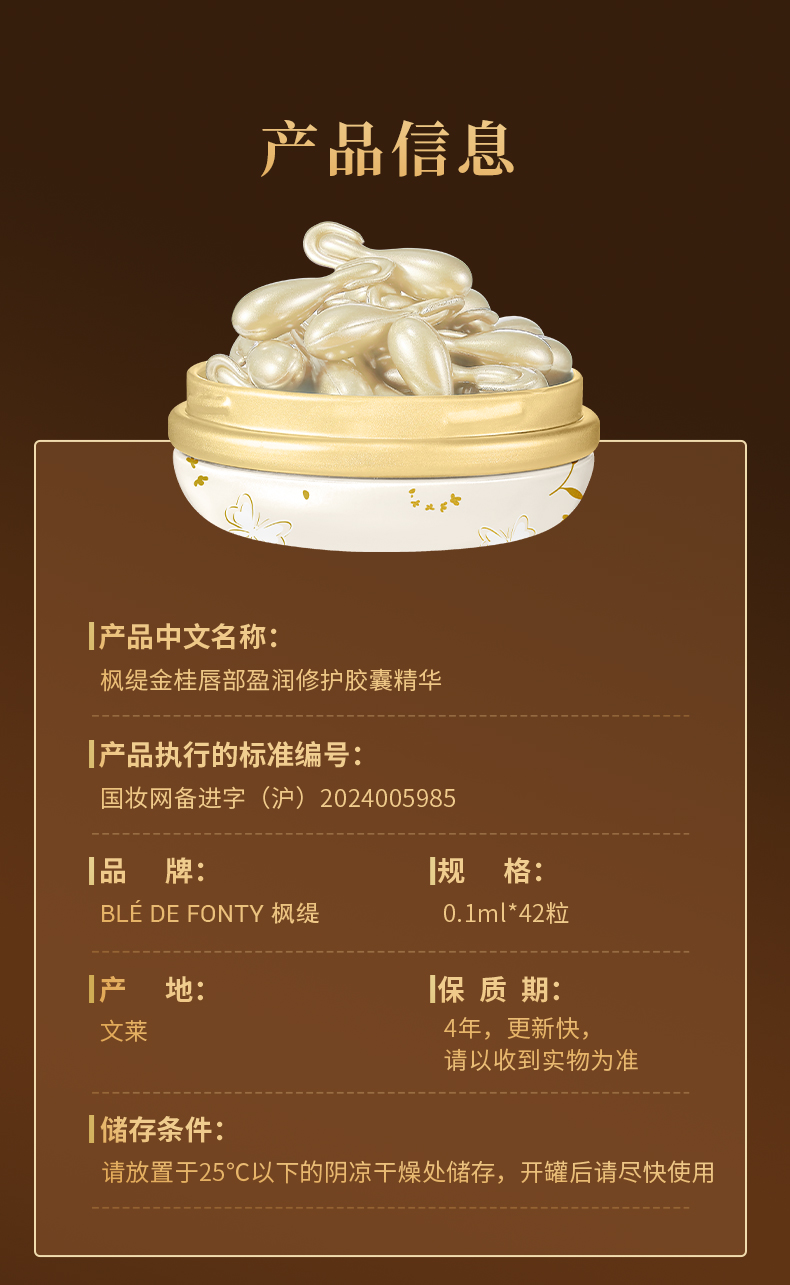 枫缇金桂唇部莹润修护胶囊精华0.1ml*42粒