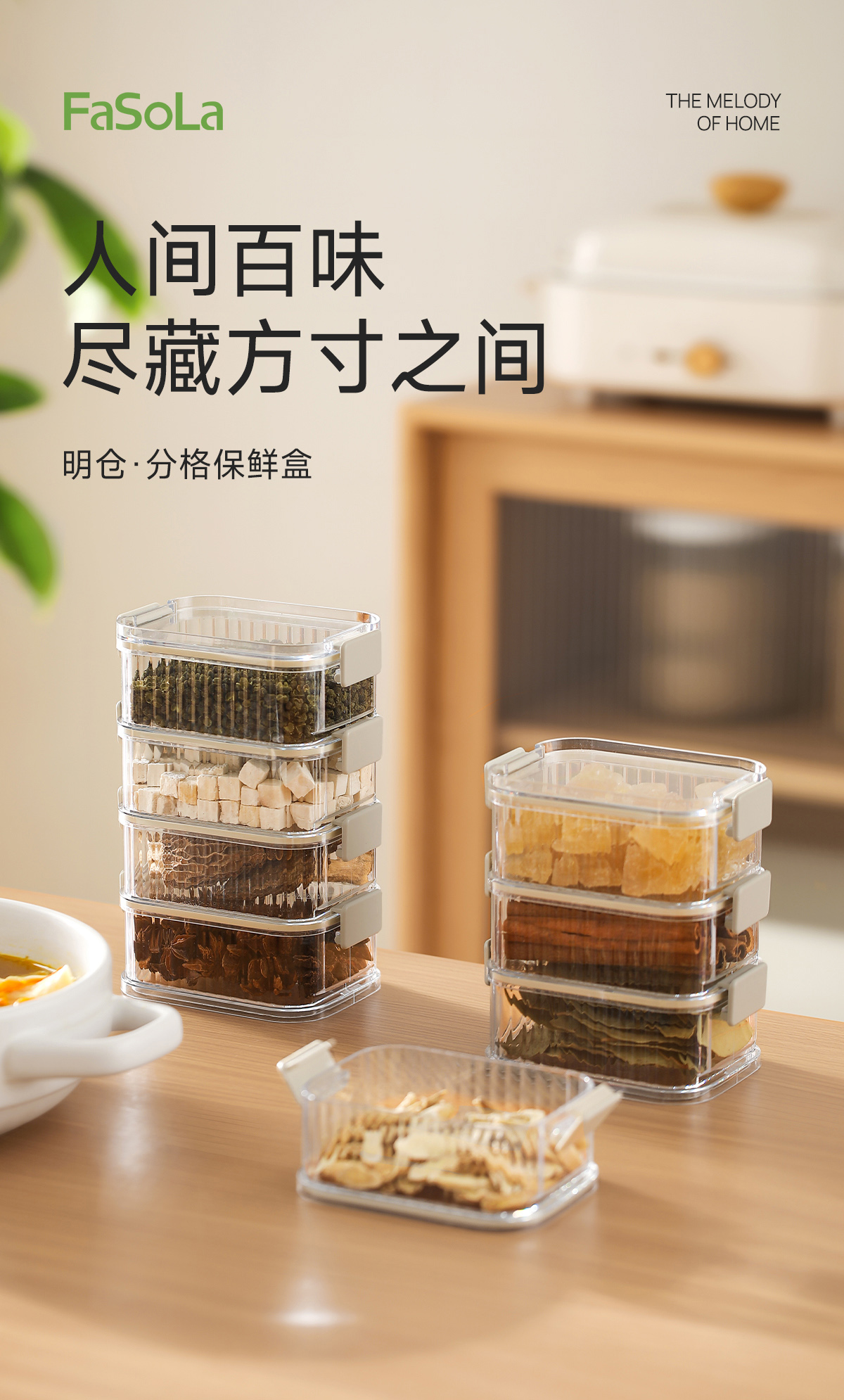 FaSoLa香料收纳盒家用厨房佐料分格保鲜盒糙米粗粮分装密封罐