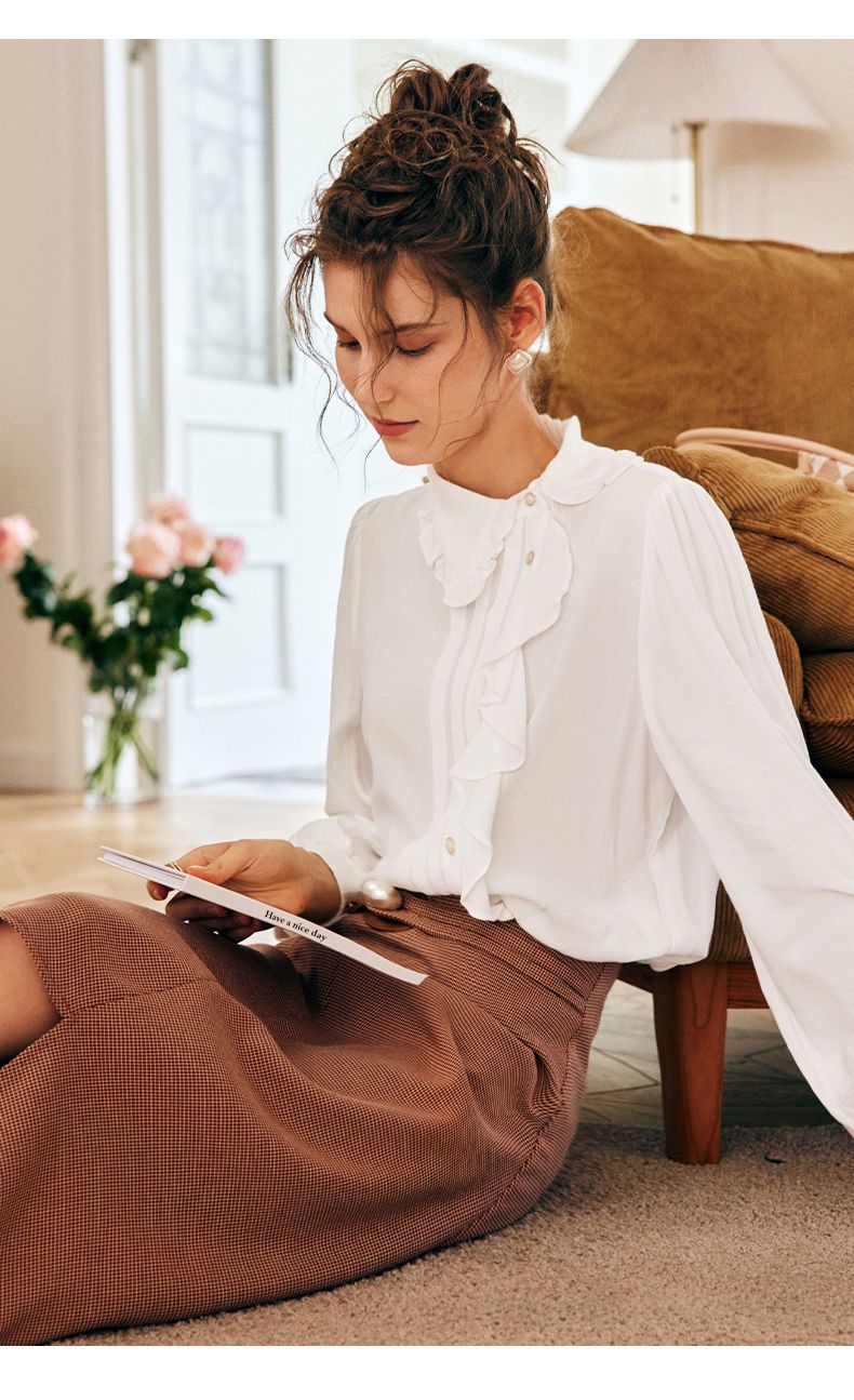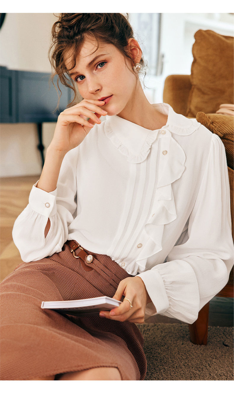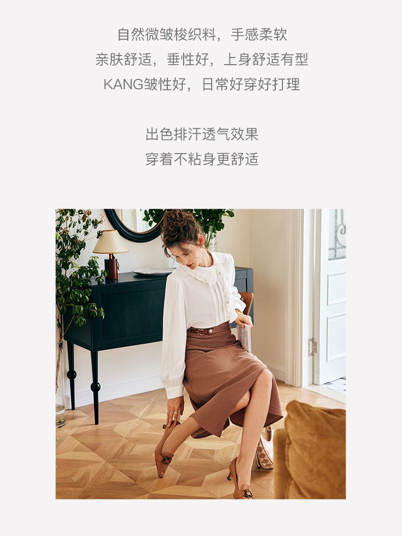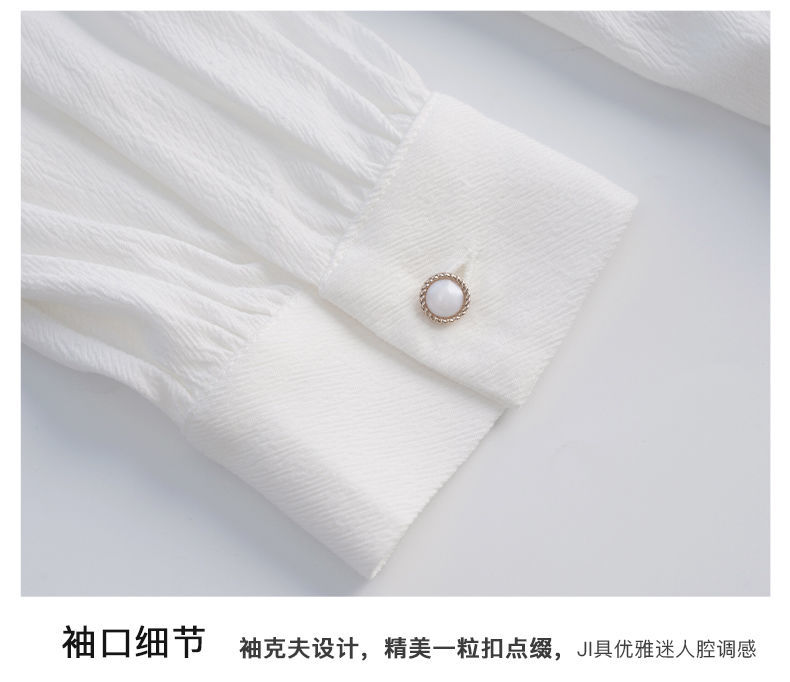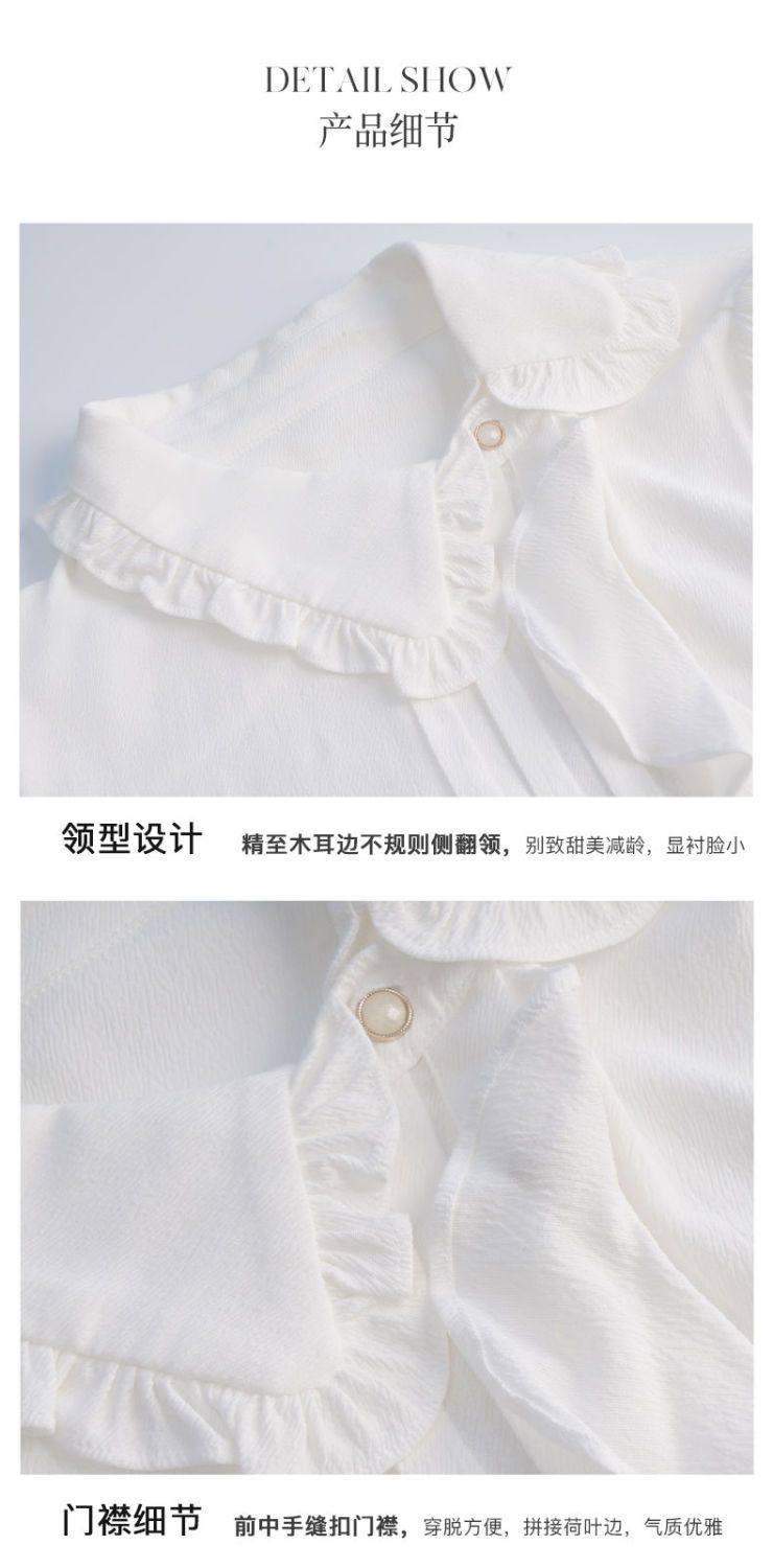 OLrain法式白色长袖雪纺蕾丝衫女早秋2022年新款不规则设计感衬衣