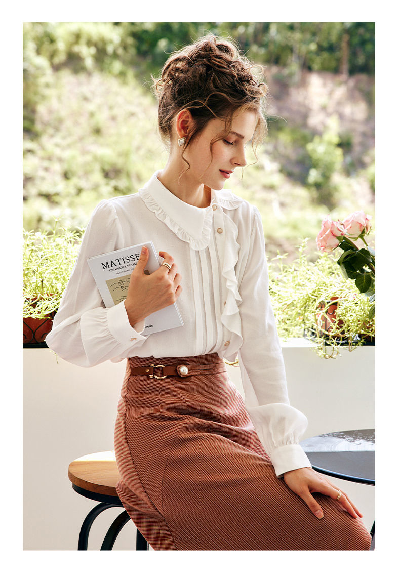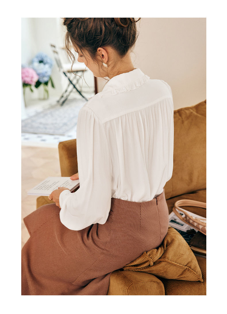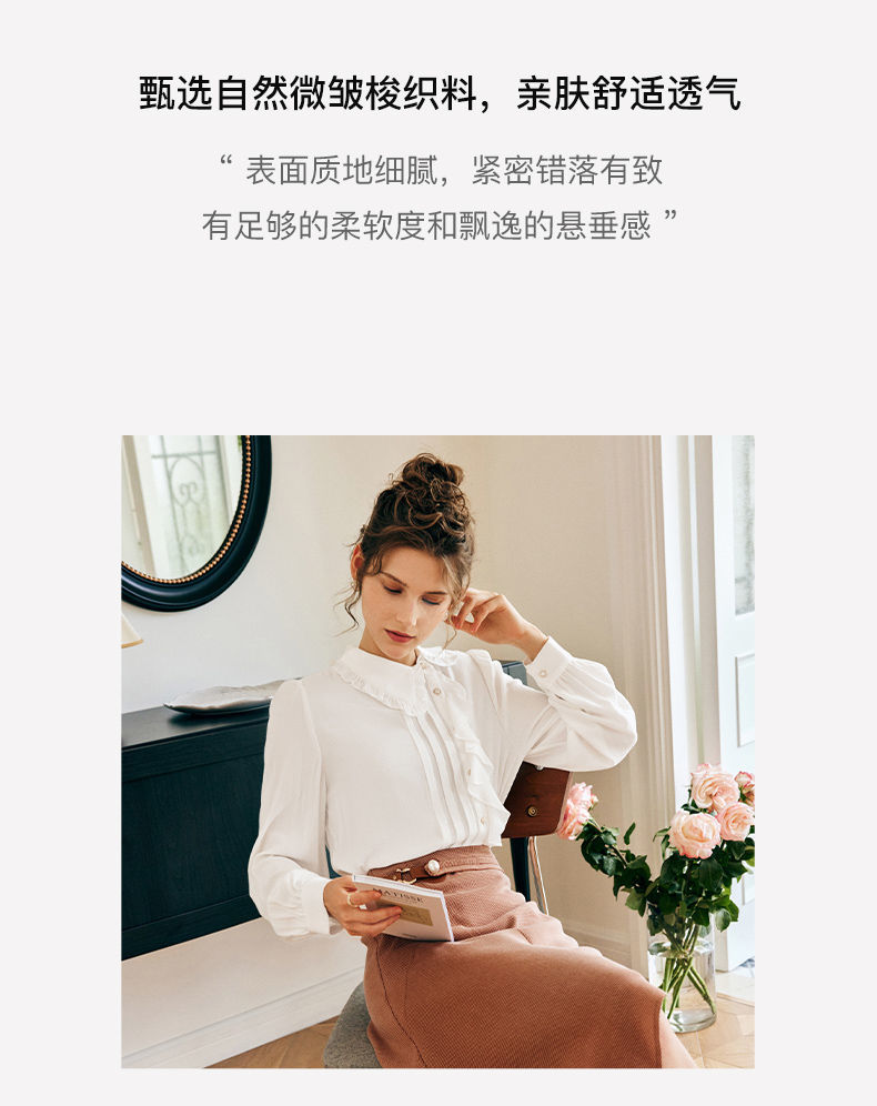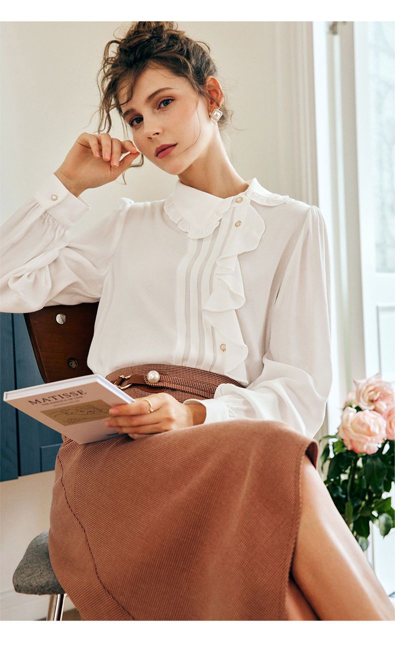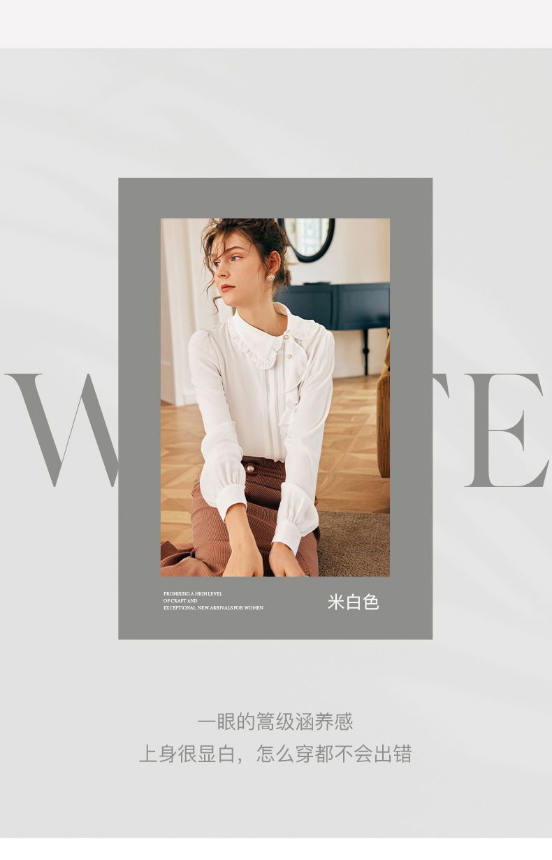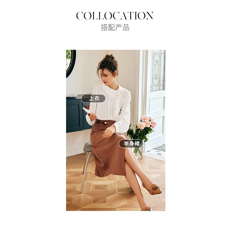 OLrain法式白色长袖雪纺蕾丝衫女早秋2022年新款不规则设计感衬衣