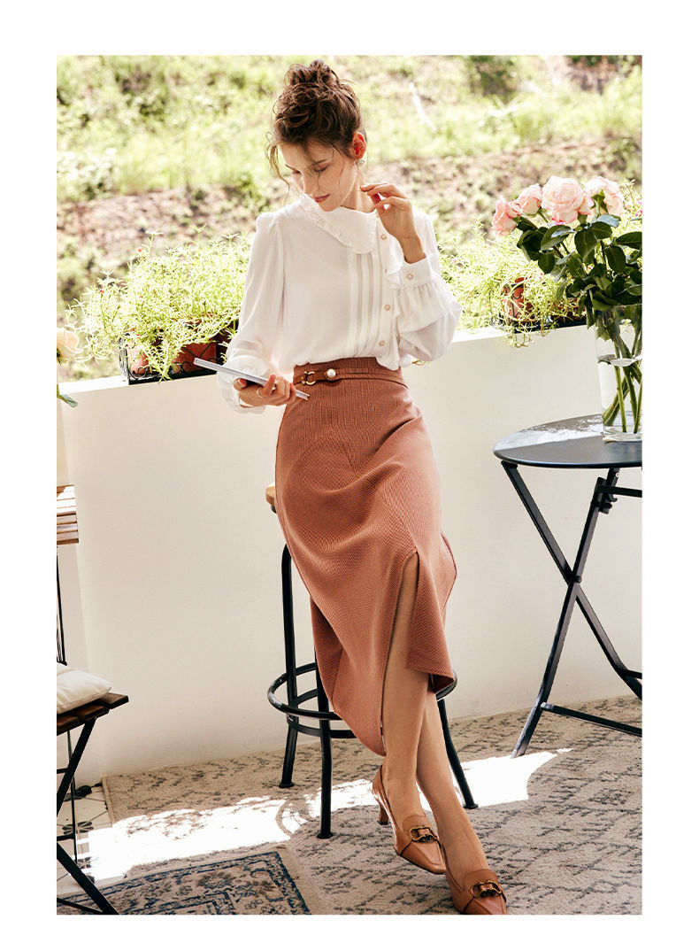 OLrain欧芮儿灰色直筒半身裙女春季2025新款通勤设计感开叉半裙
