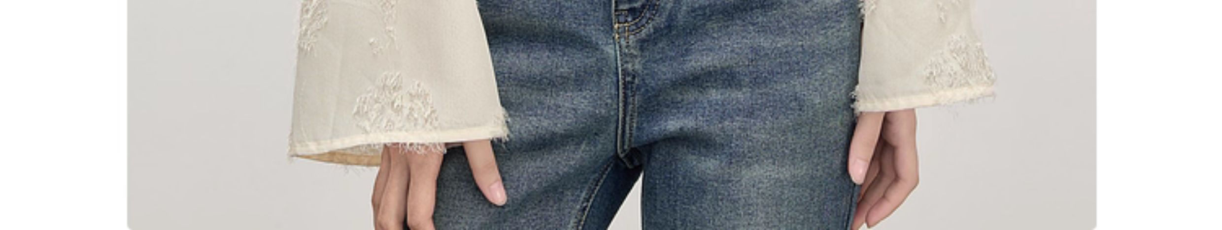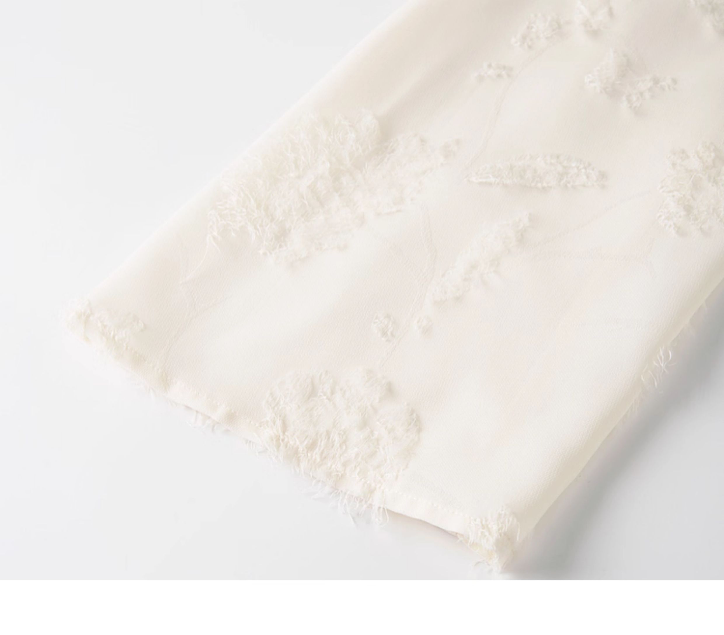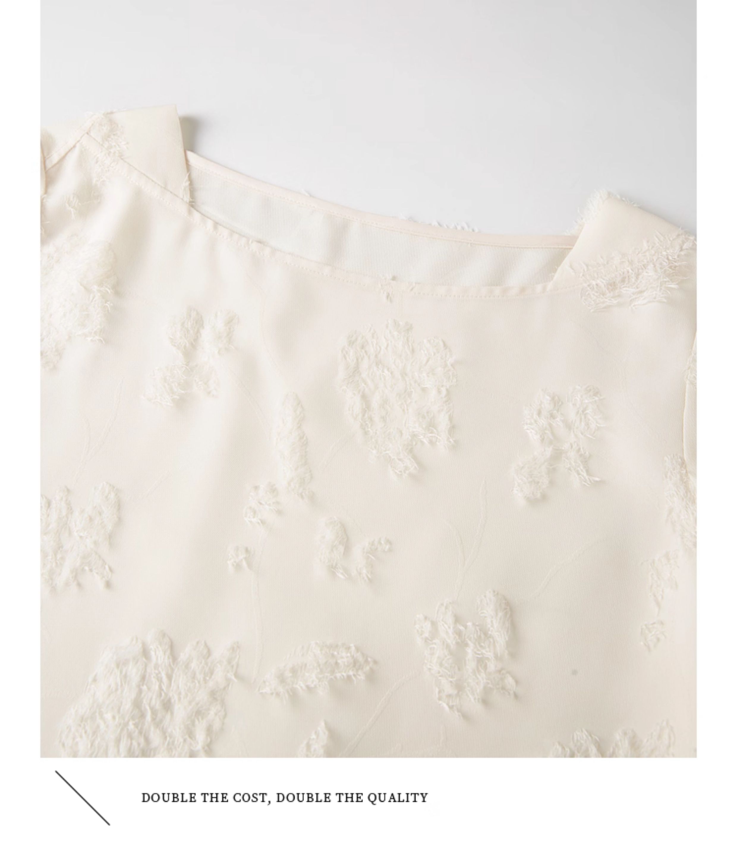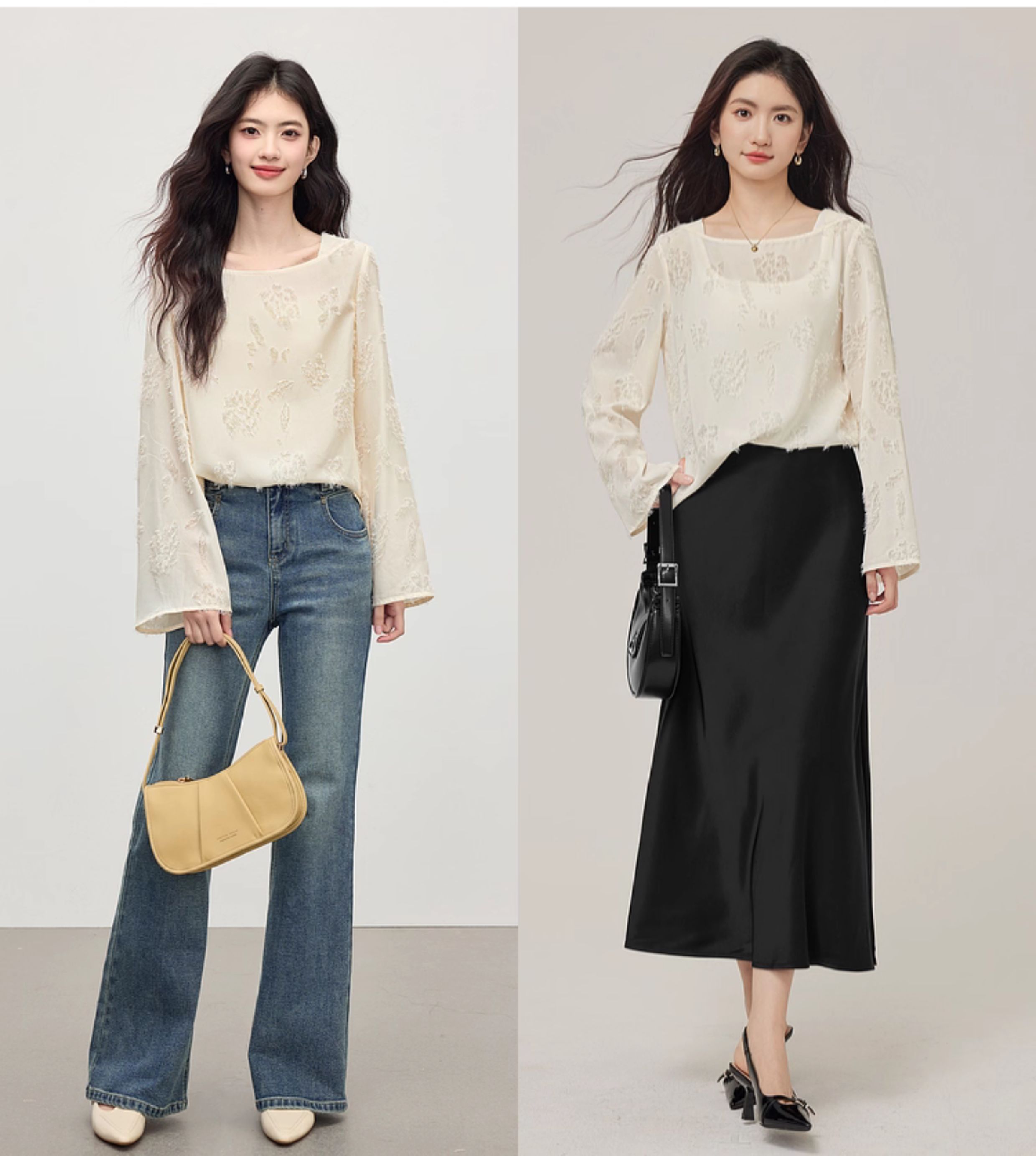【周四狂欢价】熙世界羽毛流苏一字领雪纺衫女2025秋季新款高级感喇叭袖宽松上衣