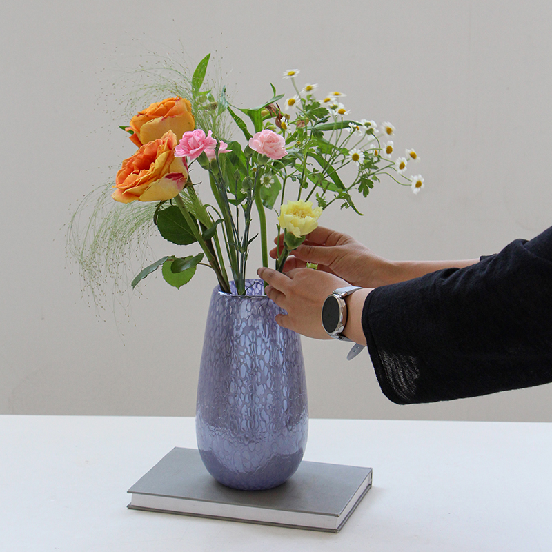 紫色珠光芍药花器玻璃花瓶摆件餐桌花器