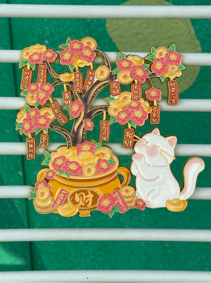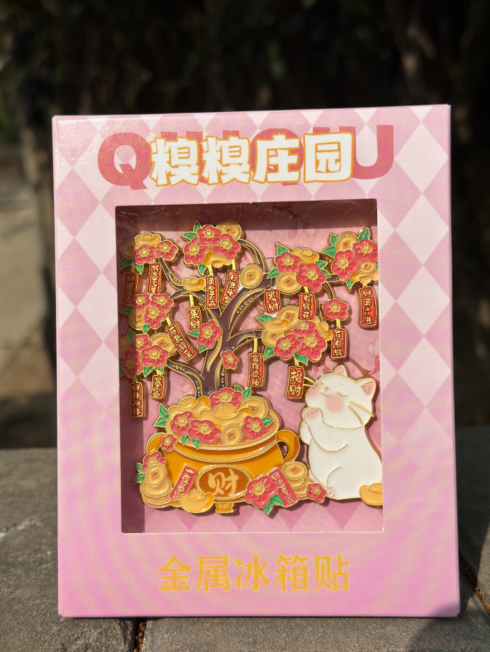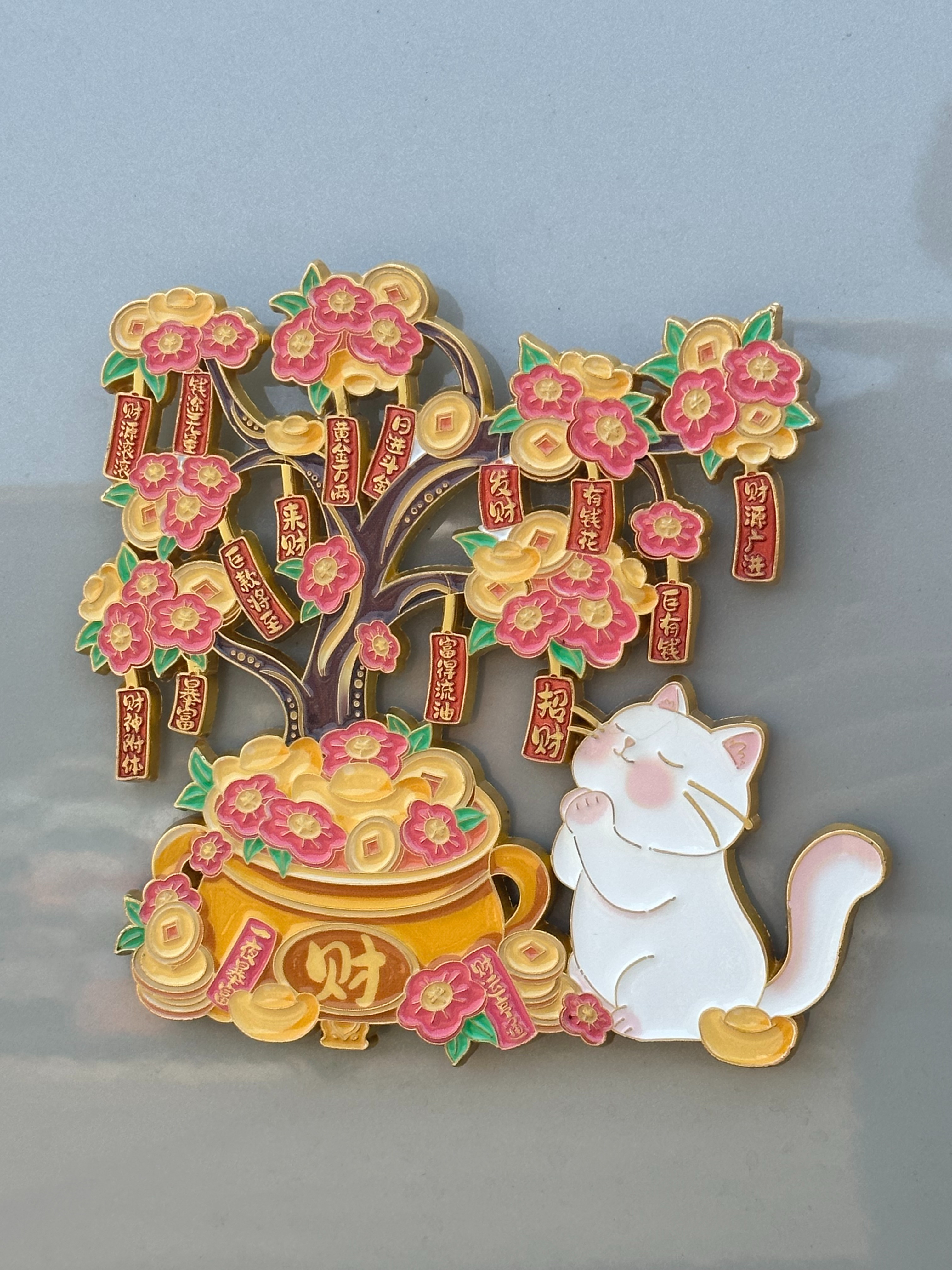 糗糗庄园-新年喜庆招财猫创意冰箱贴招财树