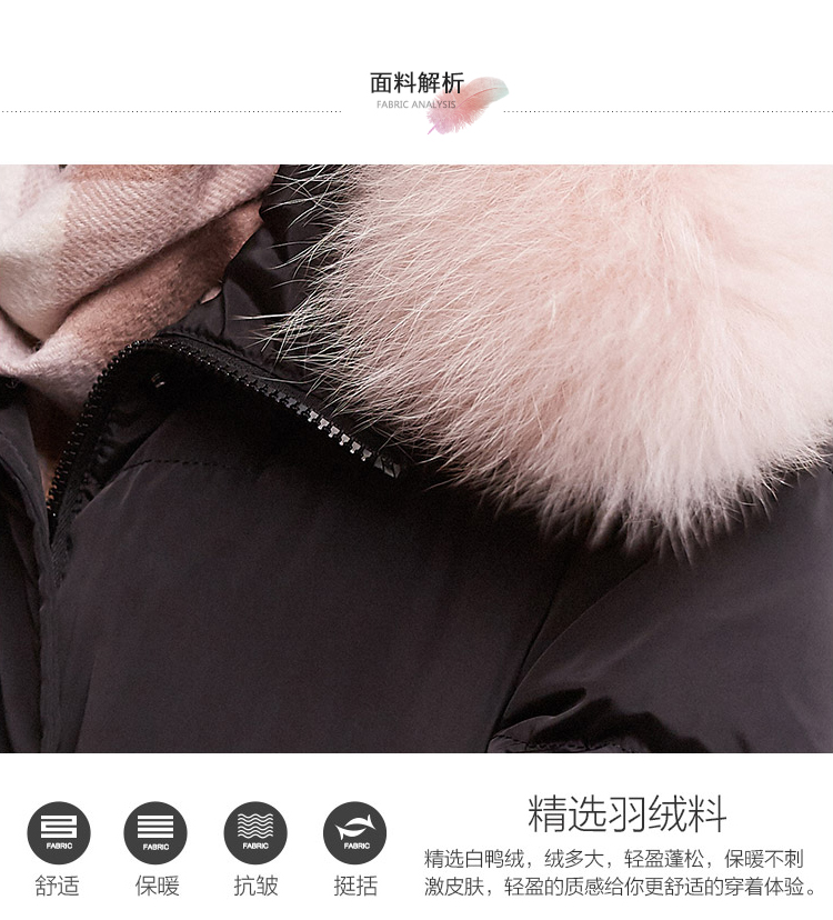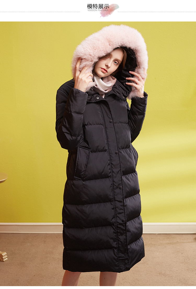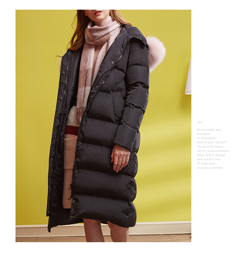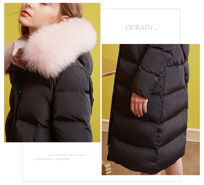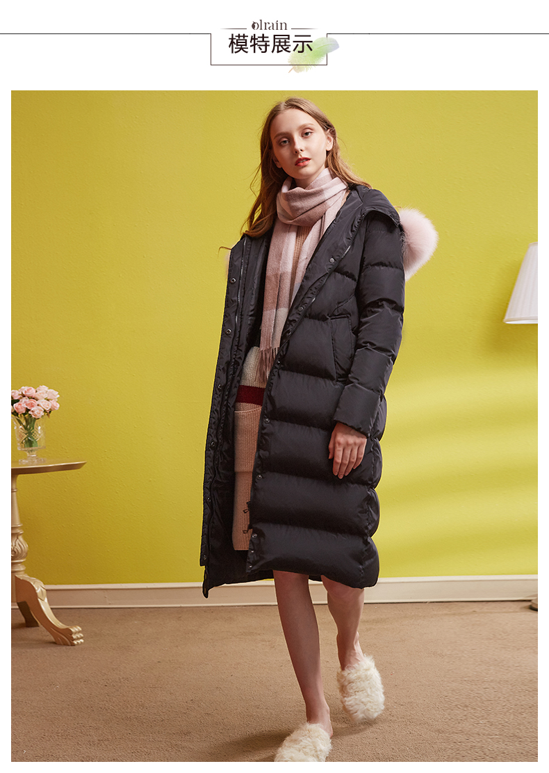 欧芮儿2018冬羽绒服女连帽过膝90绒真毛领加厚直筒外套