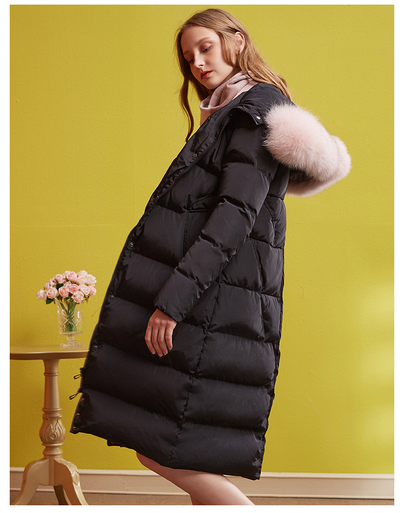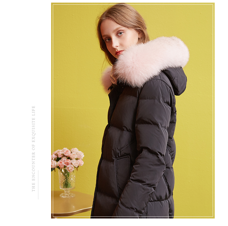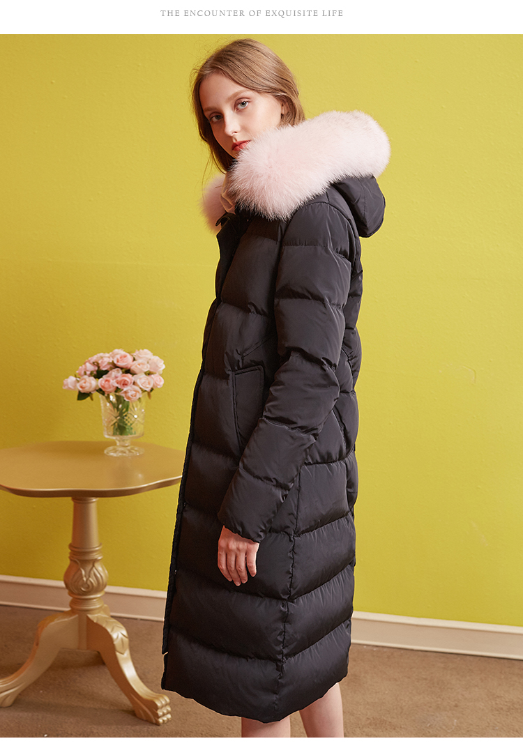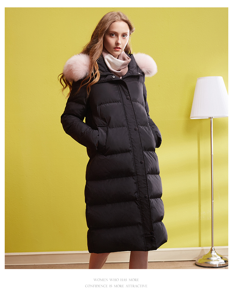 欧芮儿2018冬羽绒服女连帽过膝90绒真毛领加厚直筒外套