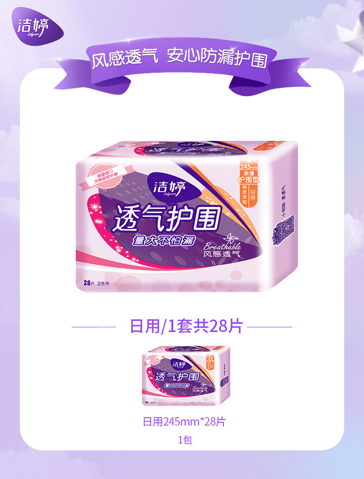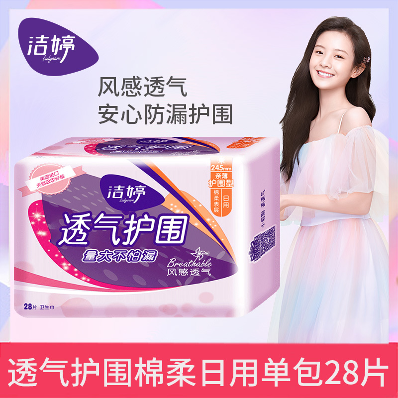 【亚欧超市】洁婷透气护围日用棉柔卫生巾 28片