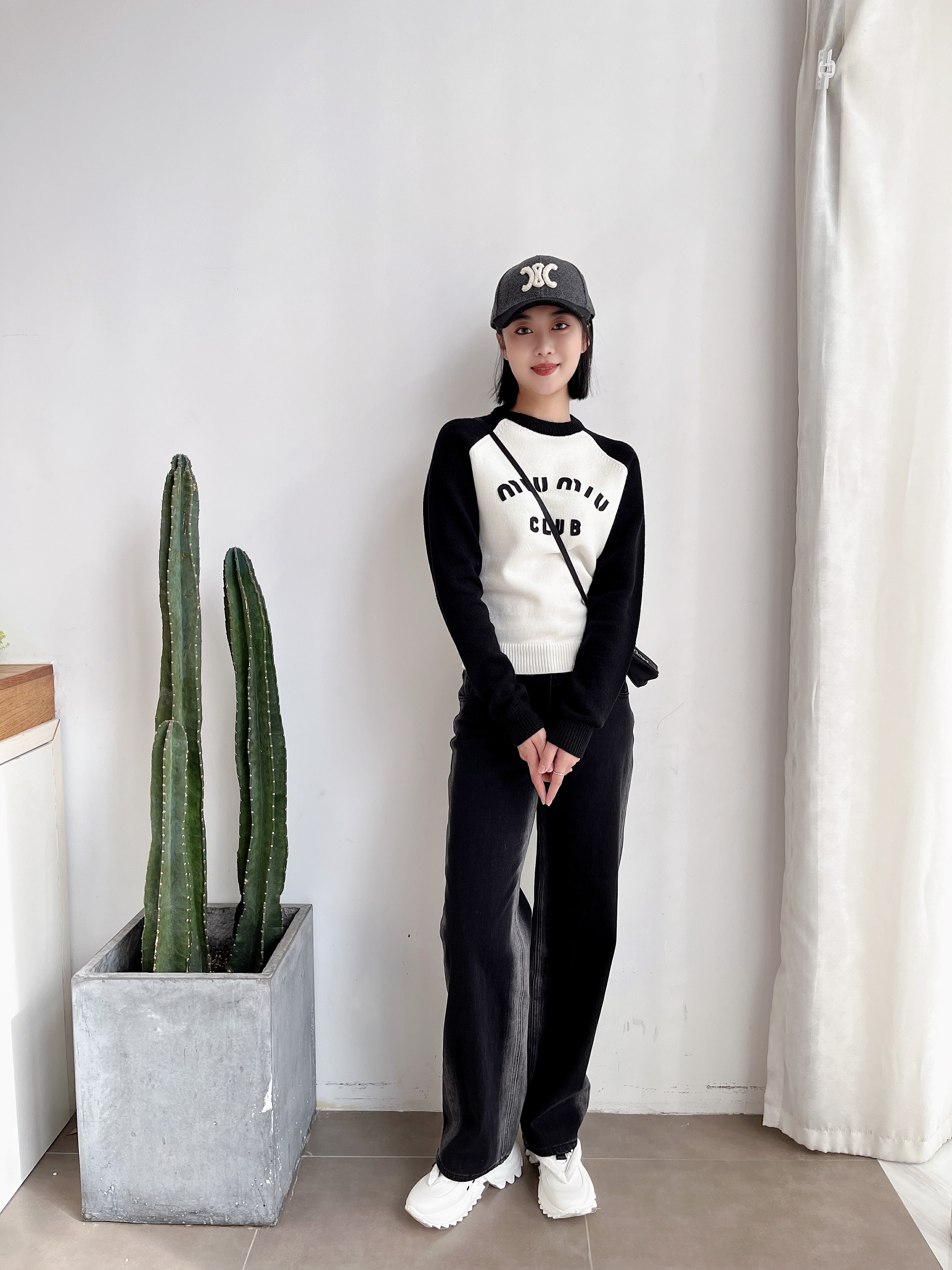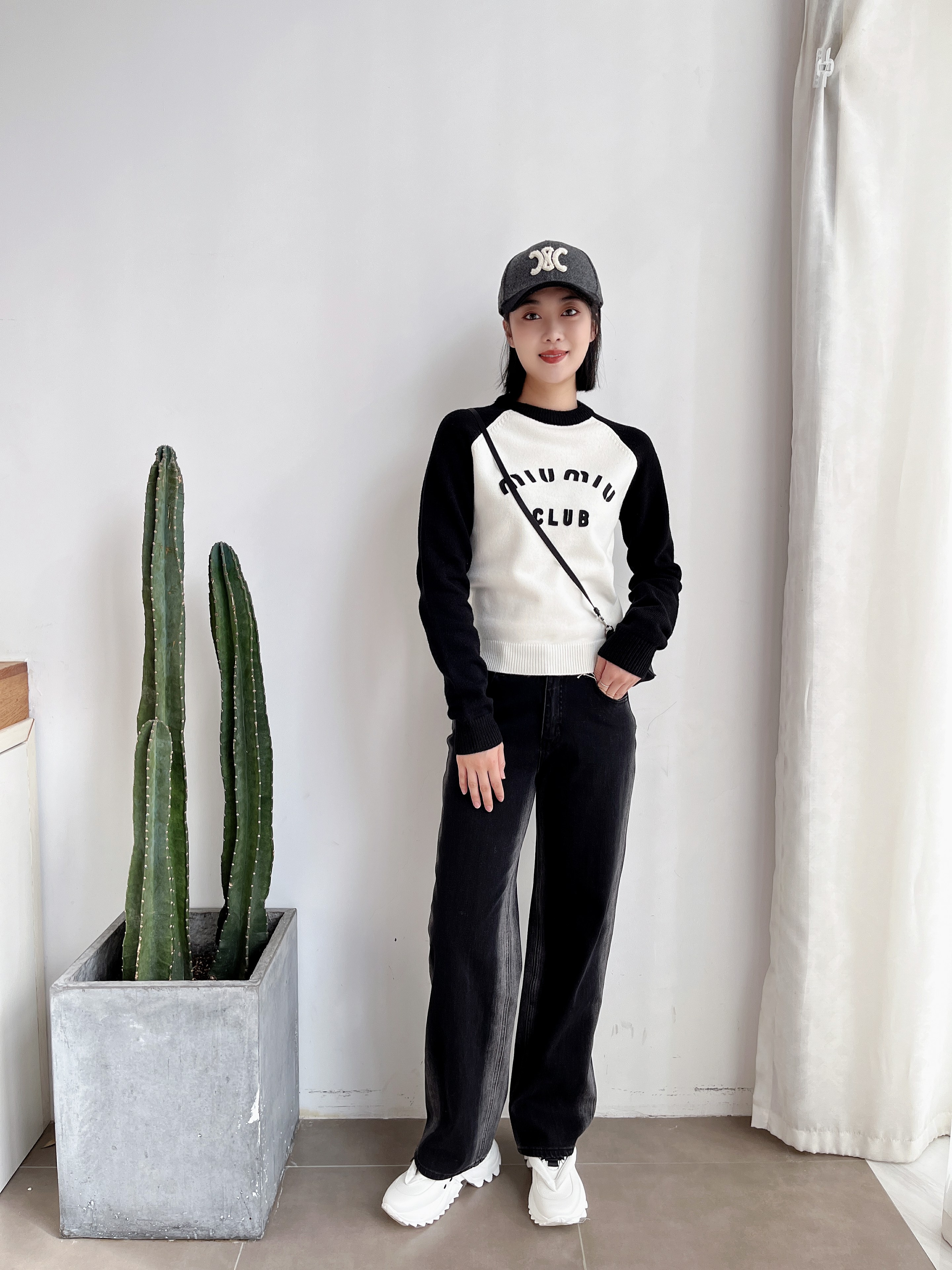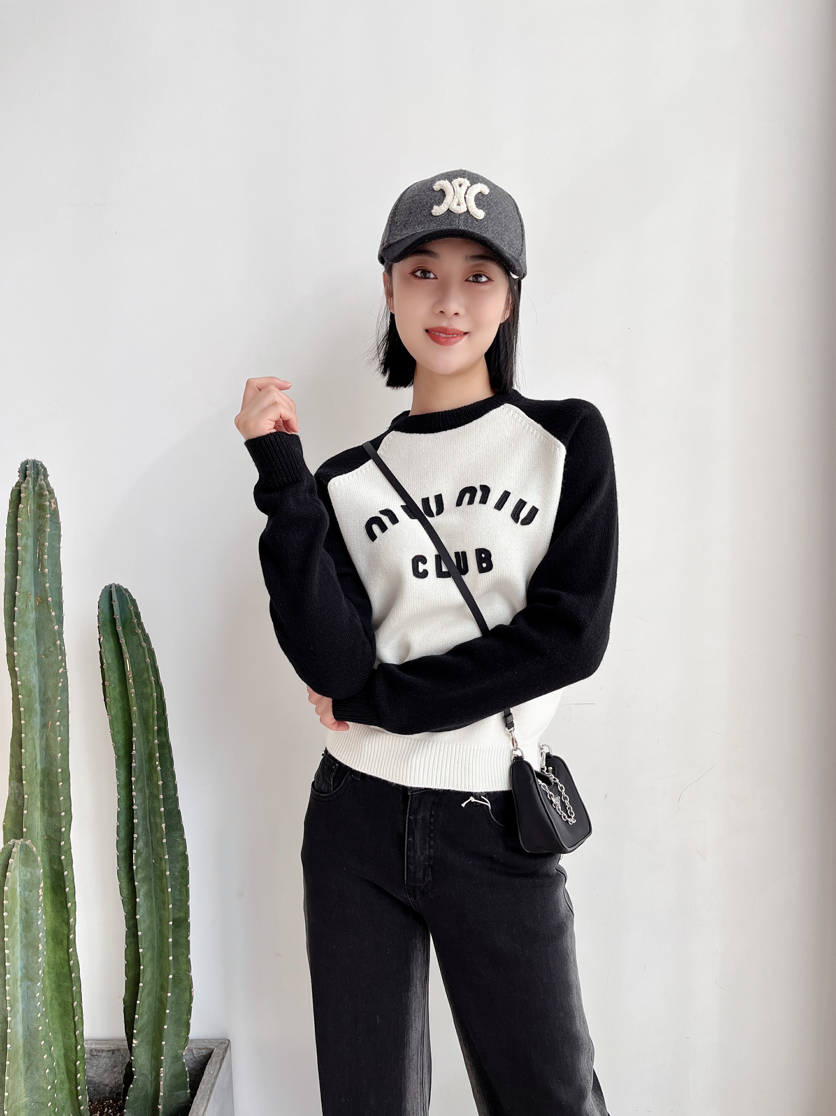 插肩袖打底衫女撞色字母针织毛衣2023年新款早春装高级感上衣
