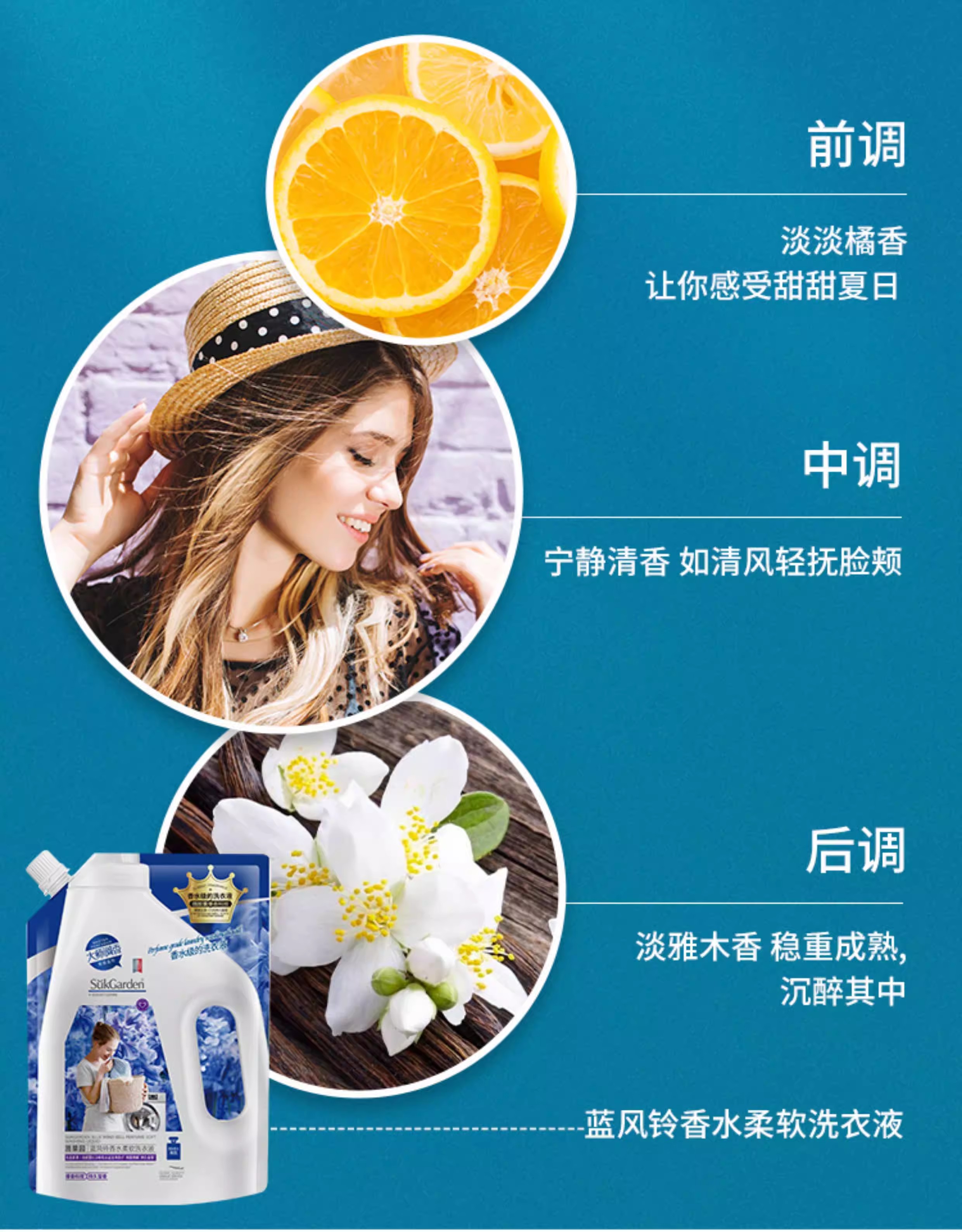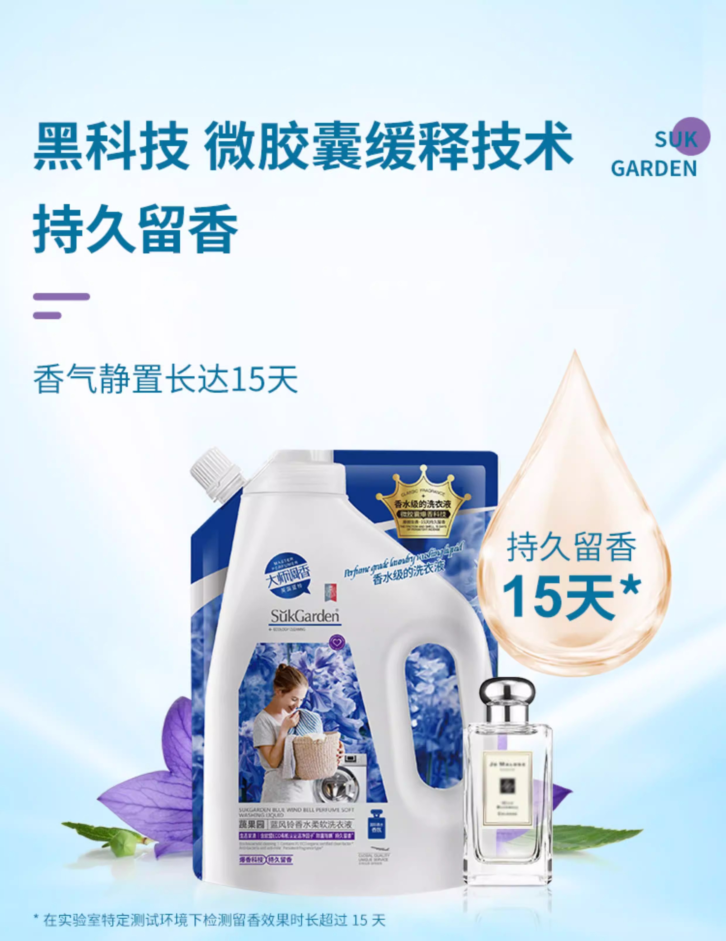 【86元会员福利】蔬果园天然玫瑰精油香氛洗衣液CS版2kg*2桶+蔬果园蓝风铃香水柔软洗衣液500g*2袋