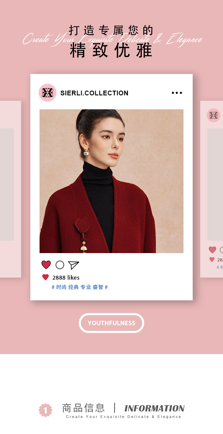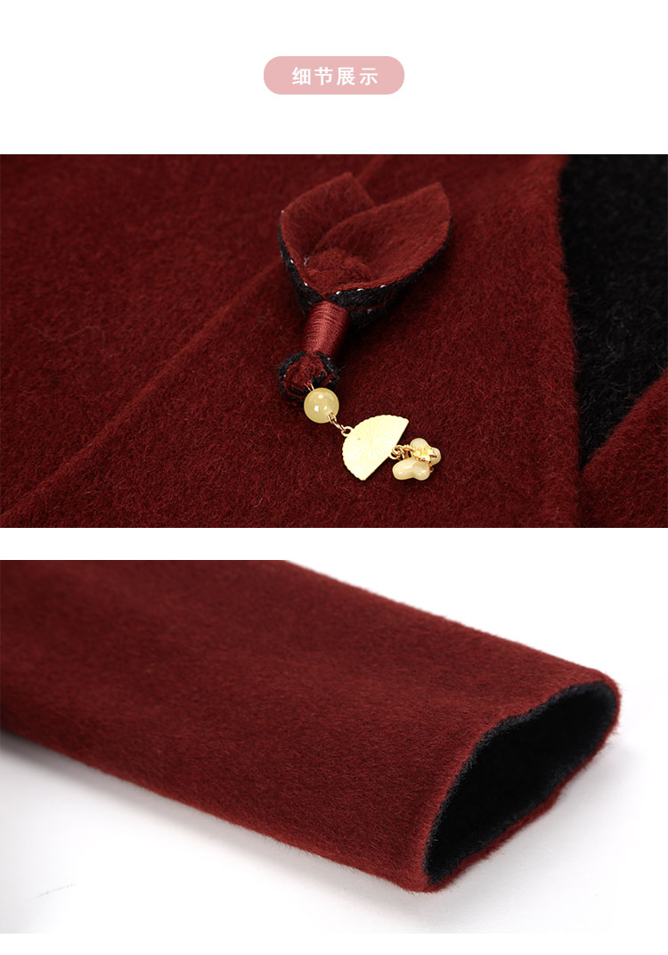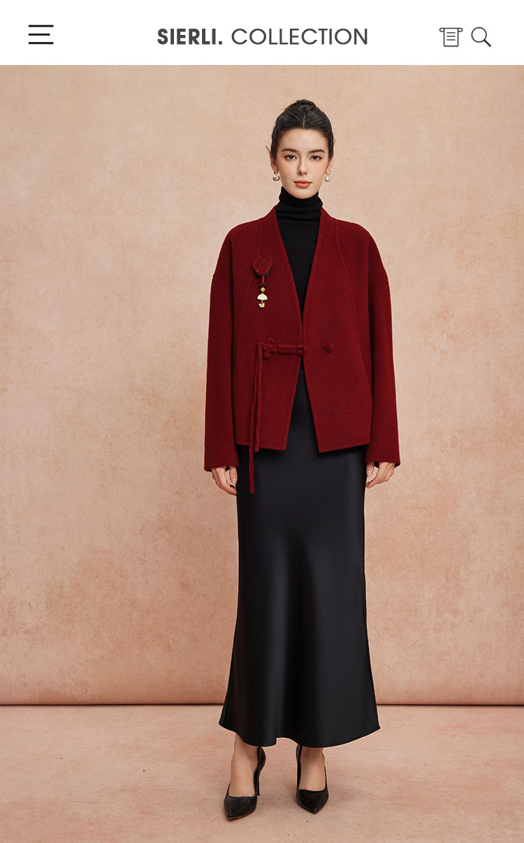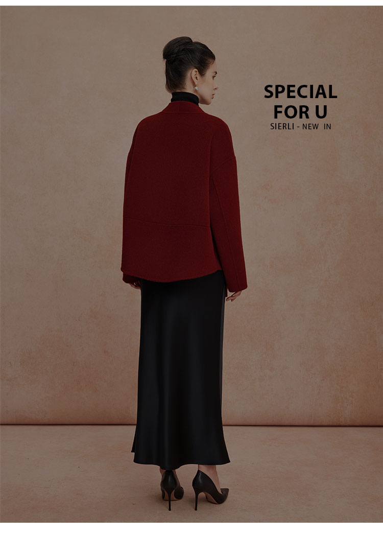 QH900斯尔丽25新款新国风双面双色手工盘花宽松气质高雅短羊毛大衣